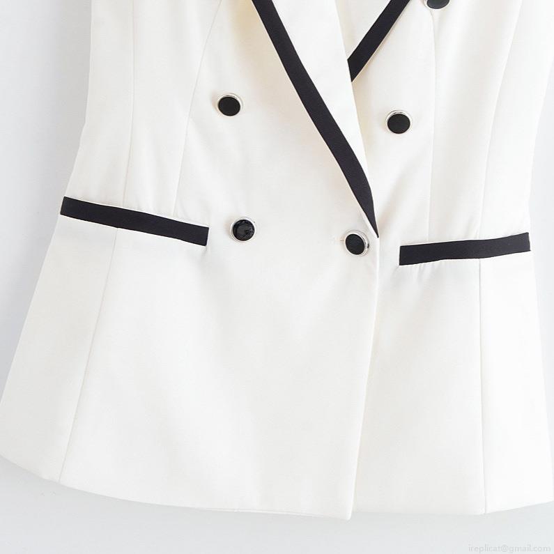 Solid Color, Color Blocking, Double-breasted, Contrasting Trim, Notched Collar
