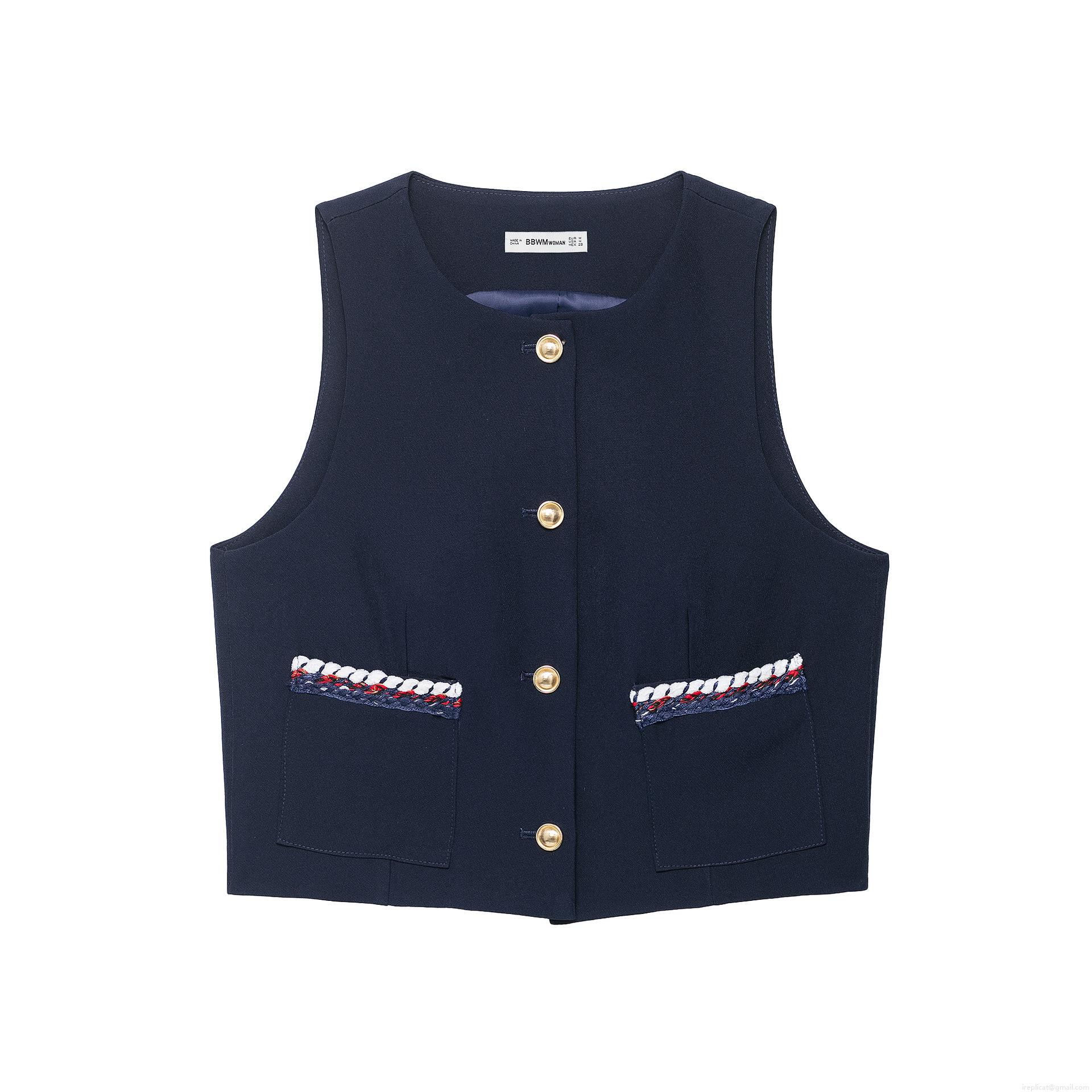 Splice, Gold Buttons, Woven Trim, Three-color Woven Color Blocking