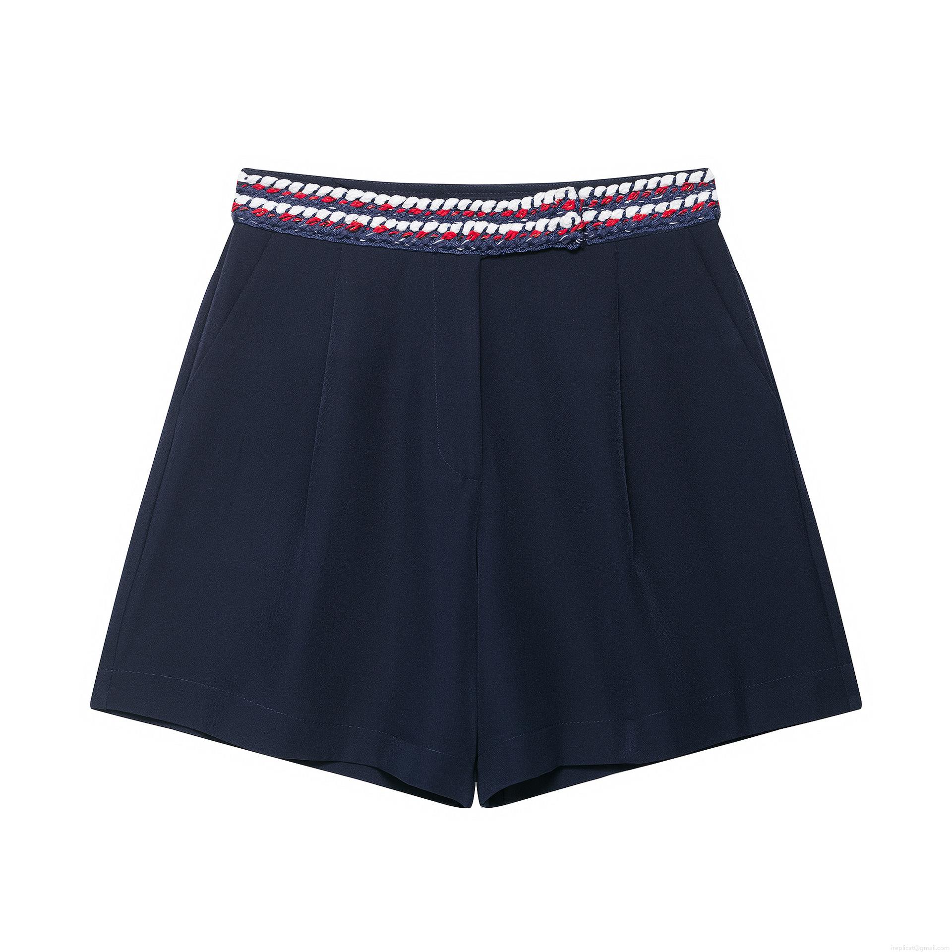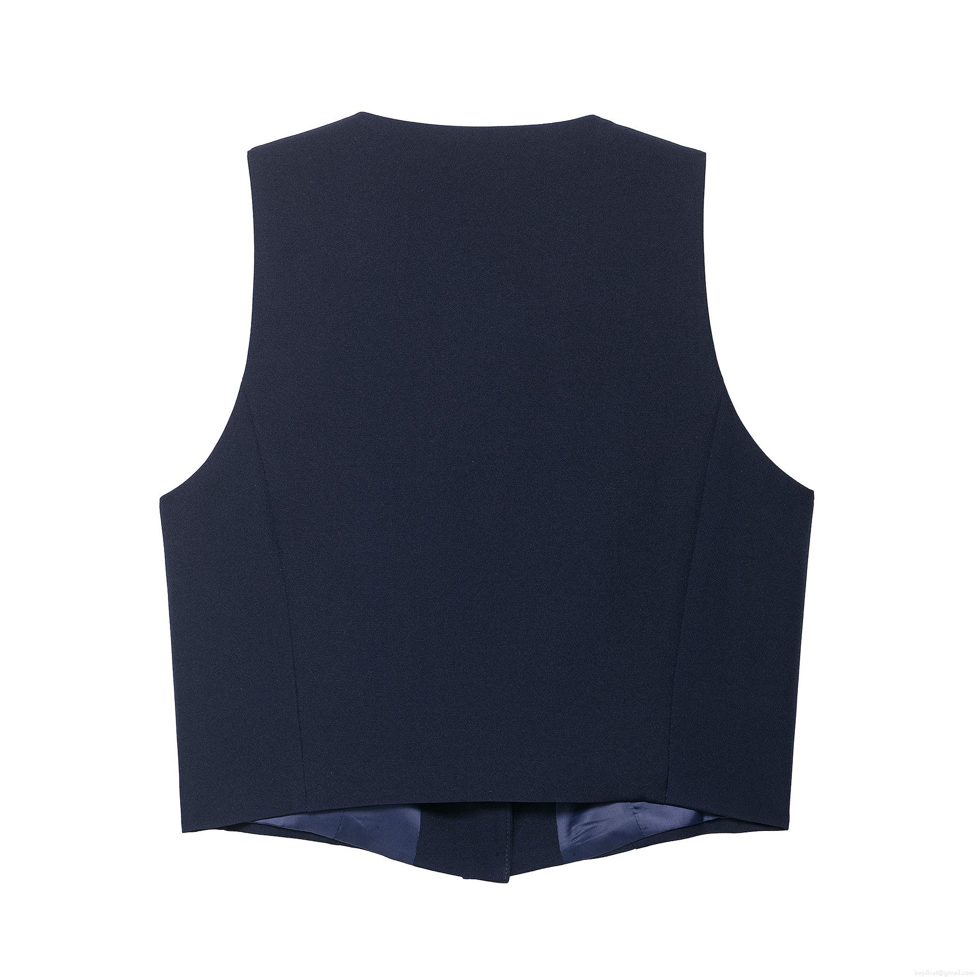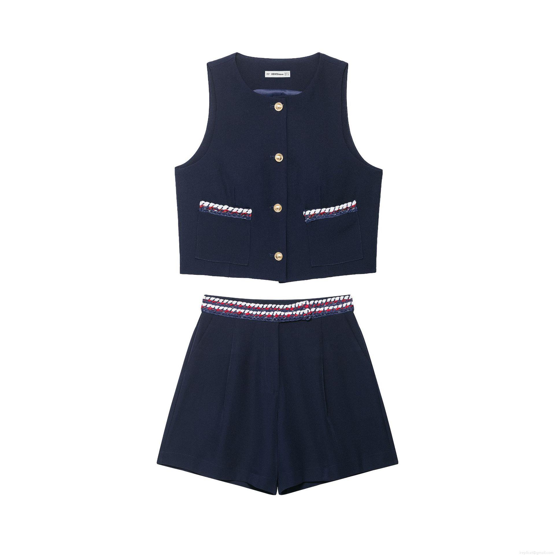 • Women's Elegant Dark Blue 2 Piece Vest and Shorts Set Sleeveless Waistcoat With Gold Buttons Braided Trim Shorts Suit For Summer Office Streetwear