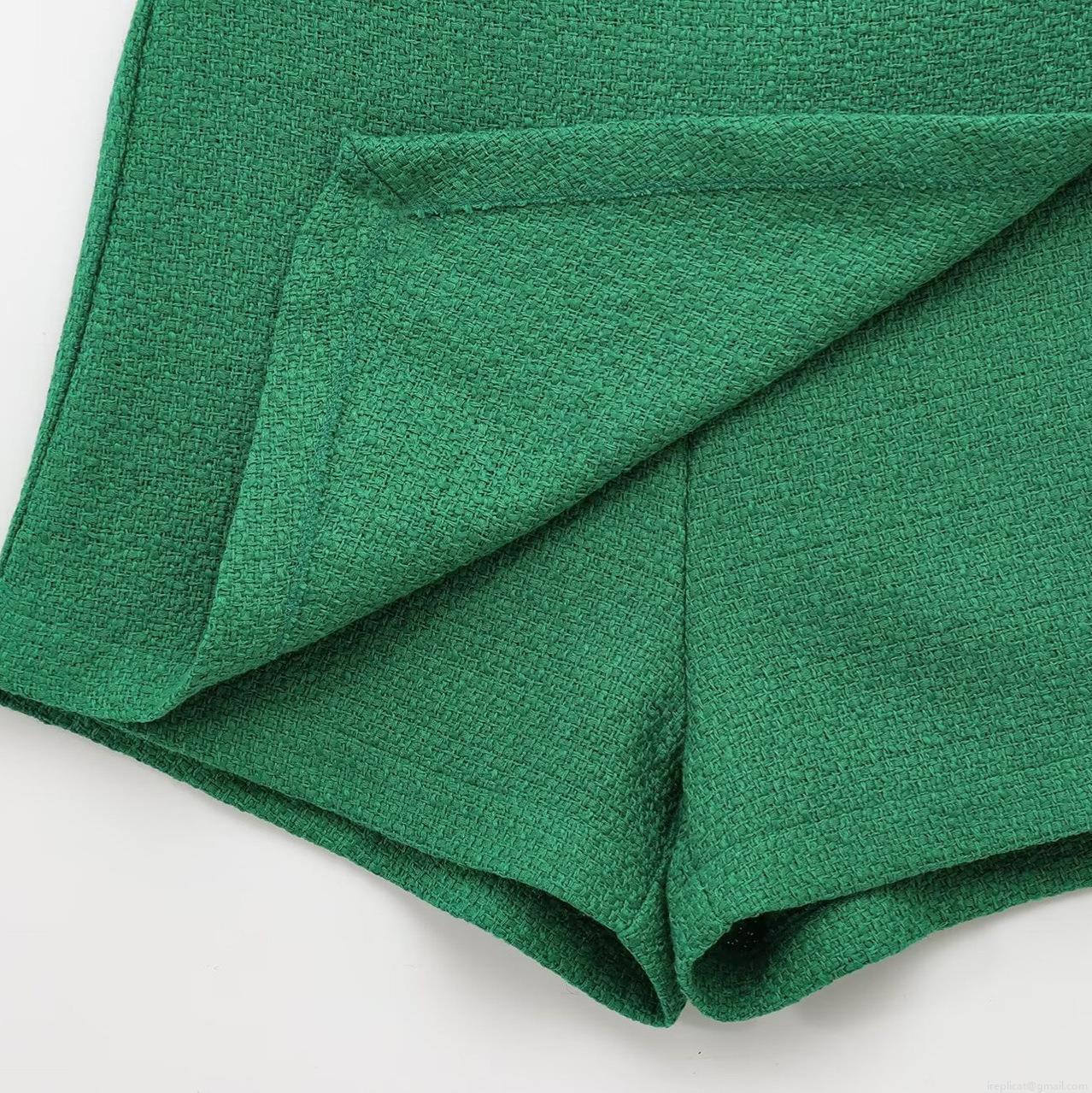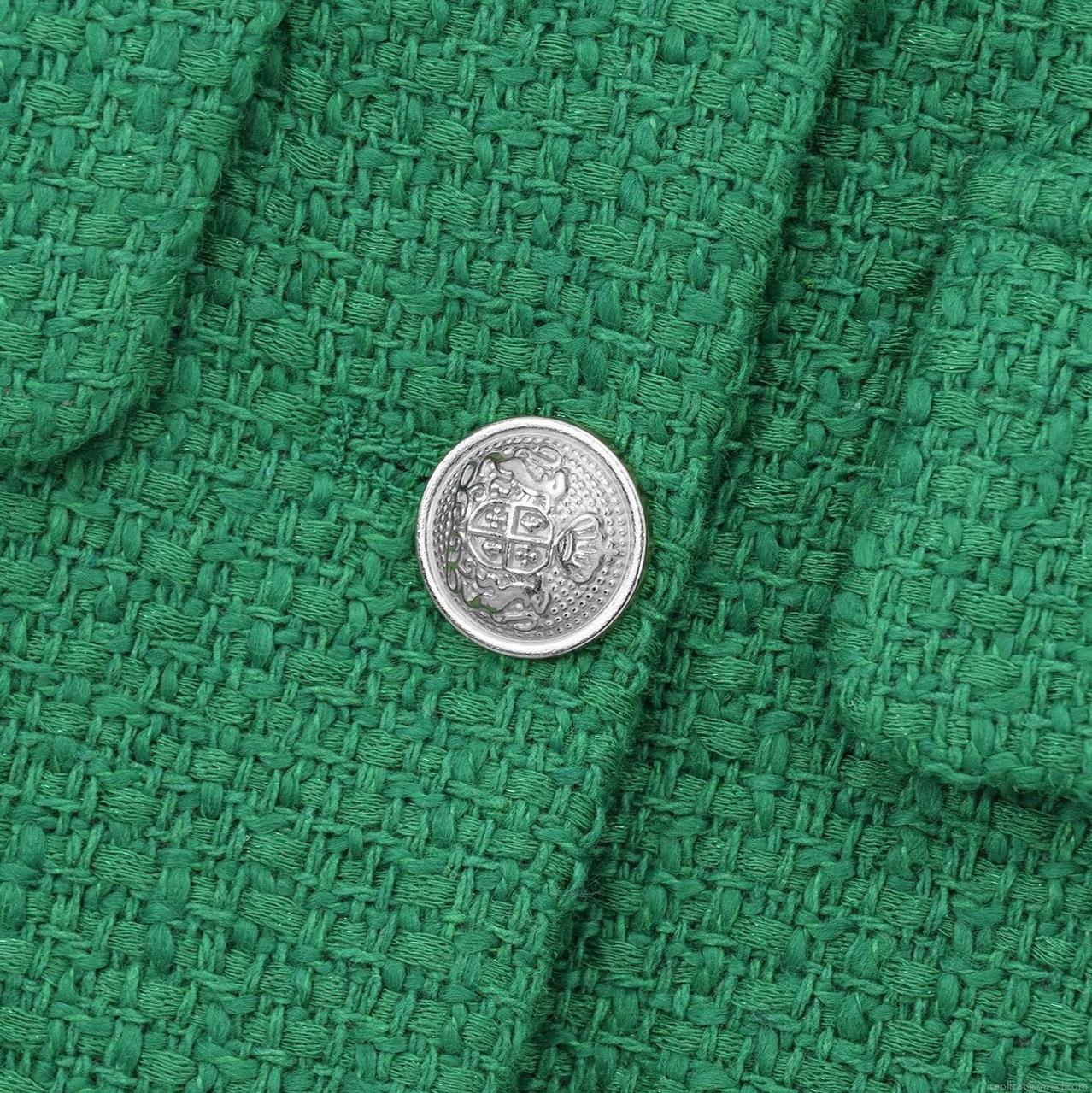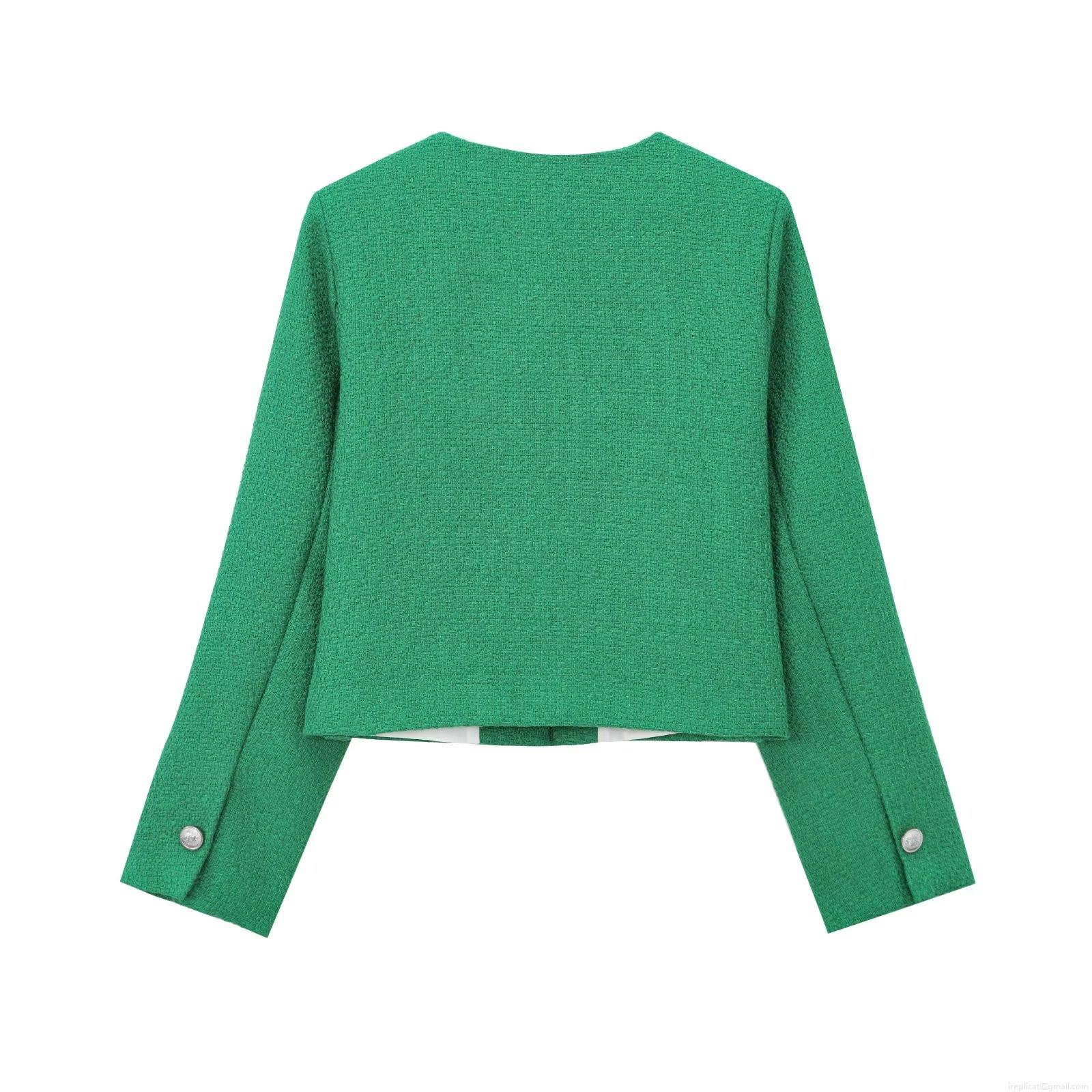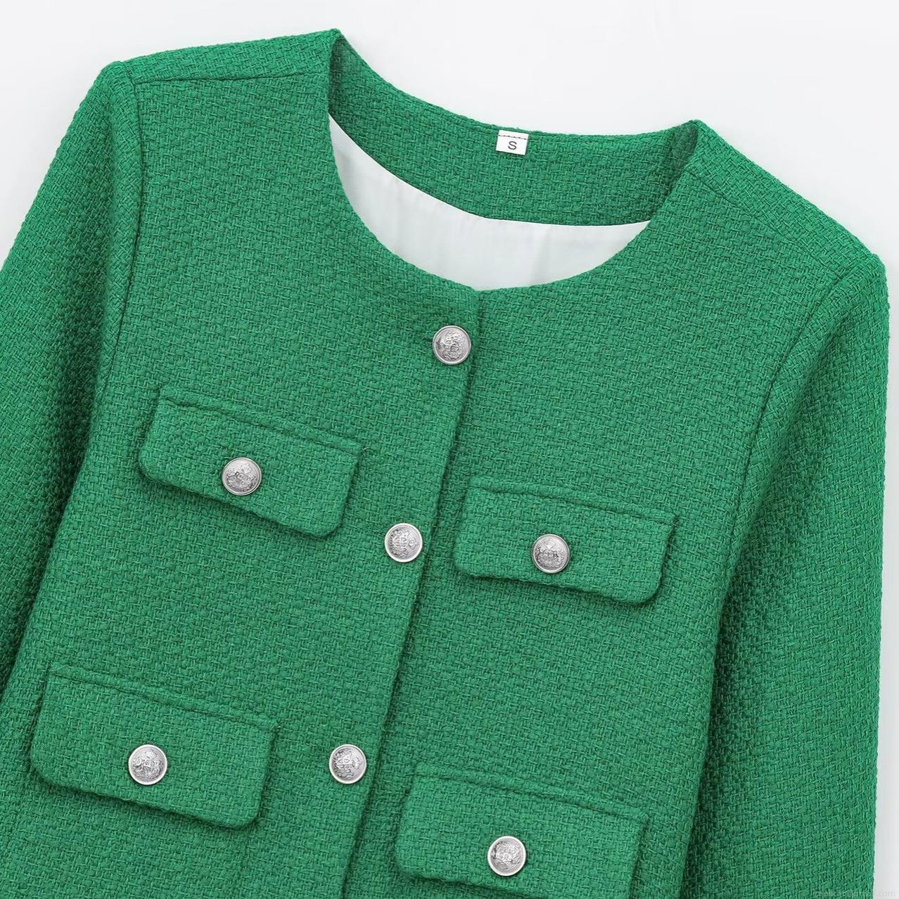 Solid Color, Tweed, Shoulder Pads, Fabric Texture, Metal Embossed Buckle, Flip-top Patch Pocket