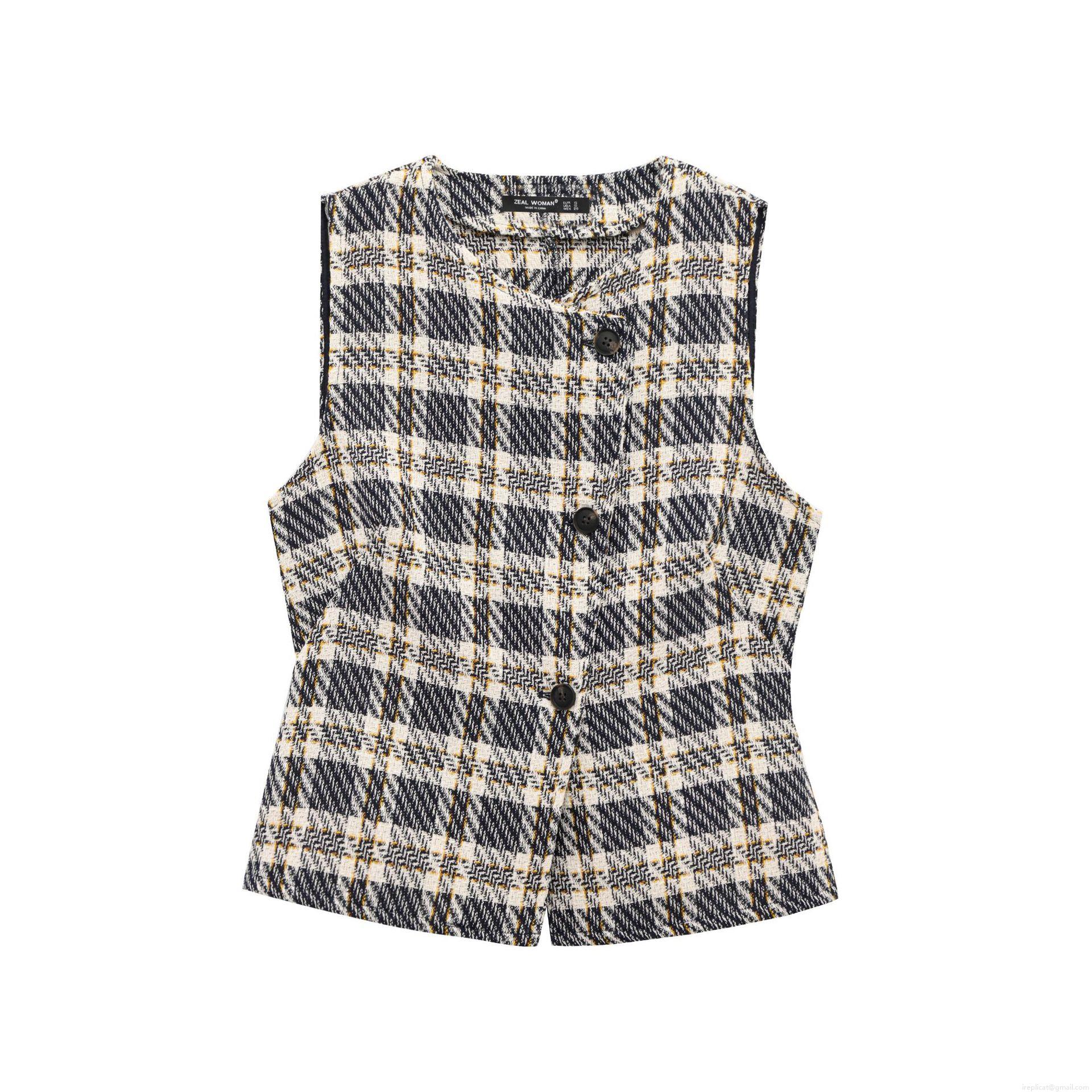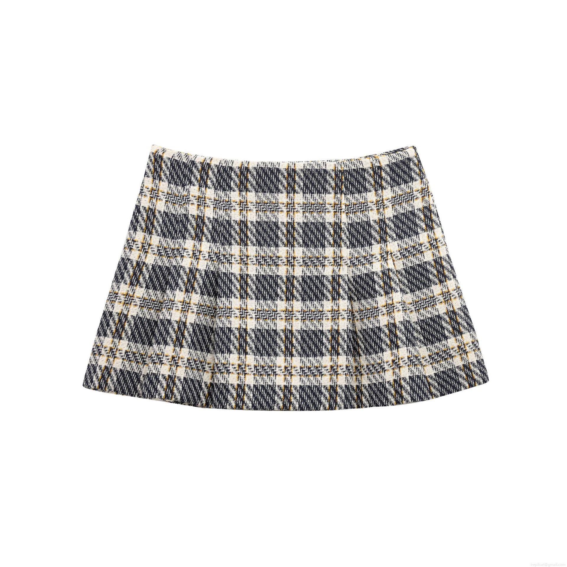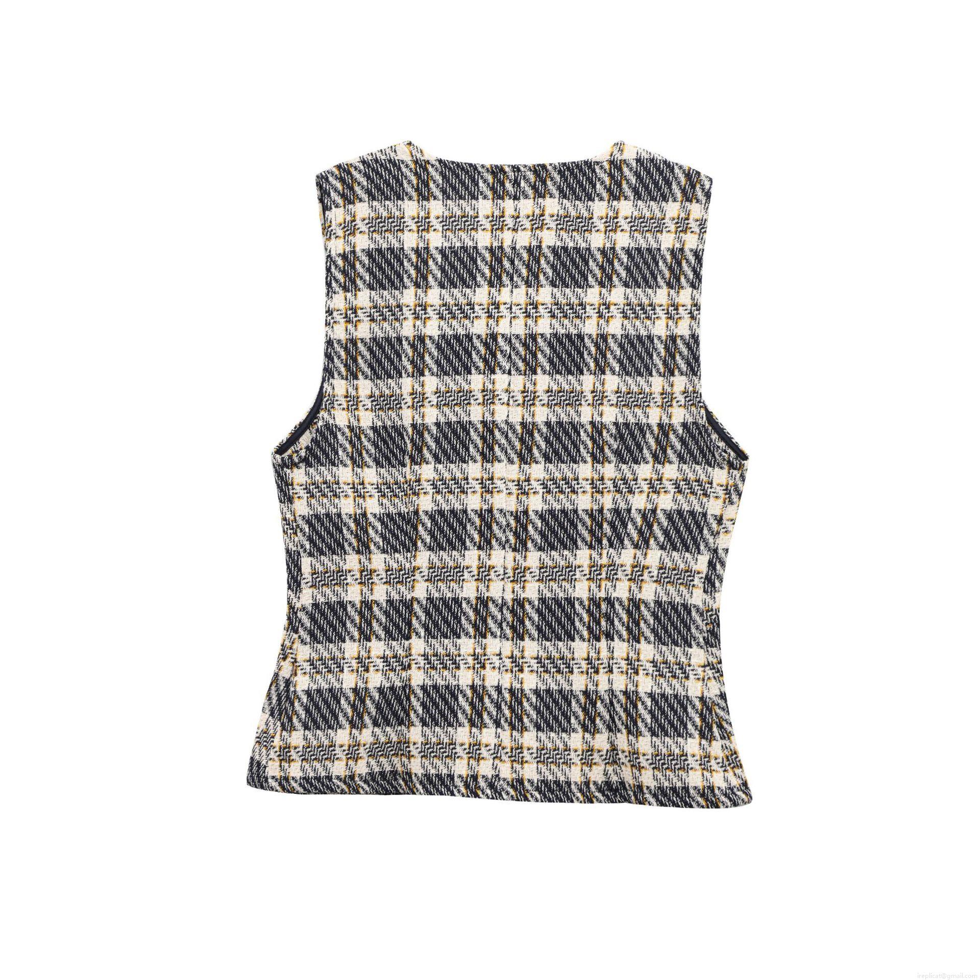 • Women's Elegant Tweed Plaid 2 Piece Set V-Neck Button Down Sleeveless Vest and High Waist A-Line Skort Streetwear Outfit
