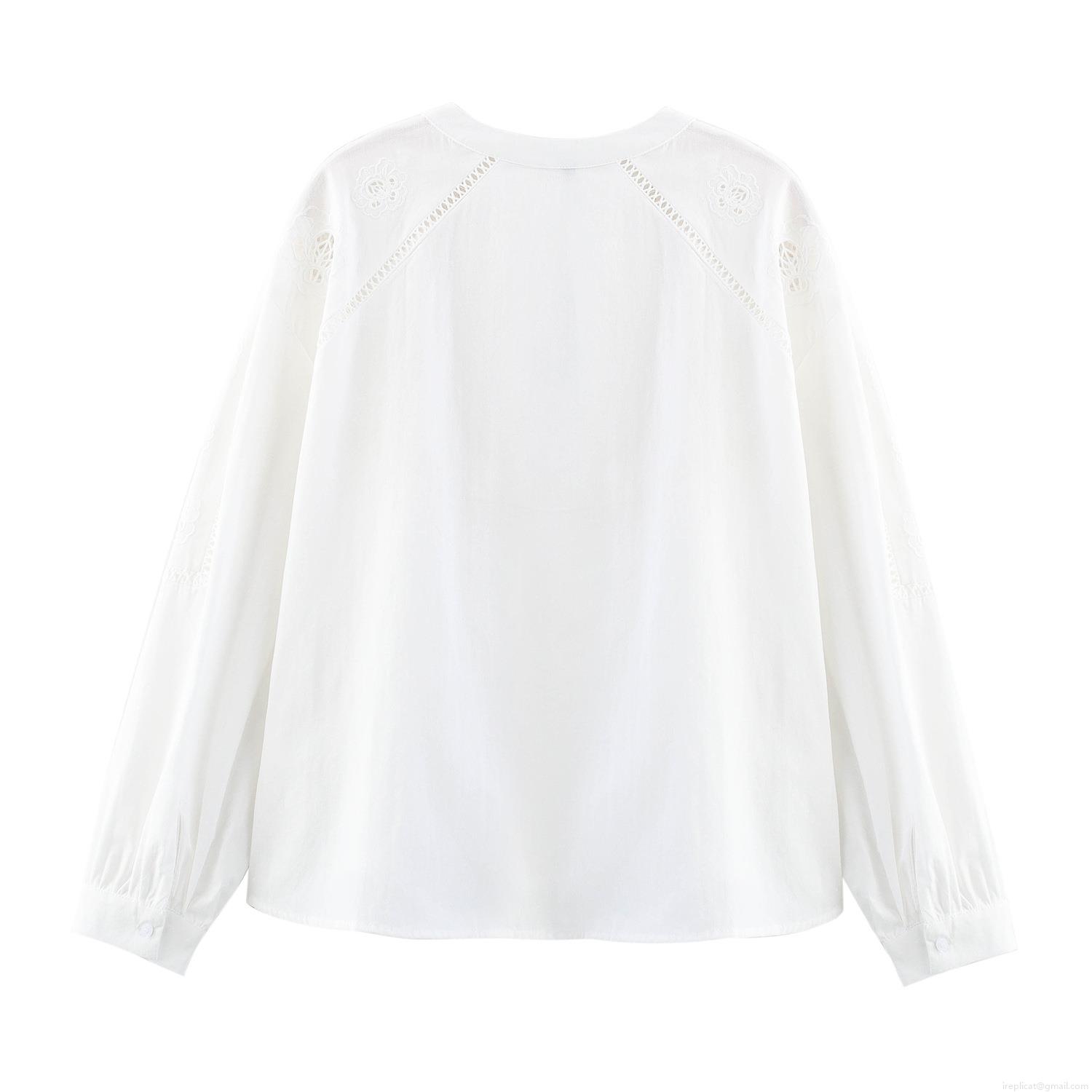 Solid Color, Embroidery, Hollow Out, Pleats, Buttons, Lace Patchwork, Floral Embroidery