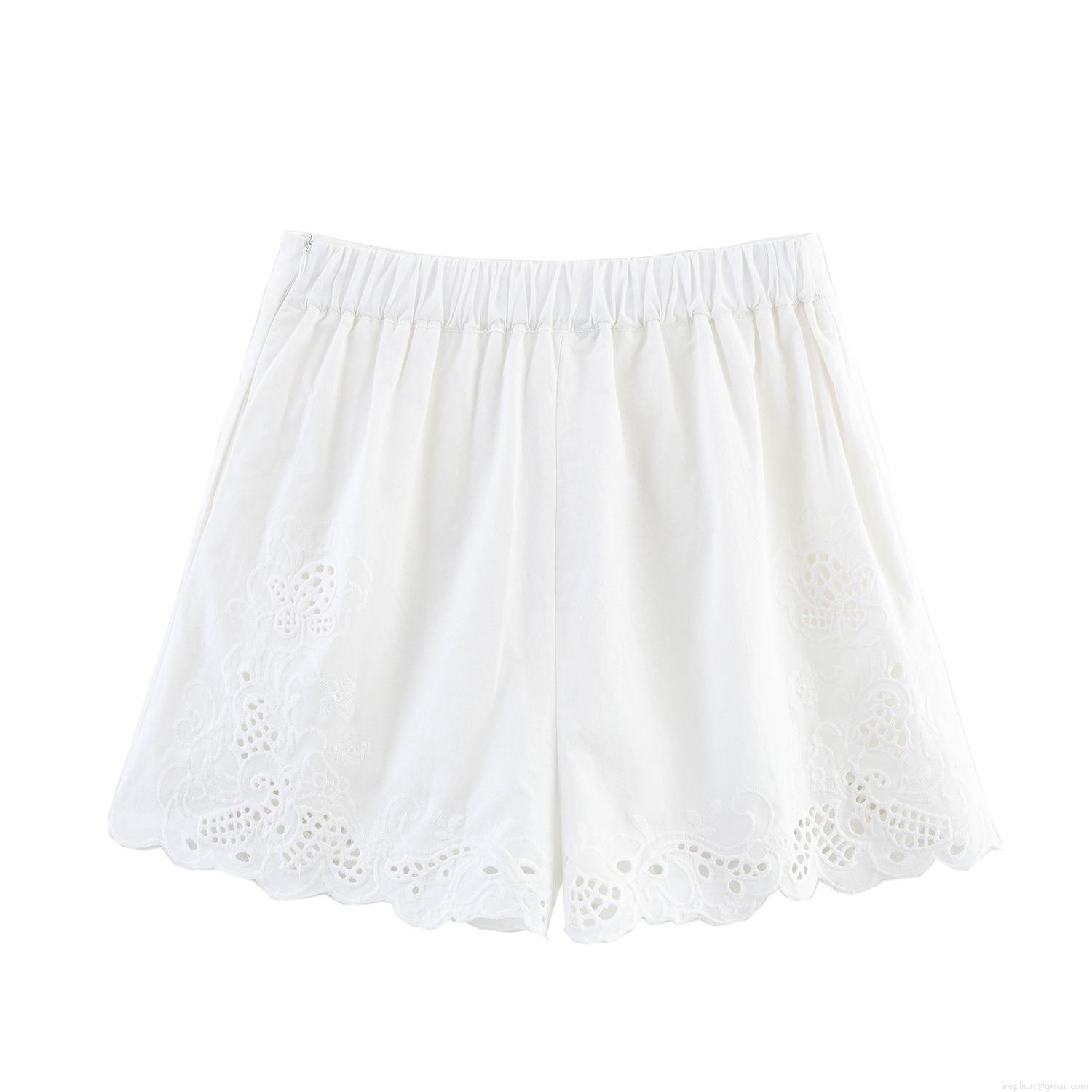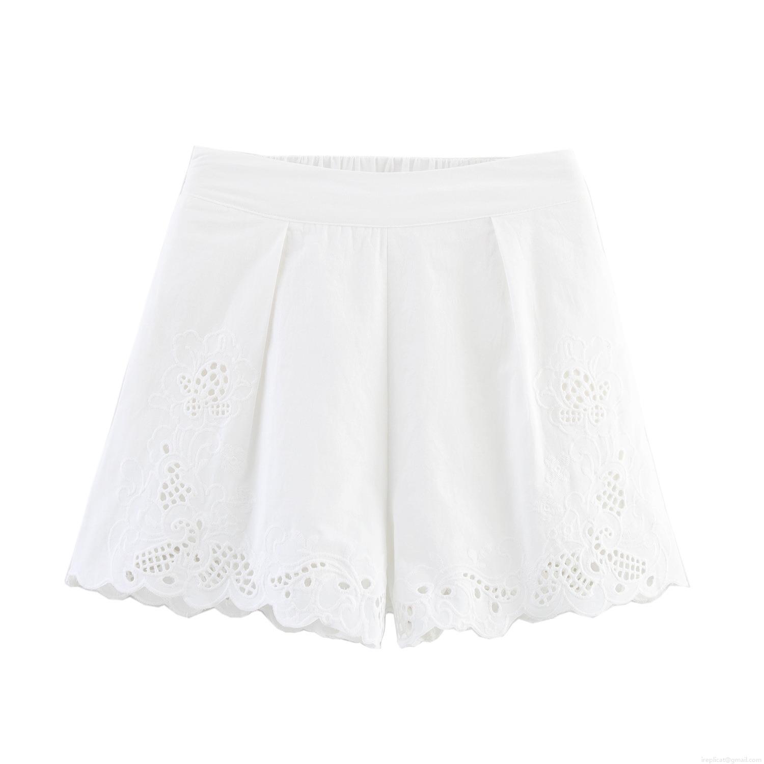• Women's Elegant White Embroidery Hollow Out Shirt and Shorts Set Cotton Blend Long Sleeve Lace Patchwork Casual Two Piece Shorts Outfit