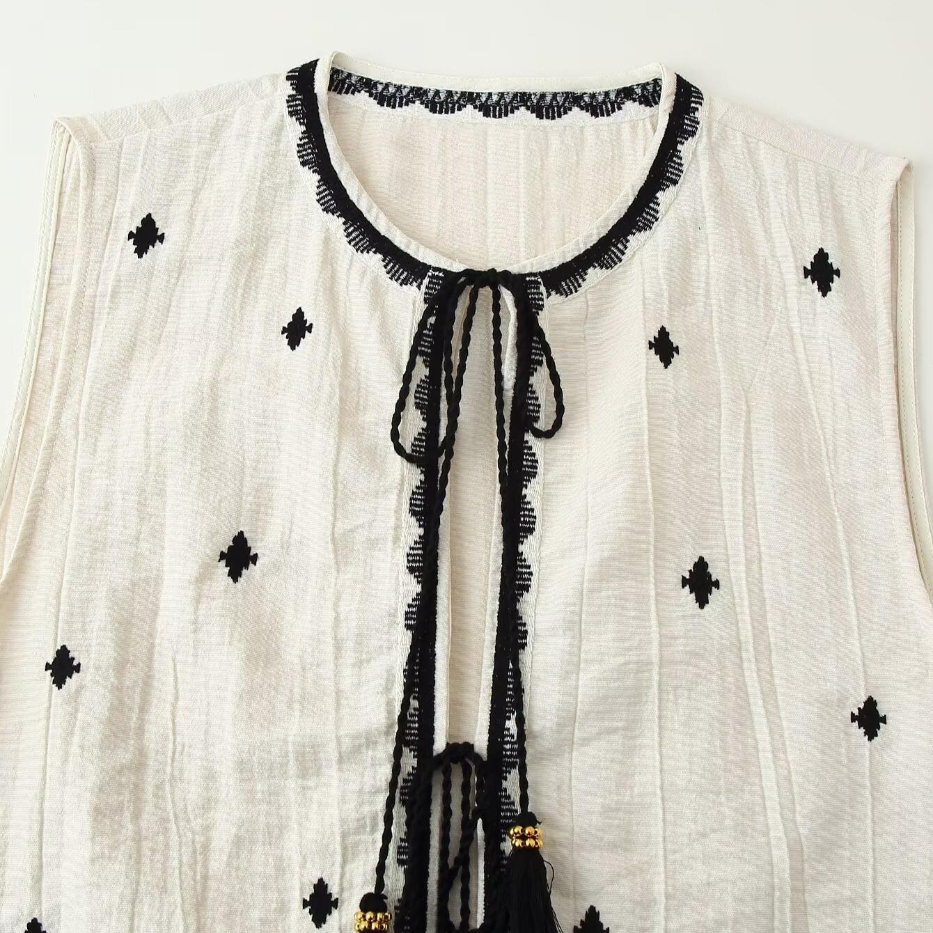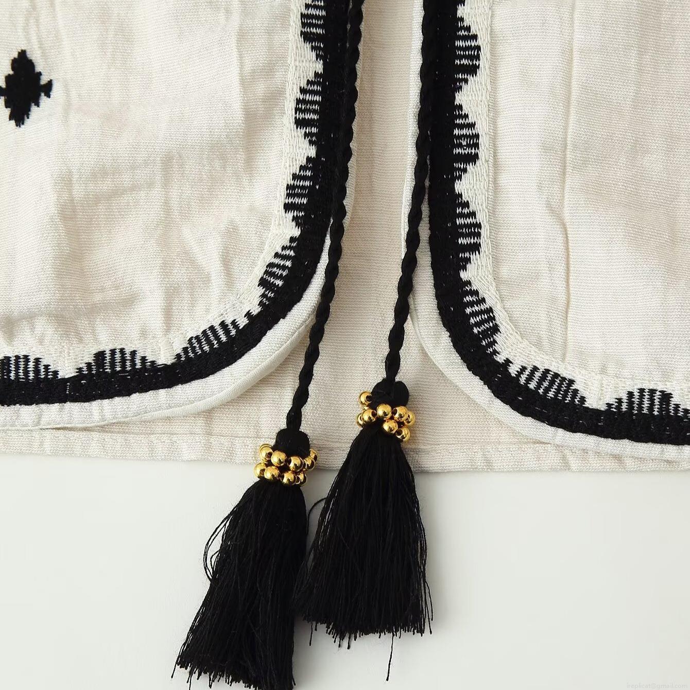 • Women's Ethnic Embroidery Shorts Set Cotton Linen Feel Sleeveless Tassel Vest and Elastic Waist Short Pants Bohemian Summer Vacation Two Piece Outfit For Ladies