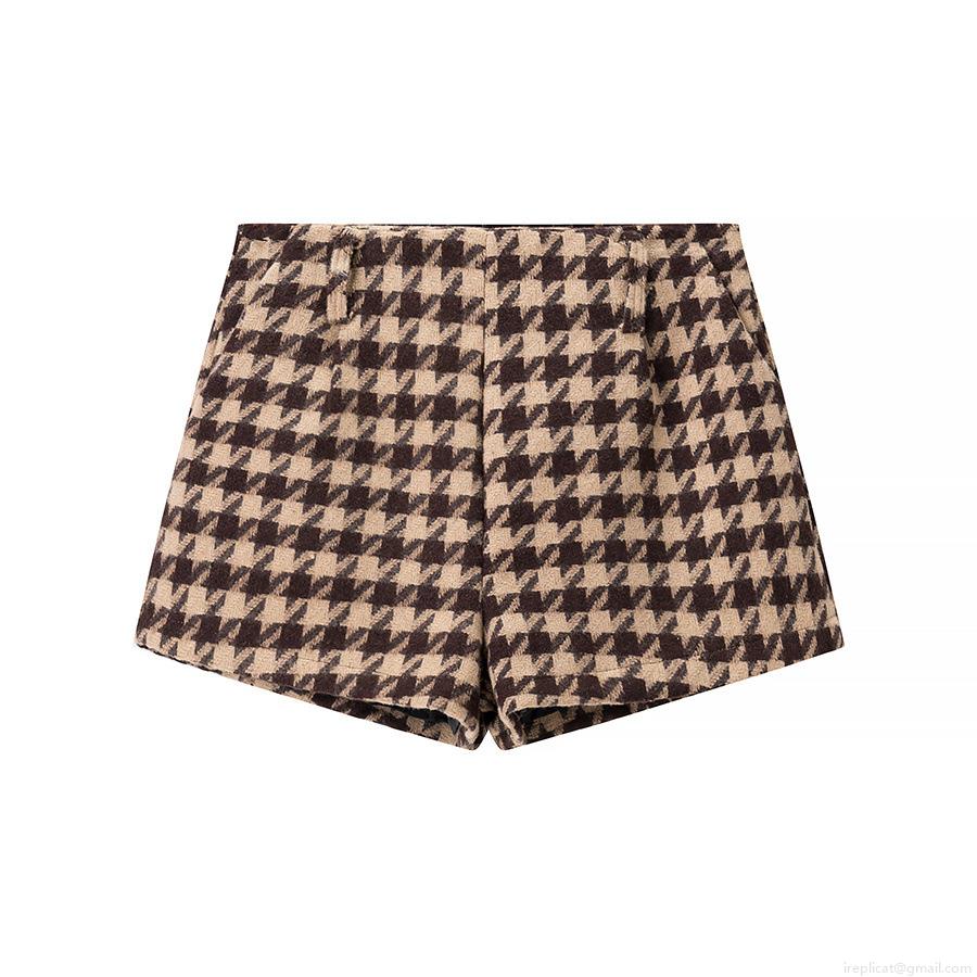 • Women's European Street Style Houndstooth Two-Piece Set Short Tweed Jacket Stand Collar Top and High Waist Wide Leg Shorts Fall Winter Outfits