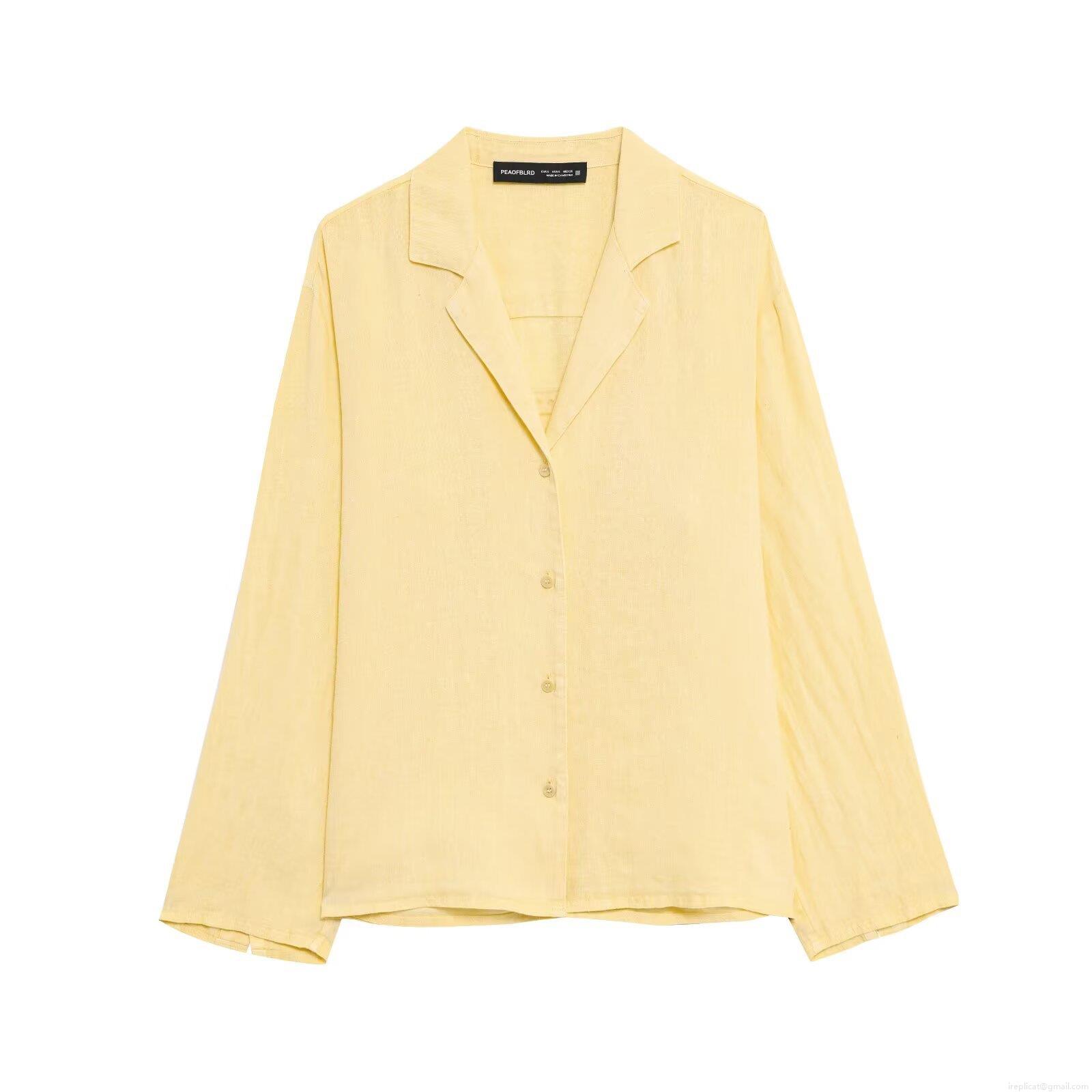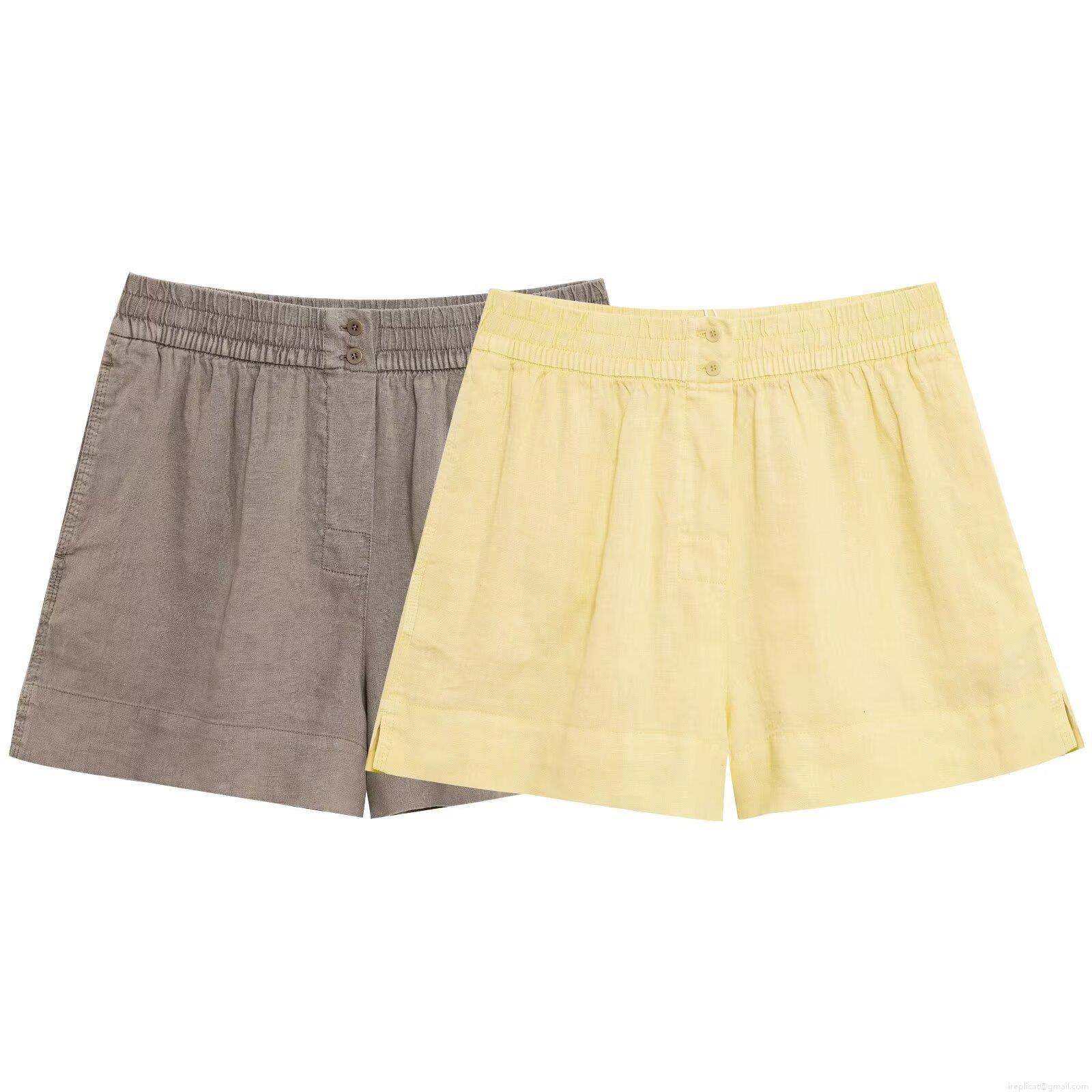 • Women's European Style Solid Color Natural Linen Shirt and Shorts Set Casual Breathable Two-Piece Long Sleeve Lapel Top and Elastic Waist Shorts Suit for Summer Vacation