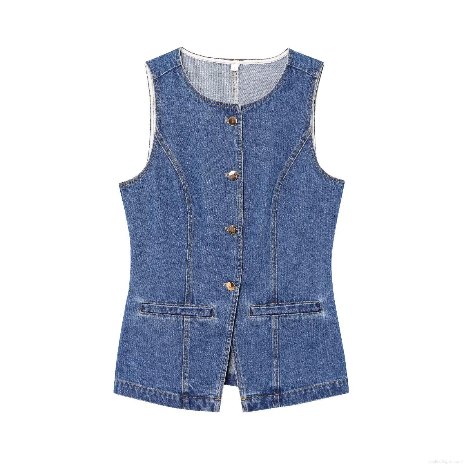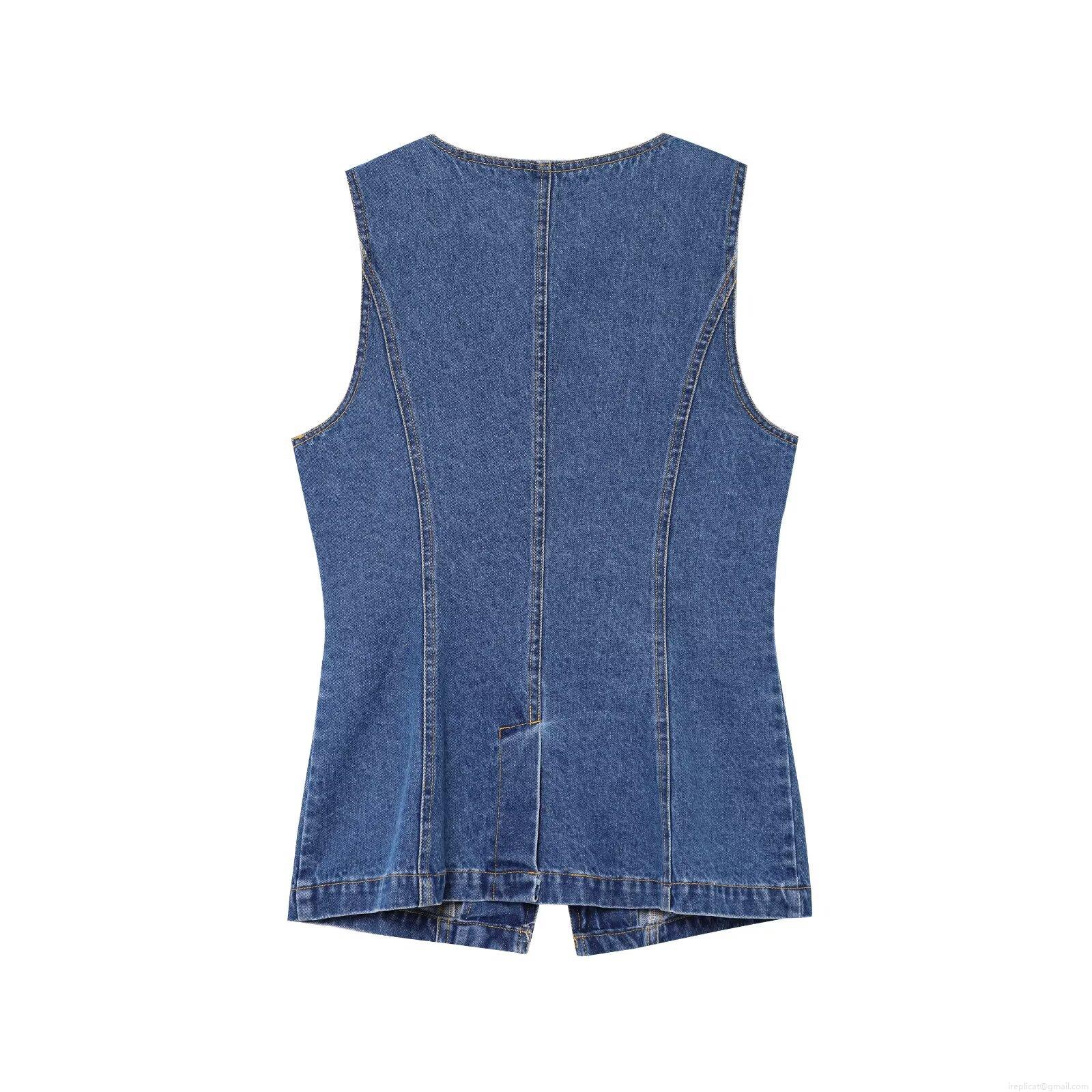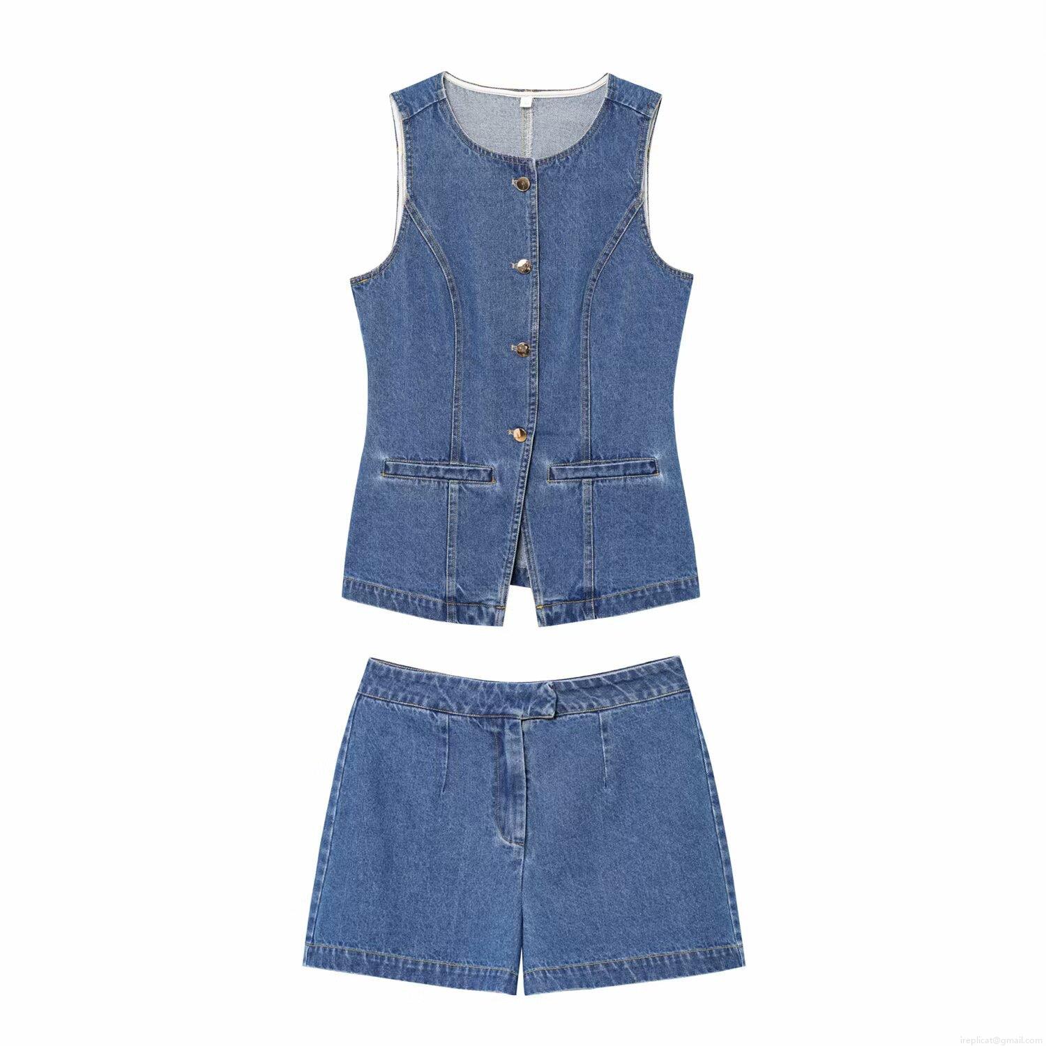 Women's Fashion Denim Two Piece Set Sleeveless Single Breasted Vest and Mid Waist Denim Shorts Set Summer Streetwear Casual Outfit For Women