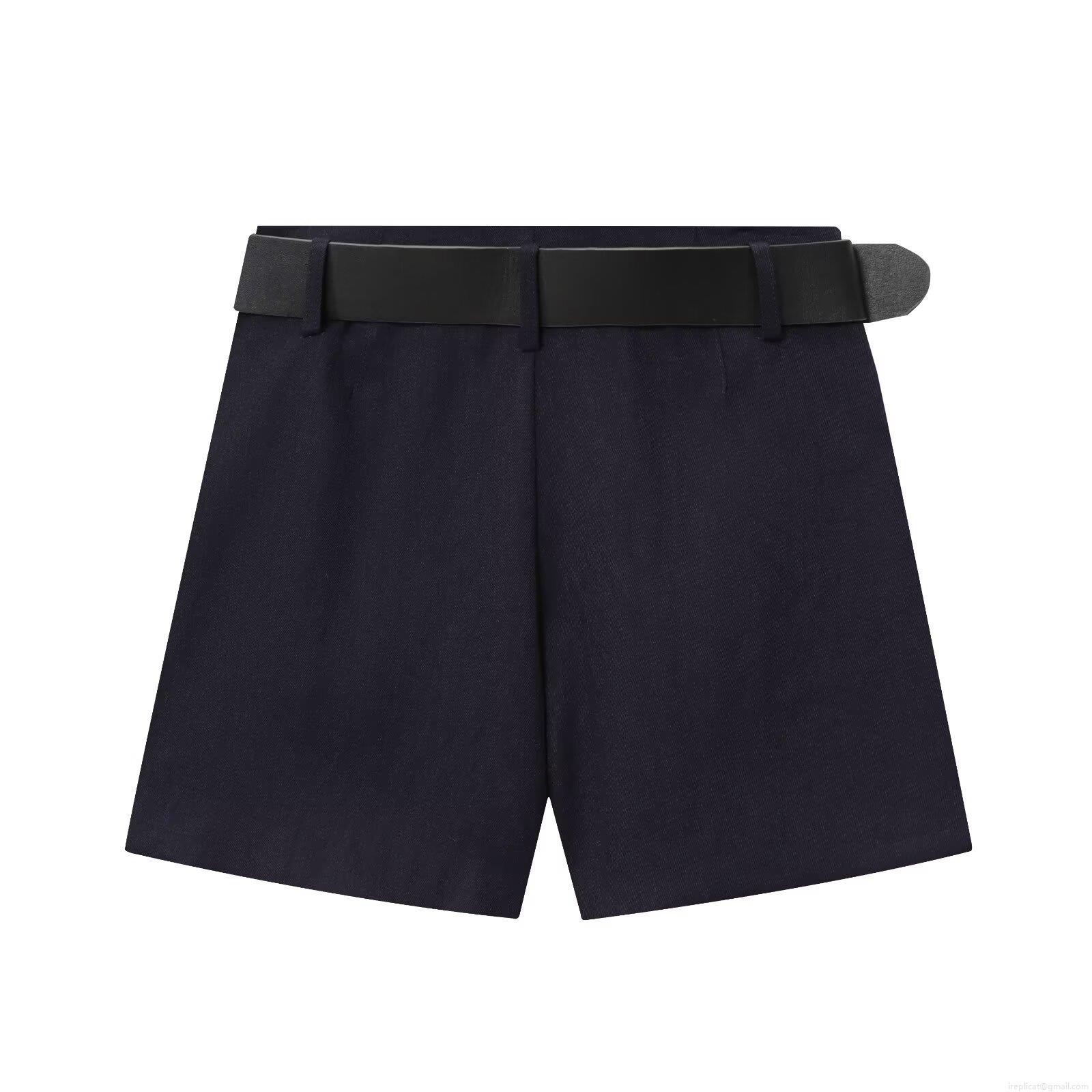 • Women's Fashion Navy Blue Golden Button Cropped Blazer Jacket And Belted High Waist Shorts Two-Piece Set Polyester London Twill Streetwear Outfit