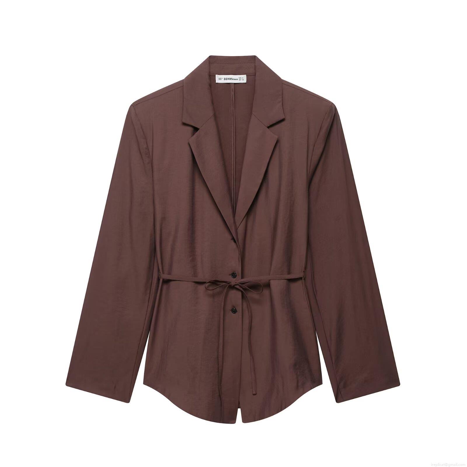 • Women's Fashion Two-Piece Co-ord Set Belted Blazer Jacket And Matching Shorts Suit Elegant Solid Color Long Sleeve Office Lady Streetwear Outfit For Autumn