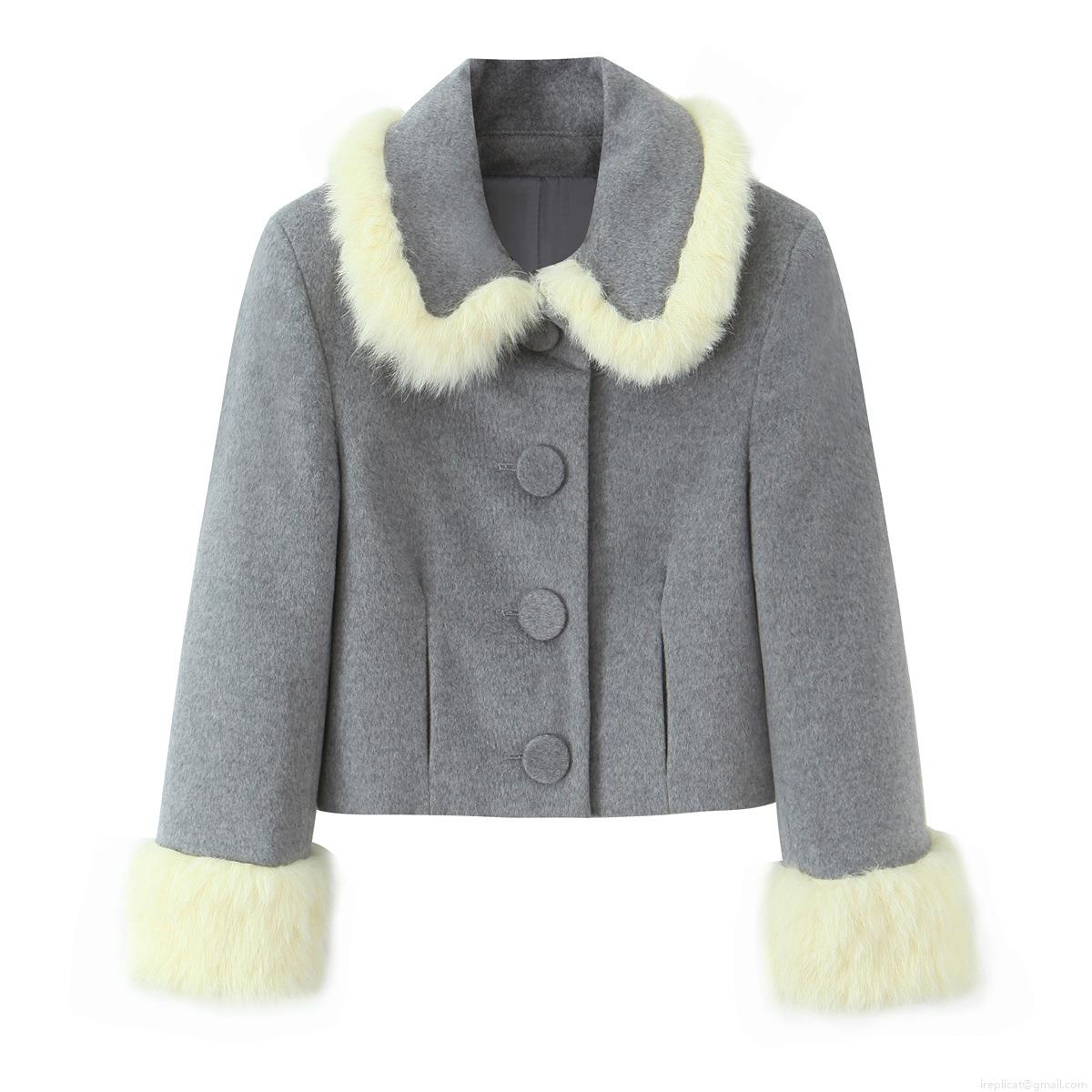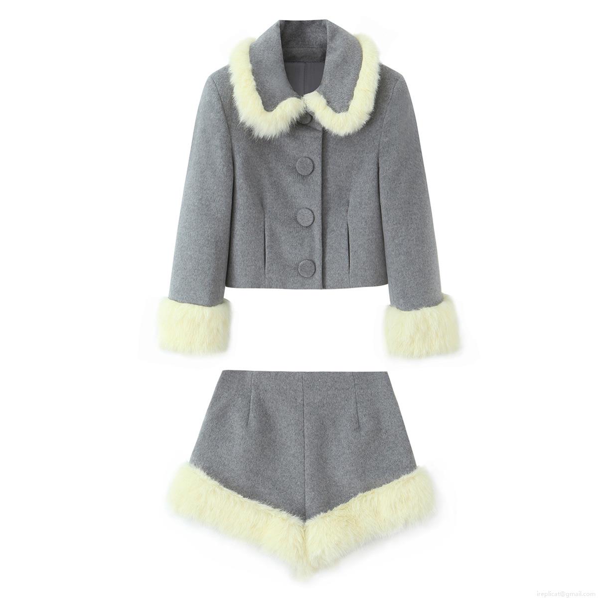 • Women's Fashion Two-Piece Set Faux Fur Trim Short Jacket and V-Shape Shorts Dark Grey Polyester Autumn Winter Streetwear Casual Suit