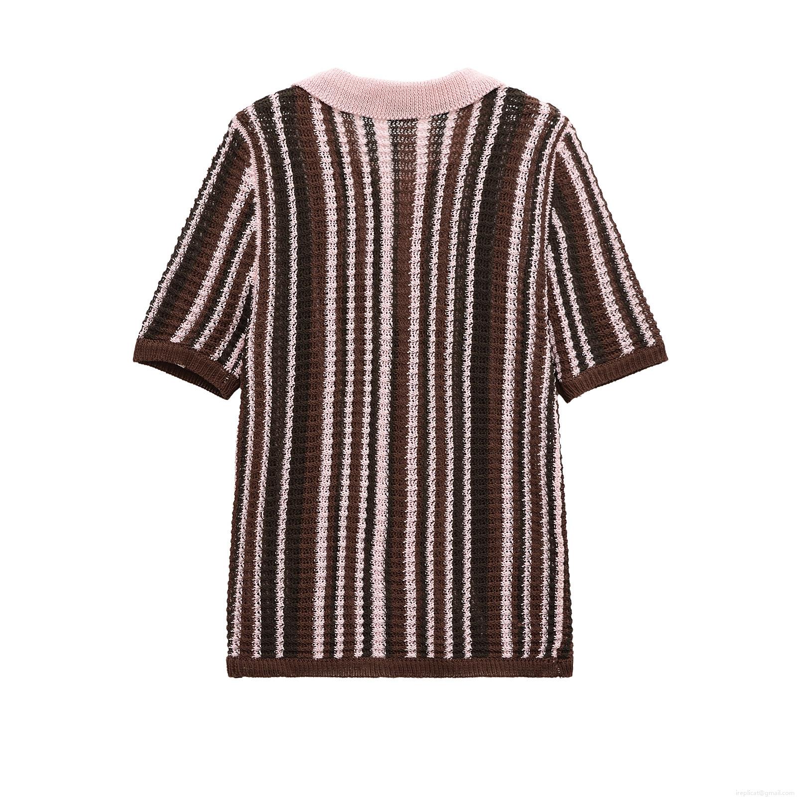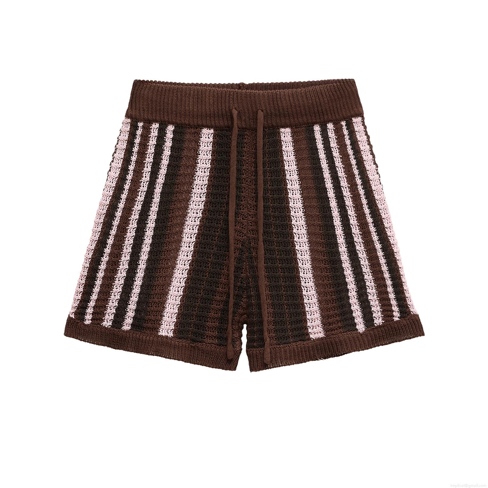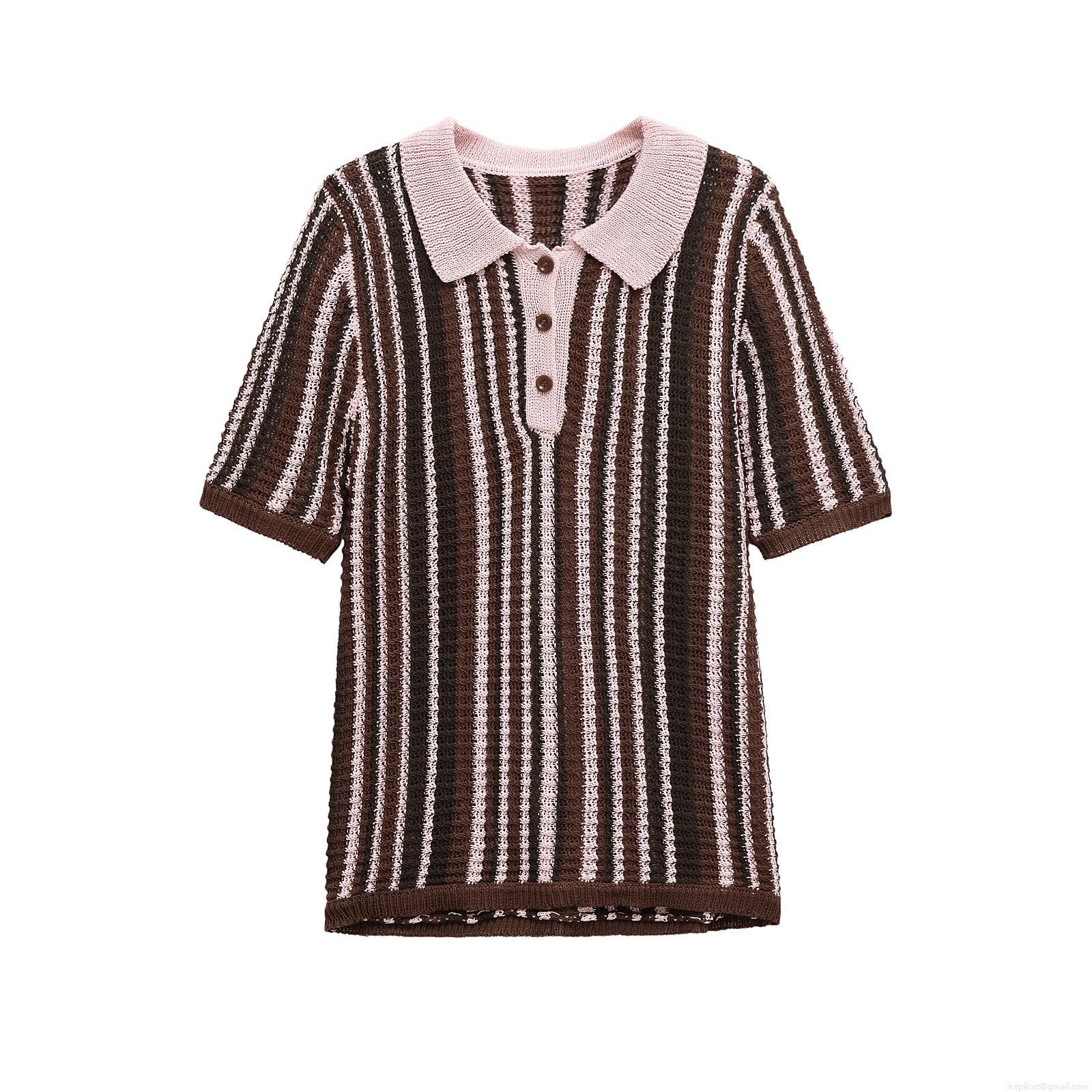 • Women's Knit Stripe Two Piece Set Short Sleeve Polo Shirt and Elastic Waist Drawstring Shorts Casual Color Block Summer Streetwear Outfits for Women