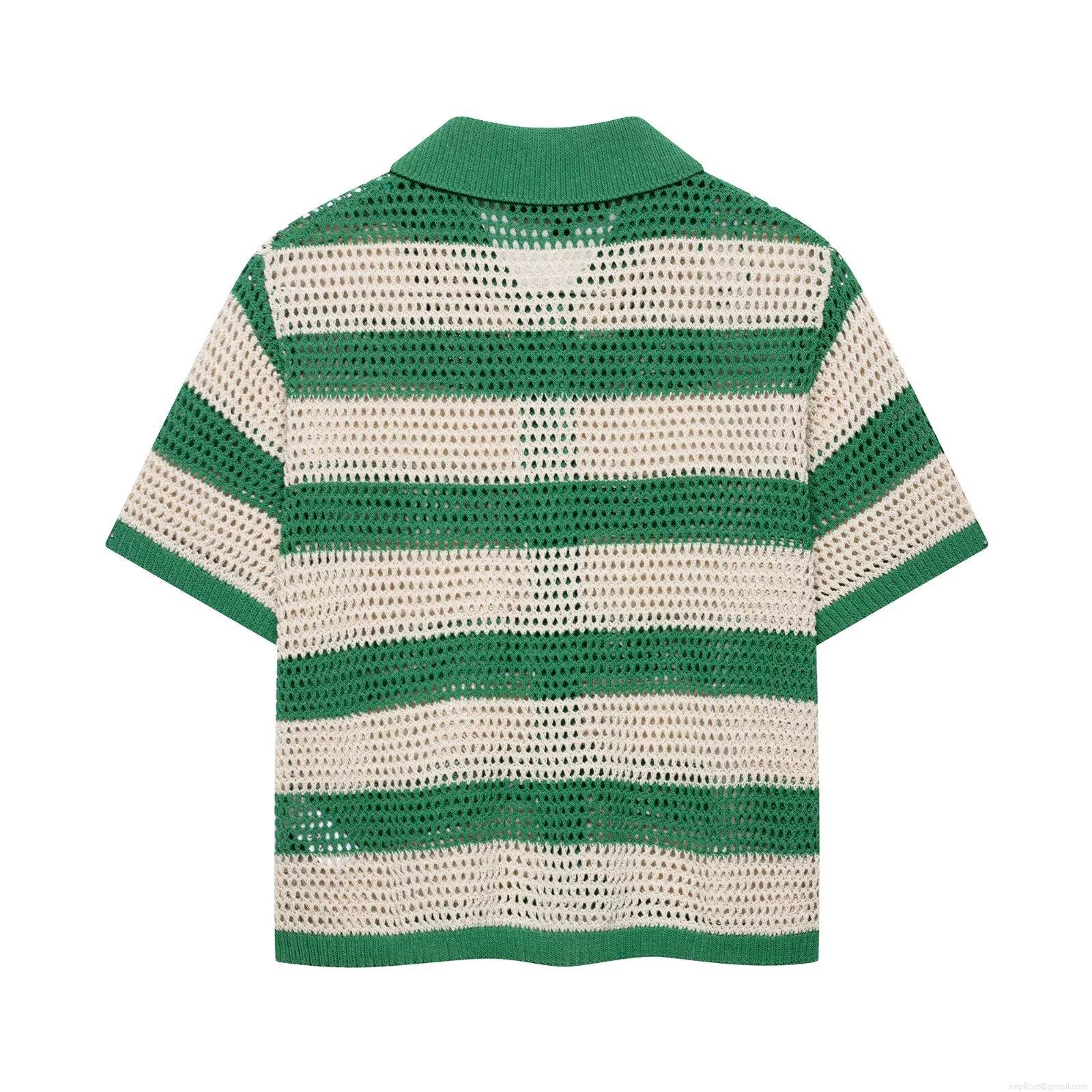 • Women's Knit Striped Shorts Set 2 Piece Outfits Hollow Out Crochet Short Sleeve Polo Shirt And Drawstring Shorts Summer Casual Vacation Streetwear Set