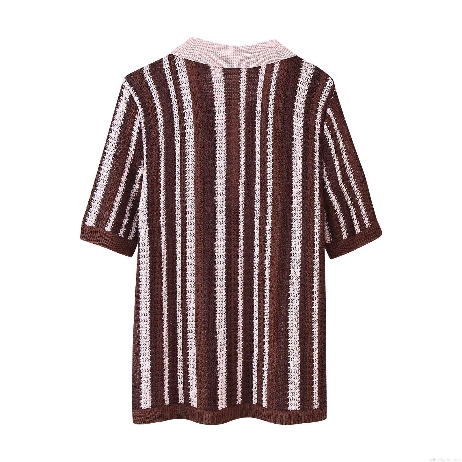 • Women's Knitted Striped Two Piece Set Polo Short Sleeve Top And Drawstring Shorts Casual Summer Outfit Lightweight Breathable Lounge Wear Streetwear