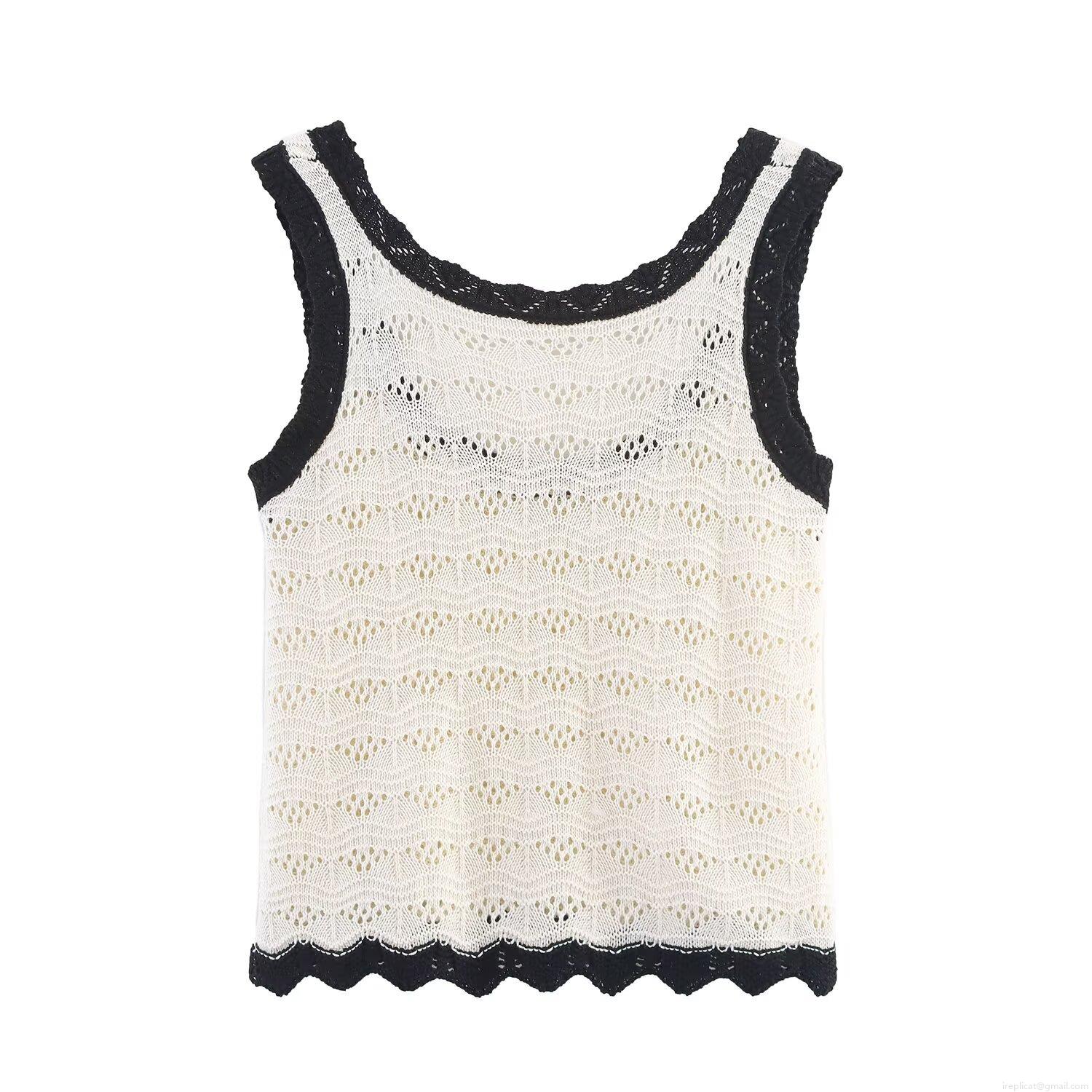 • Women's Knitted Two-Piece Shorts Set Contrast Scalloped Trim Crochet Cami Tank Top And Drawstring Shorts Sleeveless Streetwear Casual Loungewear Outfit Cream Black