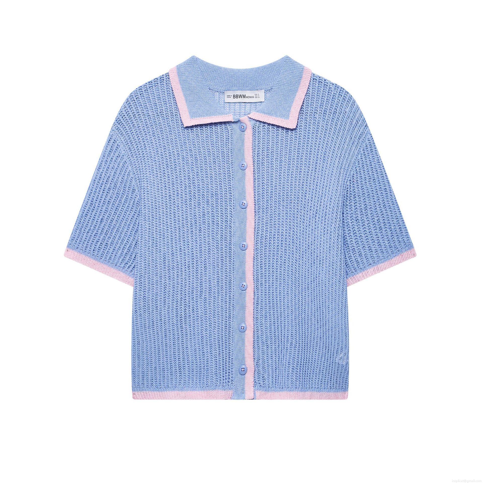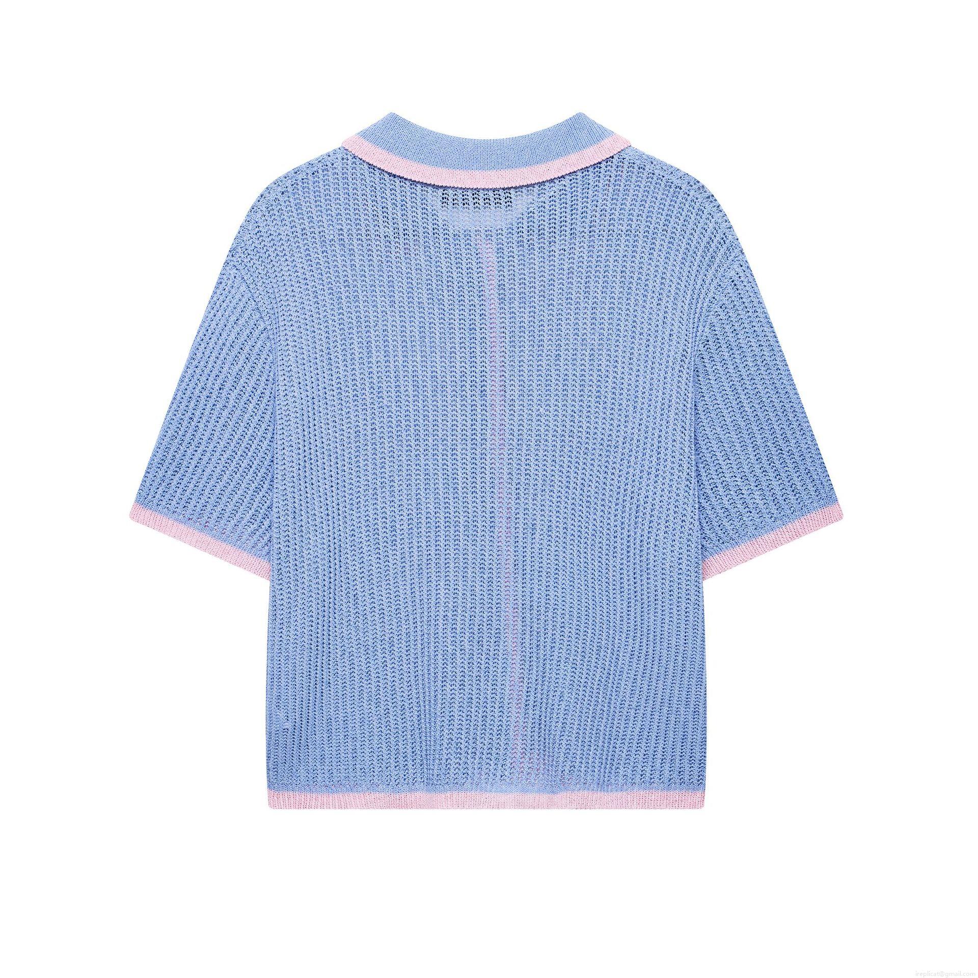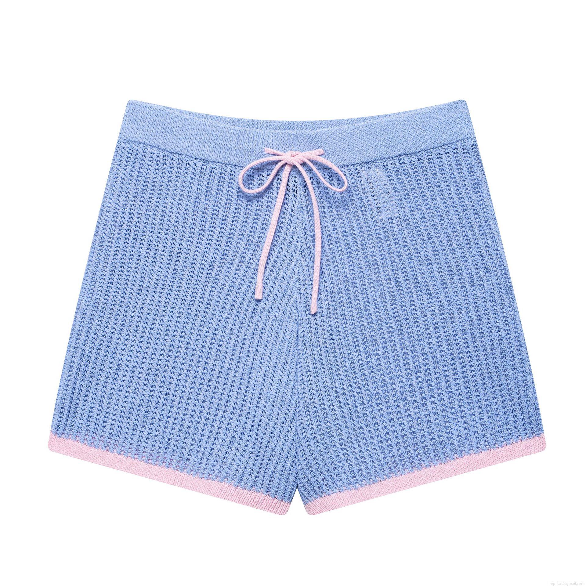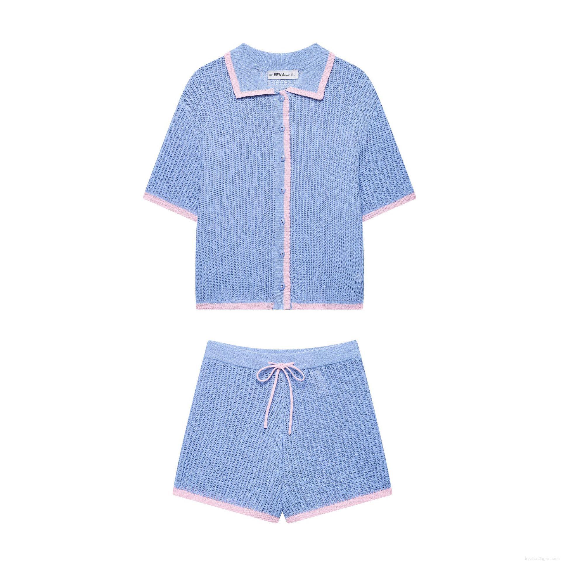 • Women's Knitted Two-Piece Shorts Set Hollow Out Polo Top and Drawstring Shorts Casual Summer Outfit French Style Polyester Knitwear for Women