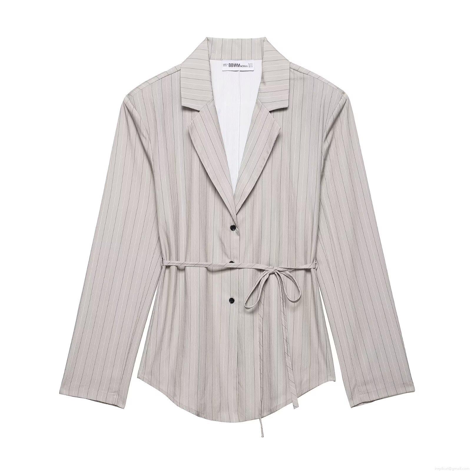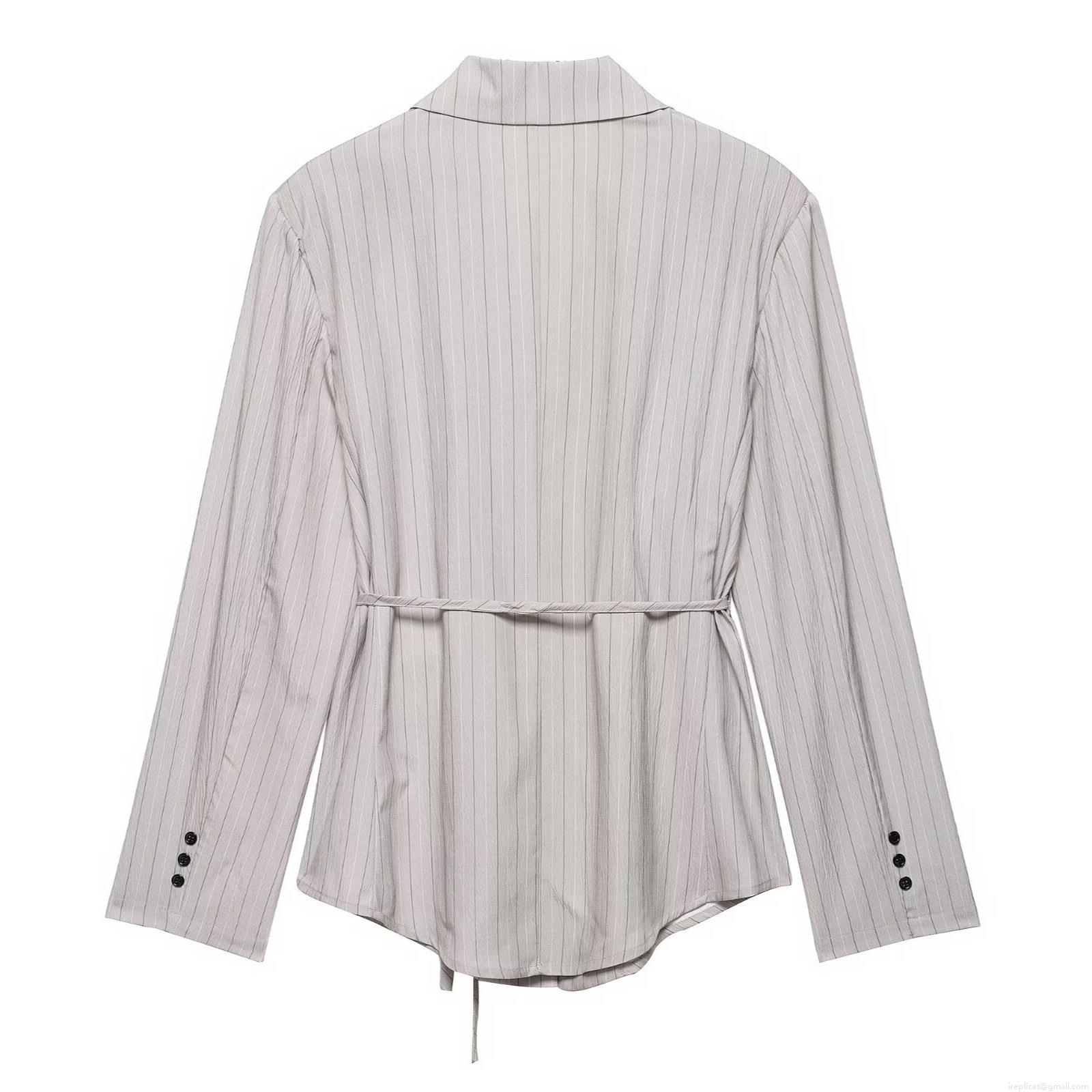 Pinstripes, Button Decoration, Thin Vertical Stripes, Waist Tie