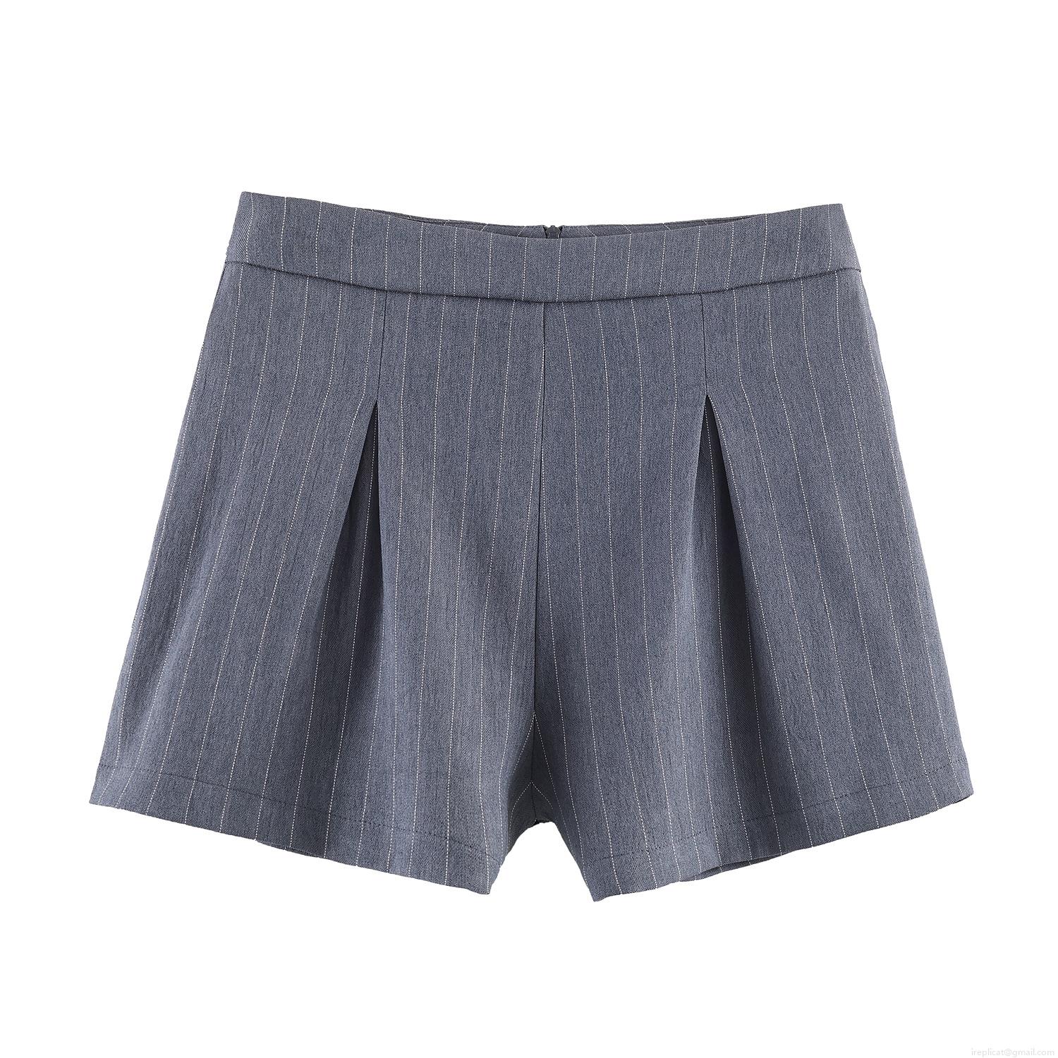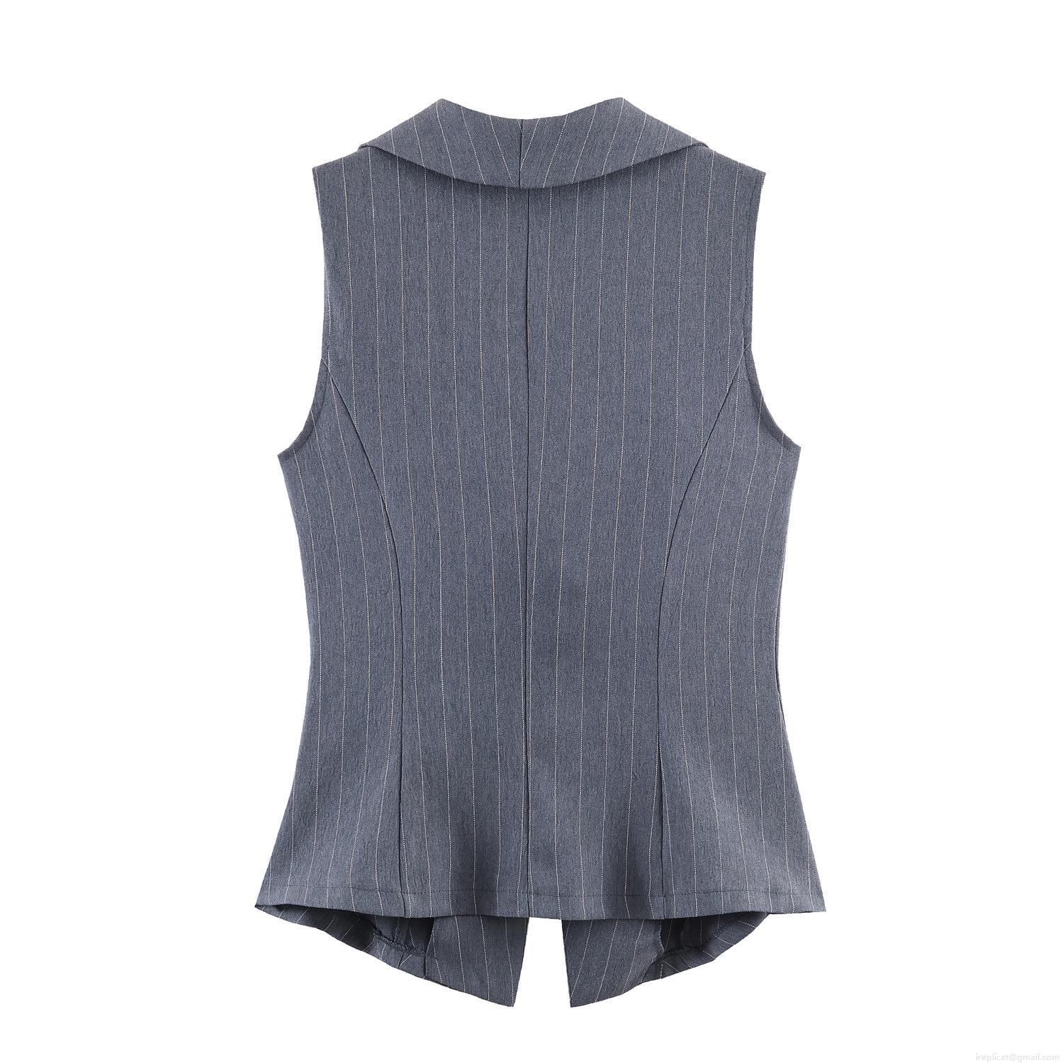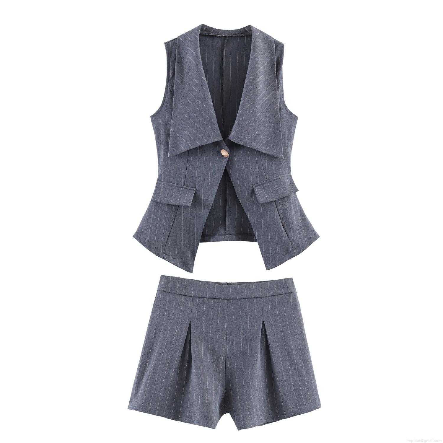 • Women's Pinstripe Vest And Shorts Set 2 Piece Sleeveless Lapel Waistcoat Top High Waisted Pleated A-Line Shorts Grey Polyester Y2K Preppy Style Casual Outfits