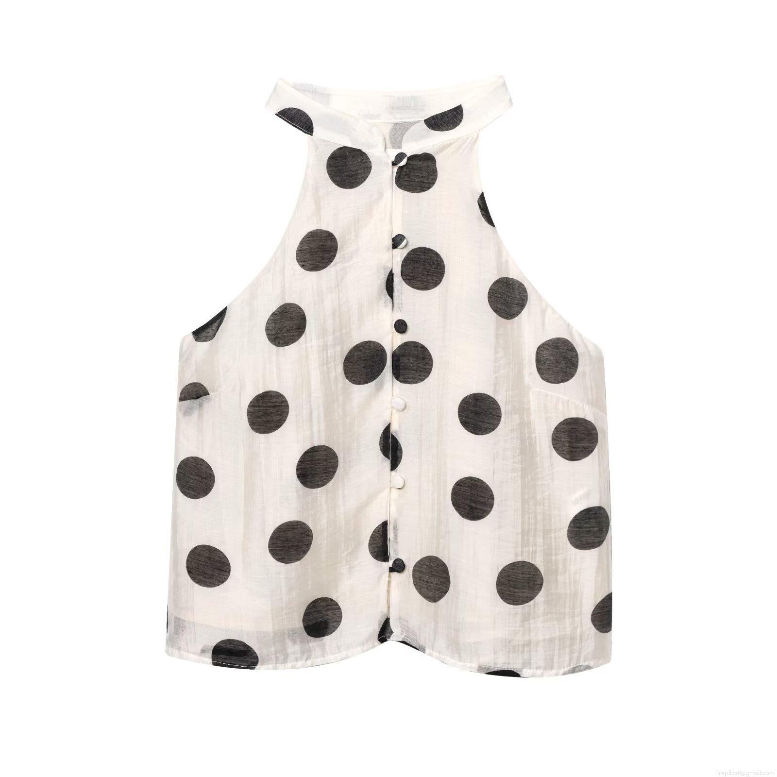 Polka Dots, Neckband, Polka Dot Print, Splicing Process, Button Decoration
