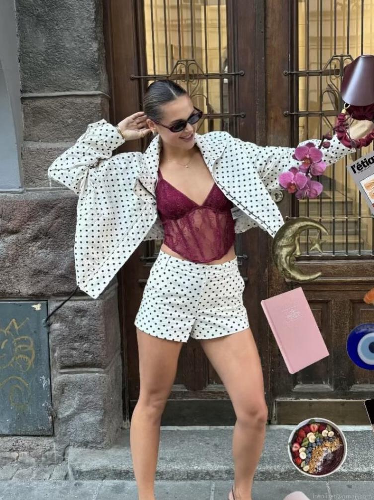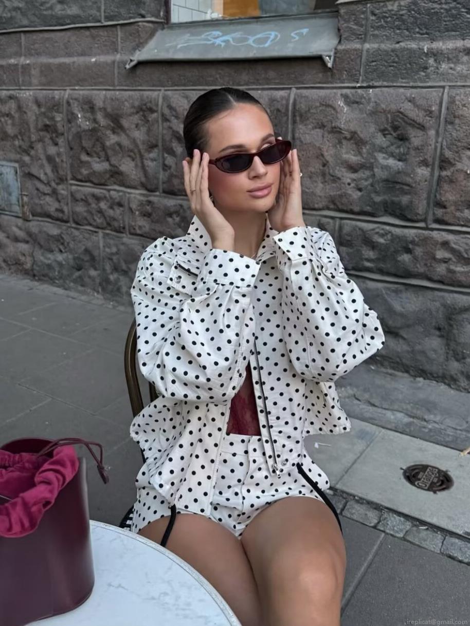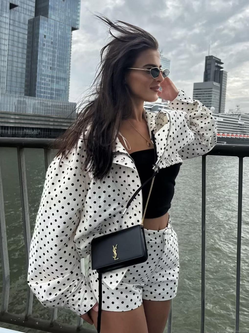 • Women's Polka Dot Print 2 Piece Set 100% Polyester Stand Collar Long Sleeve Jacket And High Waist Casual Shorts Set Streetwear Outfit Tracksuit For Autumn