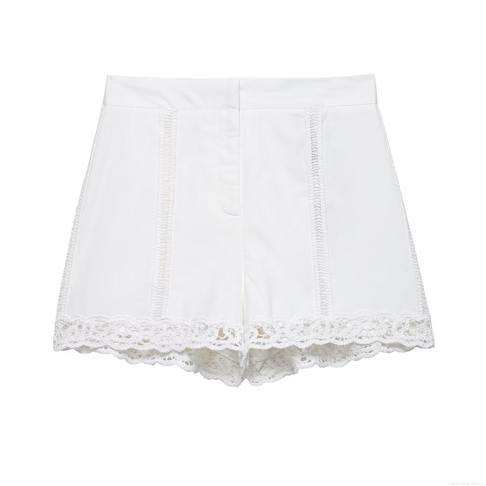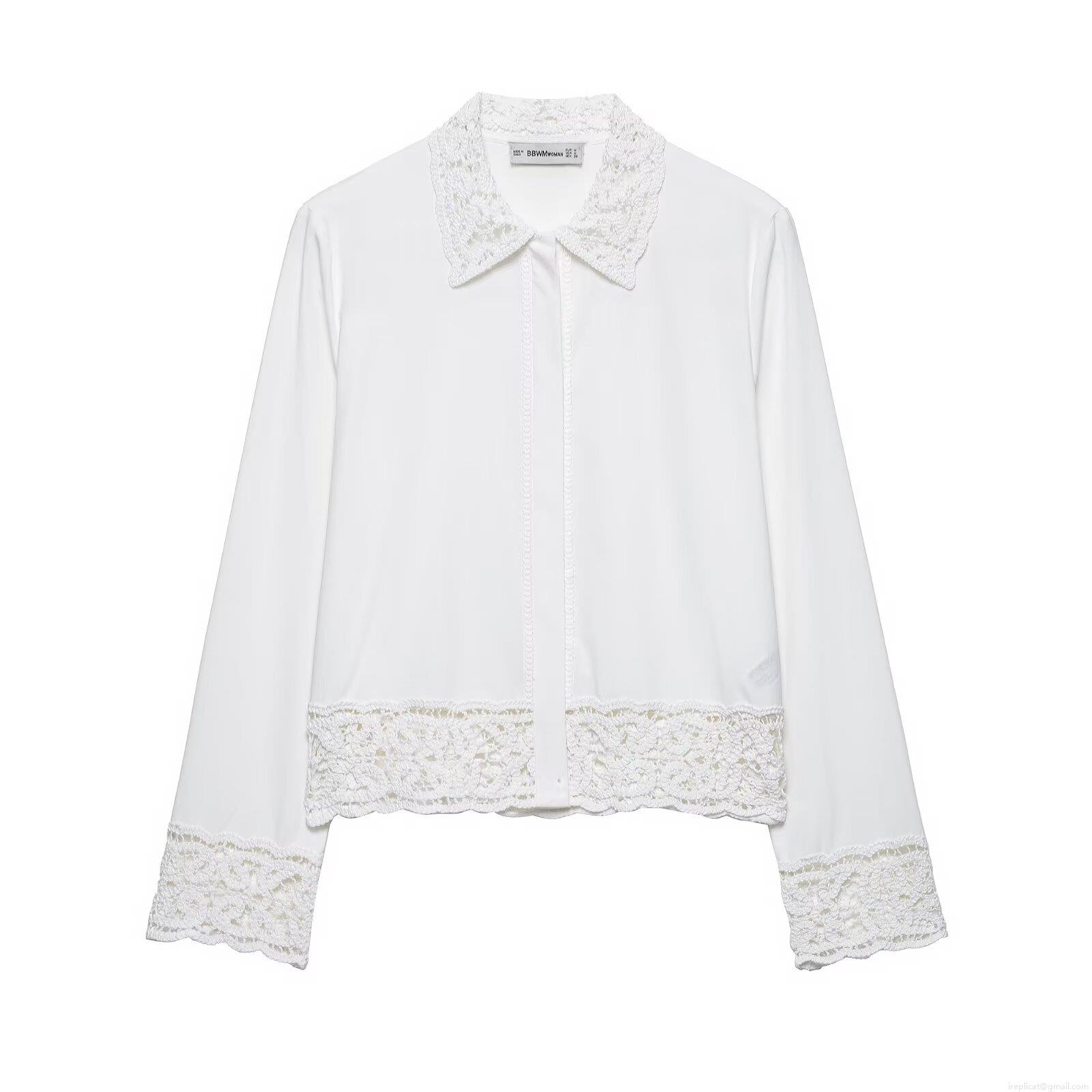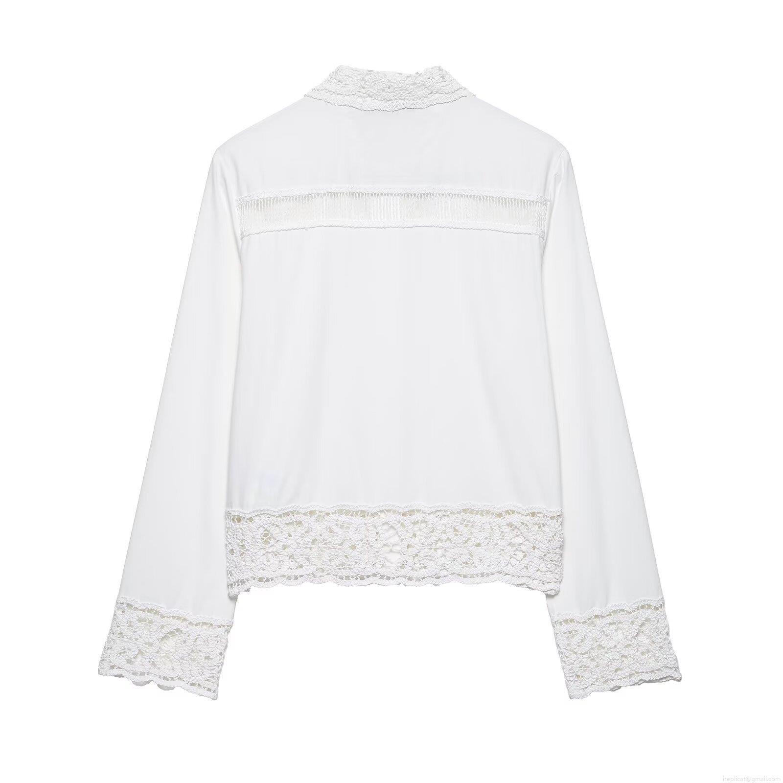 • Women's Polyester Lace Two Piece Set Long Sleeve Button Down Shirt And High Waist Shorts Elegant Summer Vacation Casual Streetwear Outfit