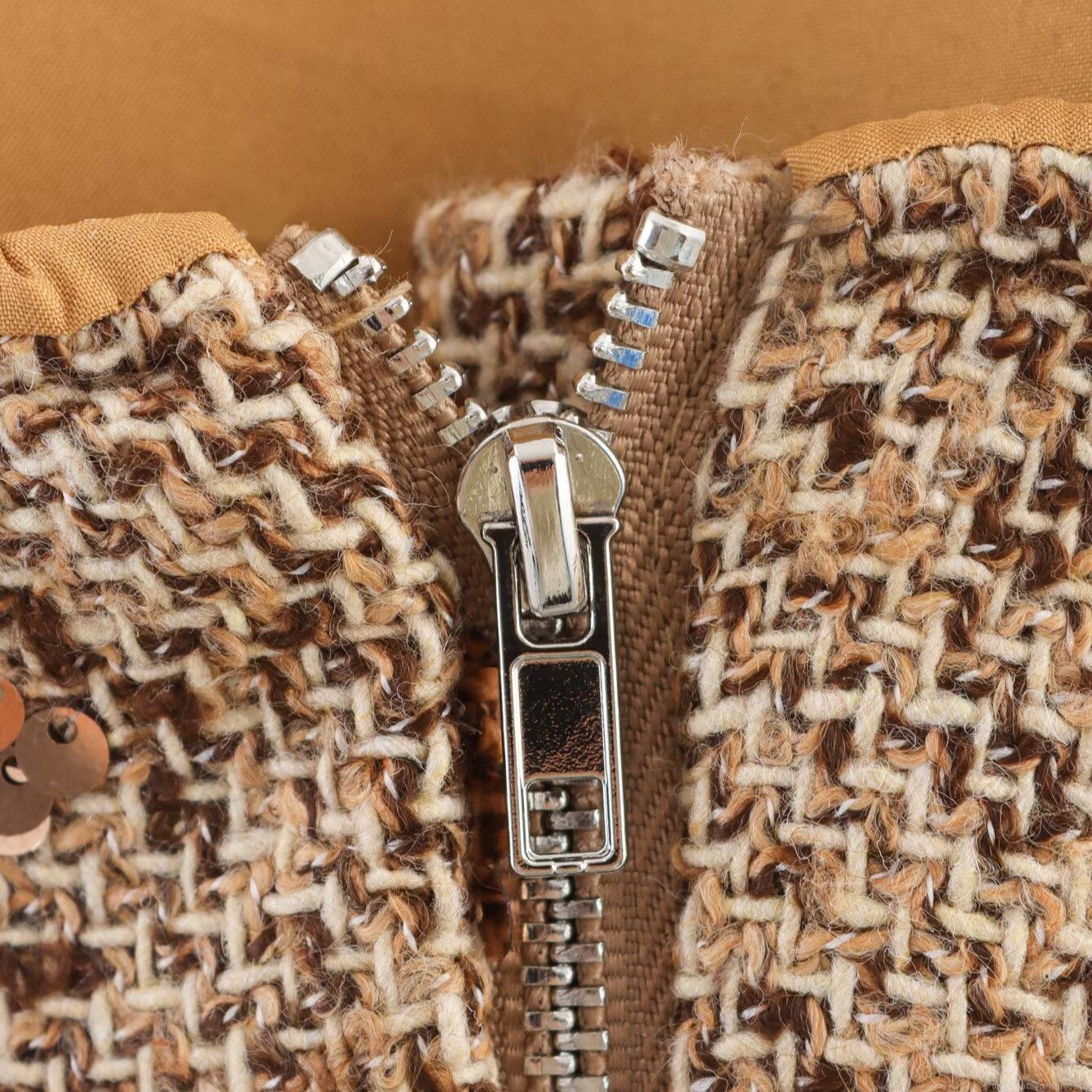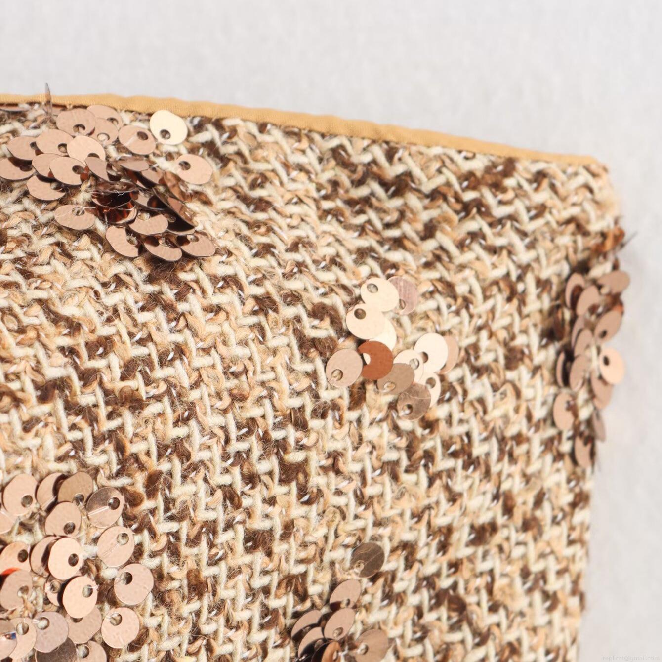 Solid Color, Tweed, Strapless, Sequin Decoration, Double-breasted, Woven Texture, Gold Buttons