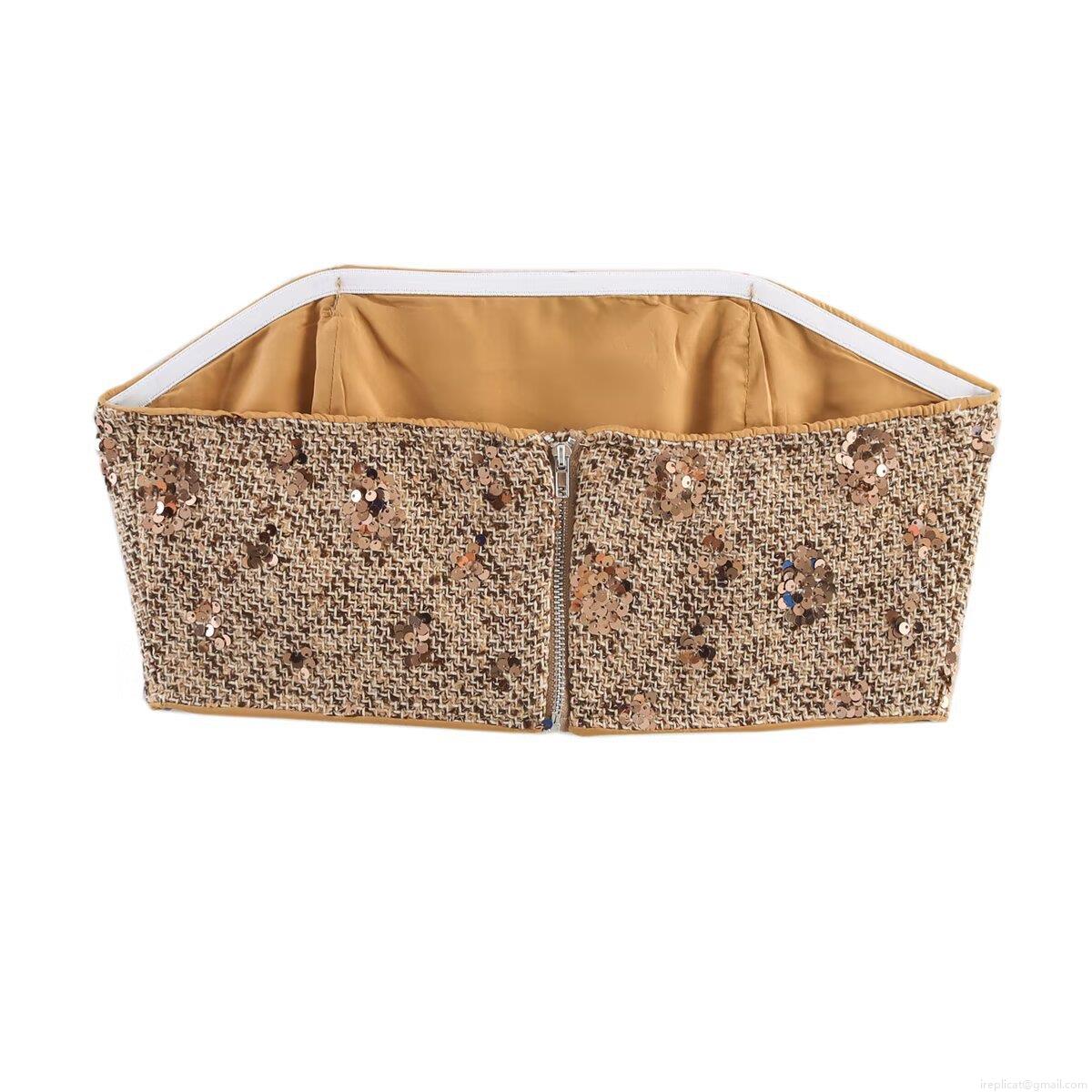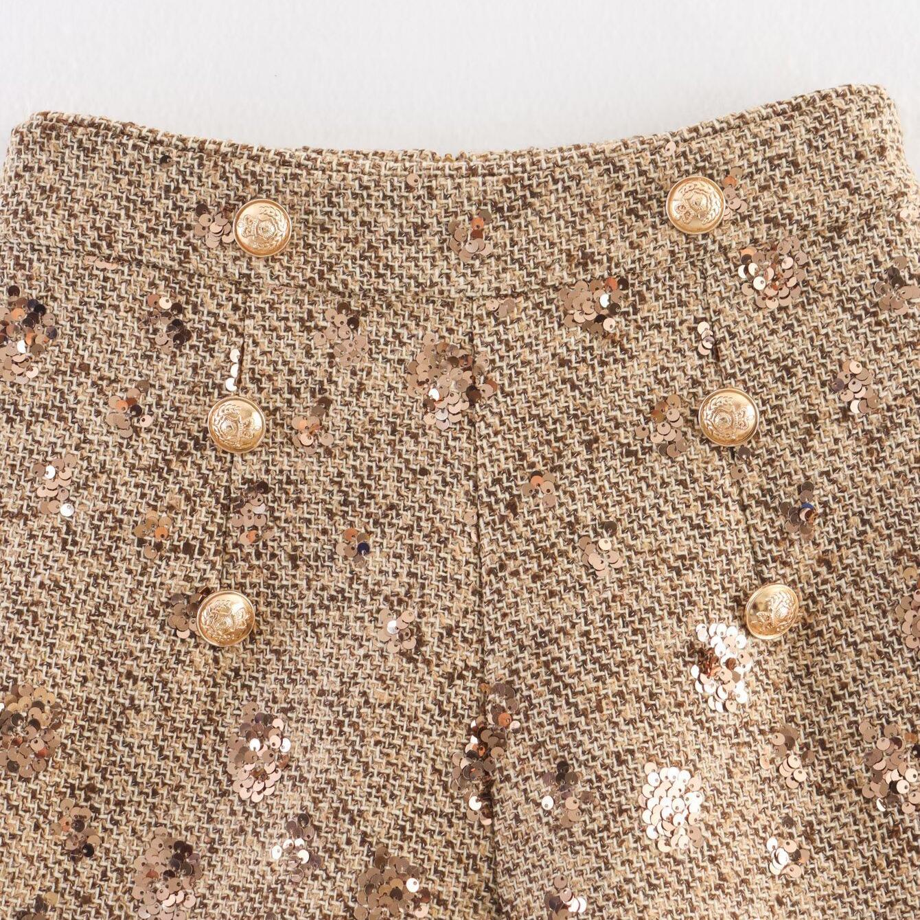 • Women's Sexy Sequin Tweed Two Piece Set Strapless Tube Top And High Waist Shorts Co-ords Set Elegant Party Outfits With Gold Buttons