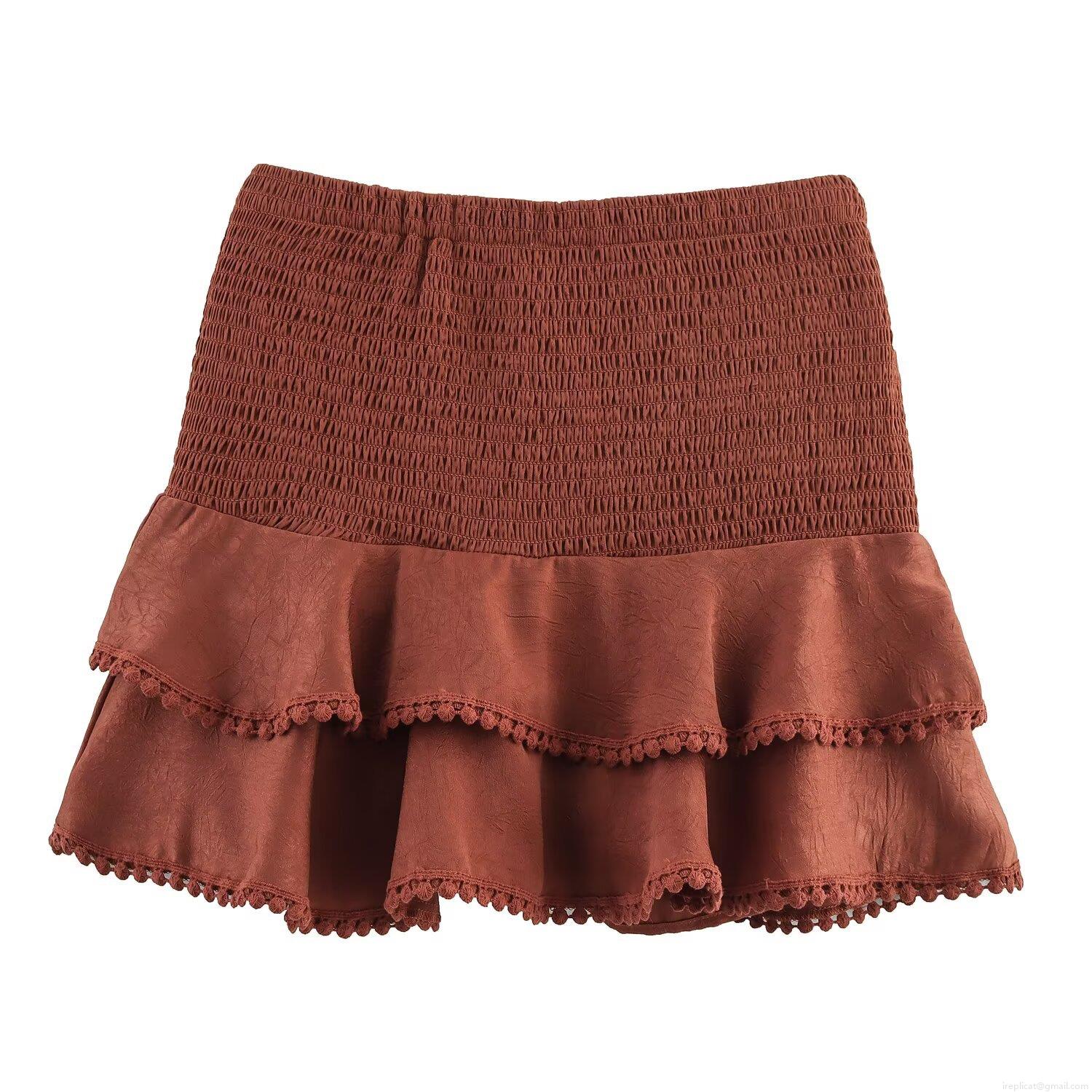 • Women's Sexy Two Piece Set Ruffle V-Neck Cami Top and Smocked Skort Solid Color 100% Polyester Summer Vacation Outfits Streetwear for Women