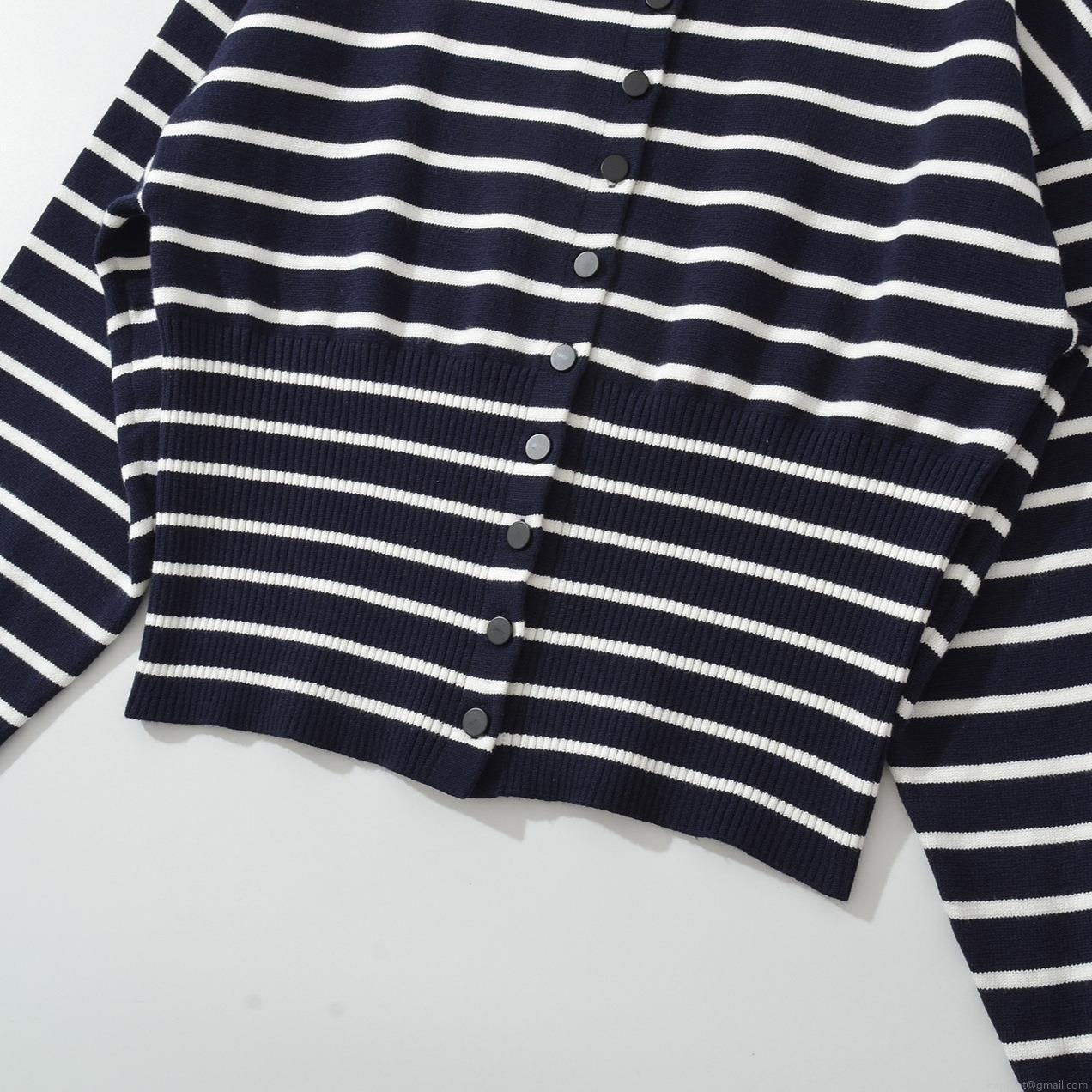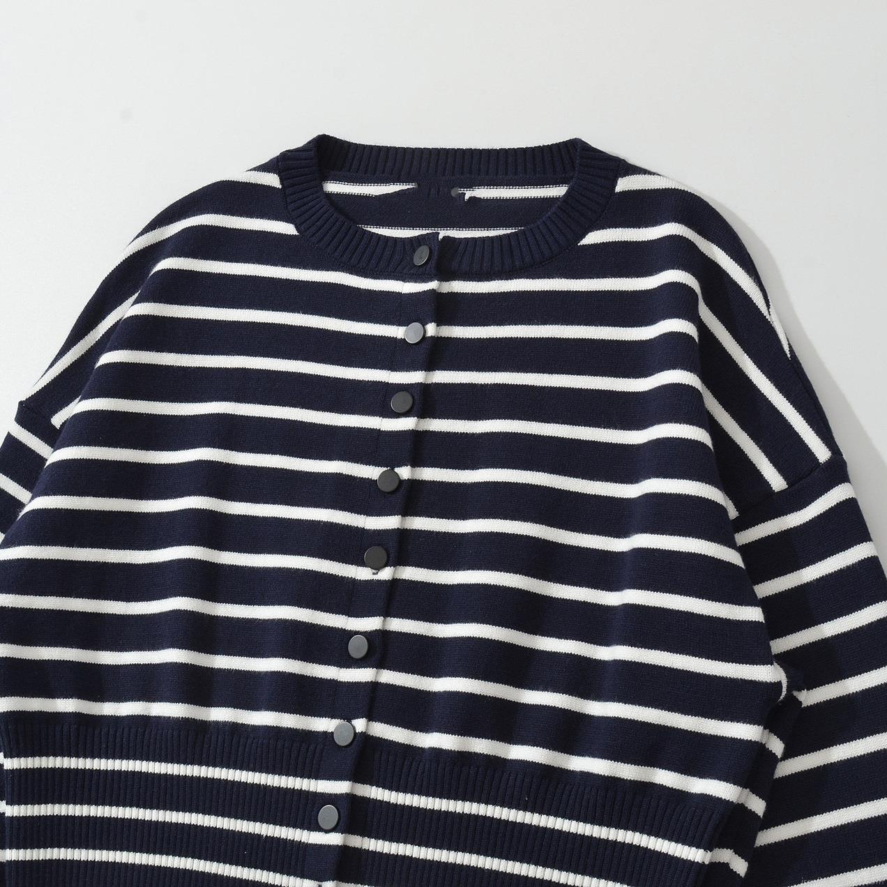 Women's Striped Knit Shorts Set Two Piece Casual Long Sleeve Button Down Cardigan Top And Scalloped Hem Shorts Viscose Blend Lounge Set