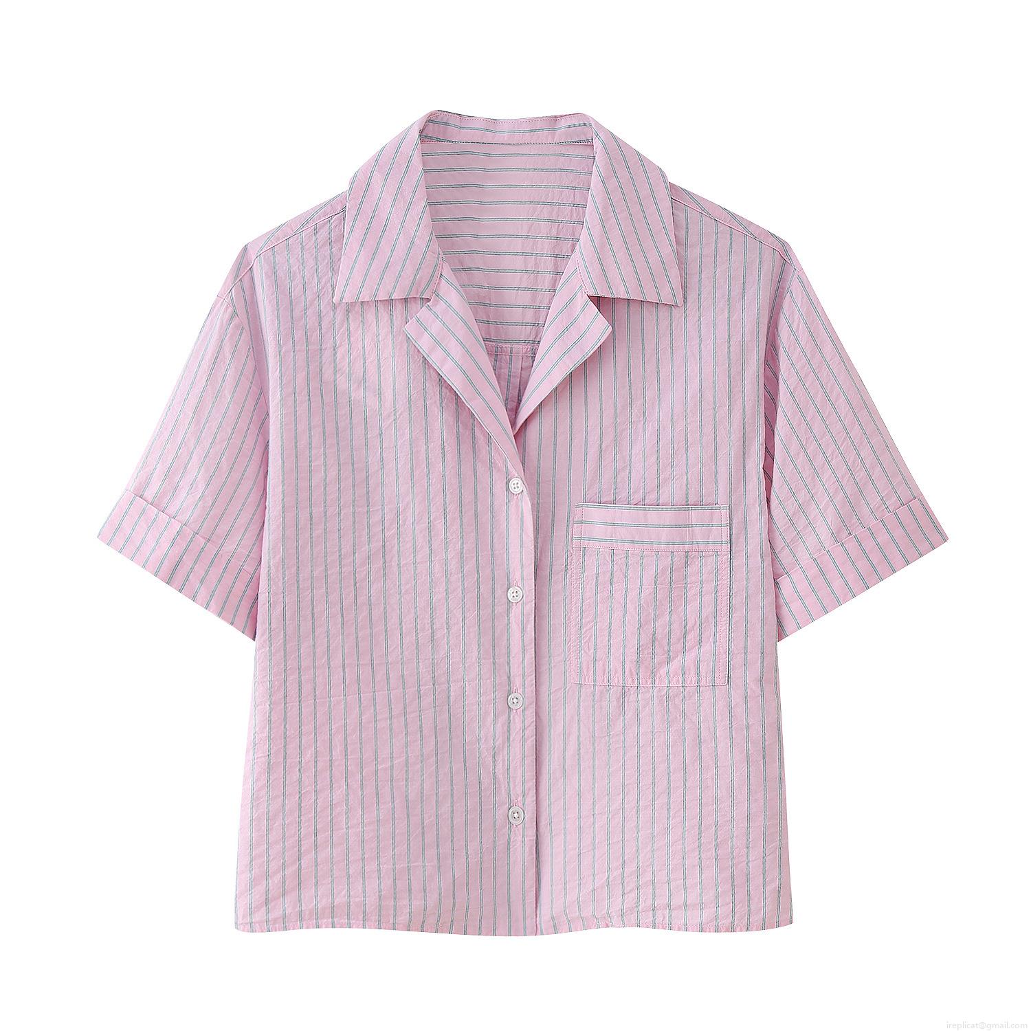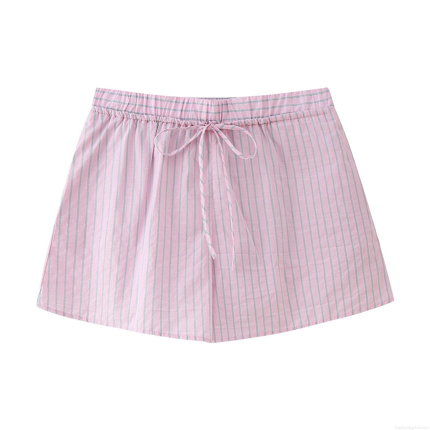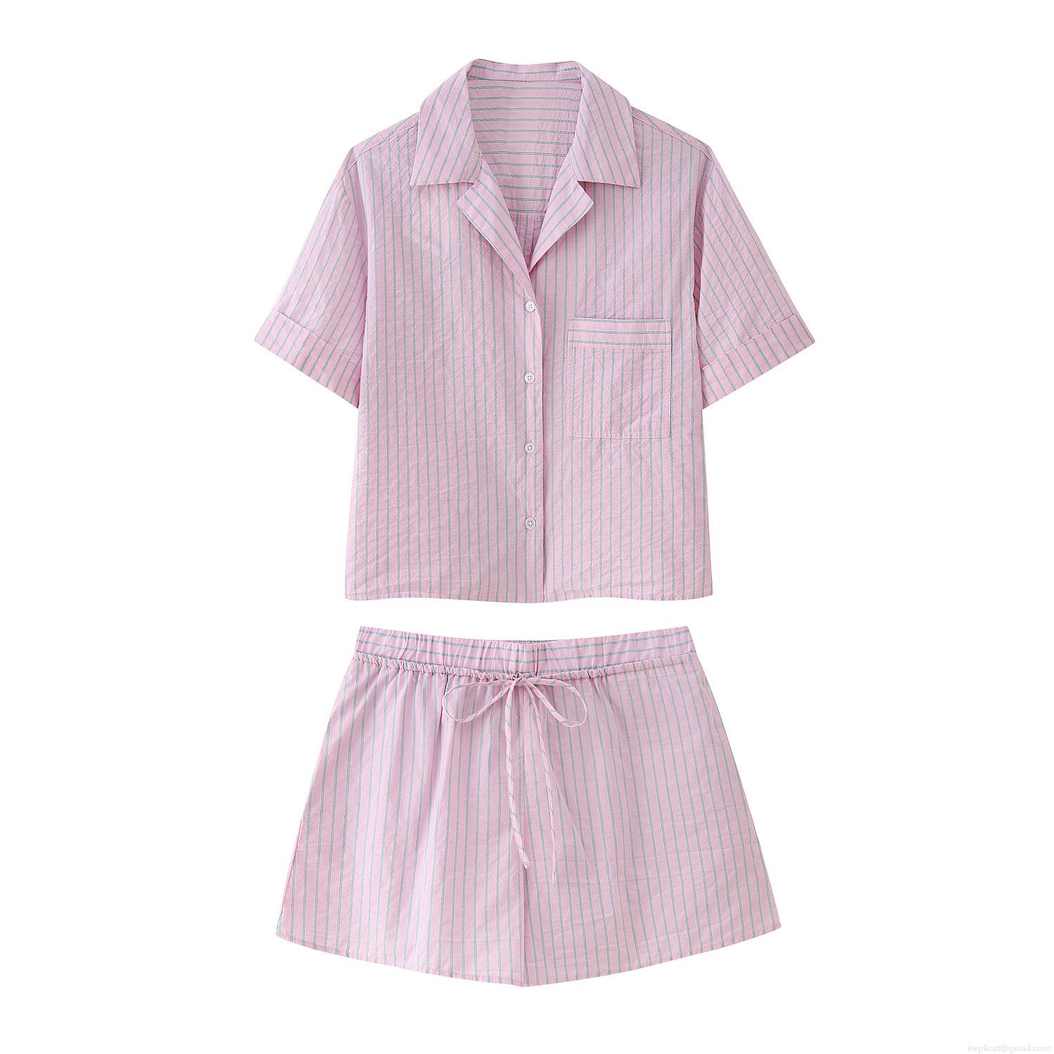 • Women's Striped Shorts Set Two-Piece Pink White Polyester Casual Short Sleeve Shirt Elastic Waist Tie-Up Shorts Sweet Loungewear For Women