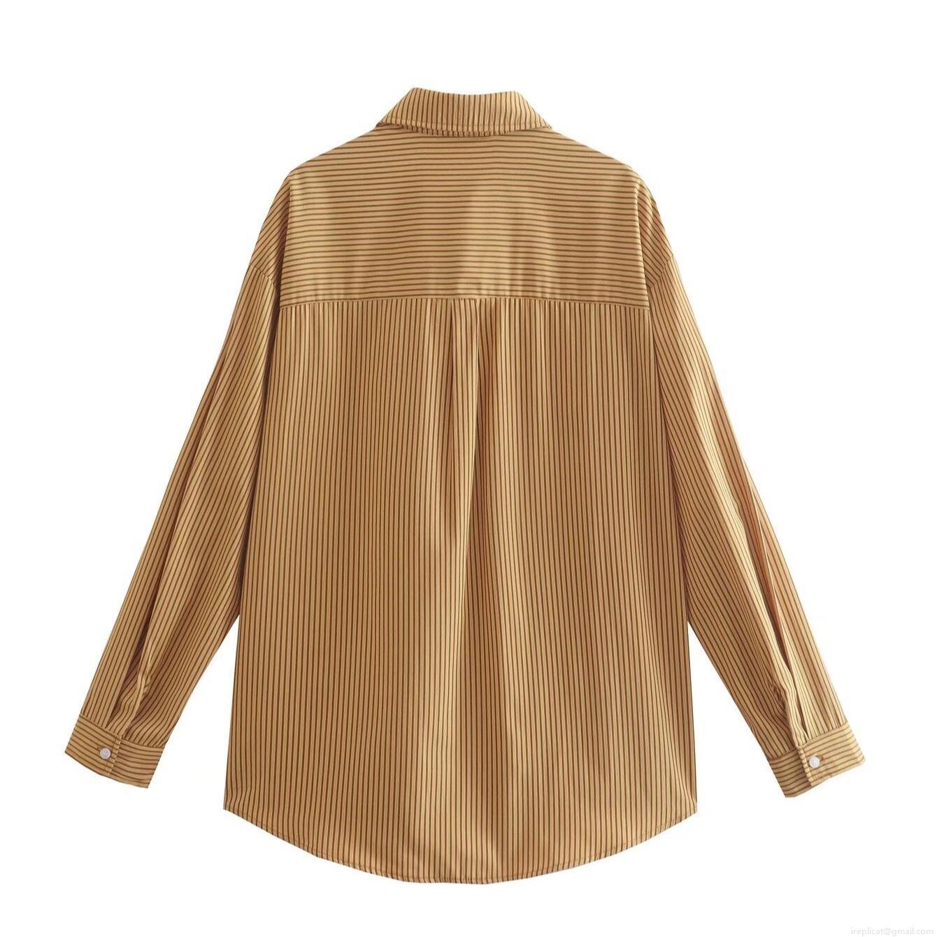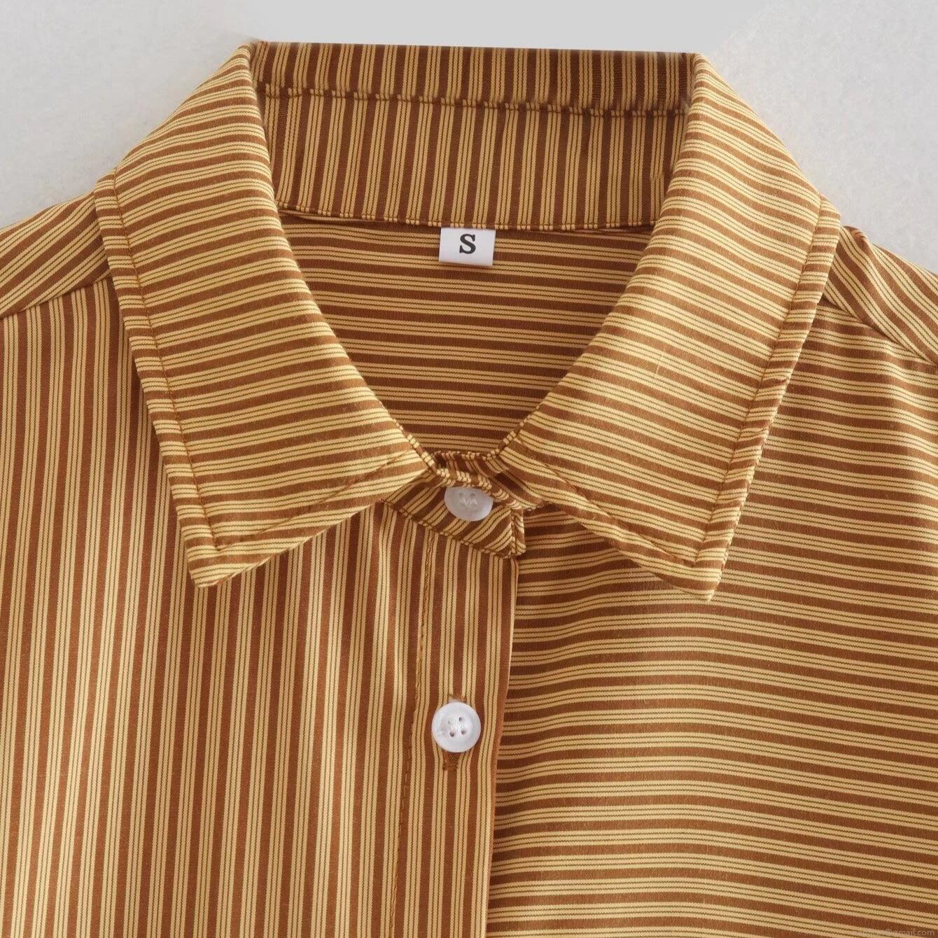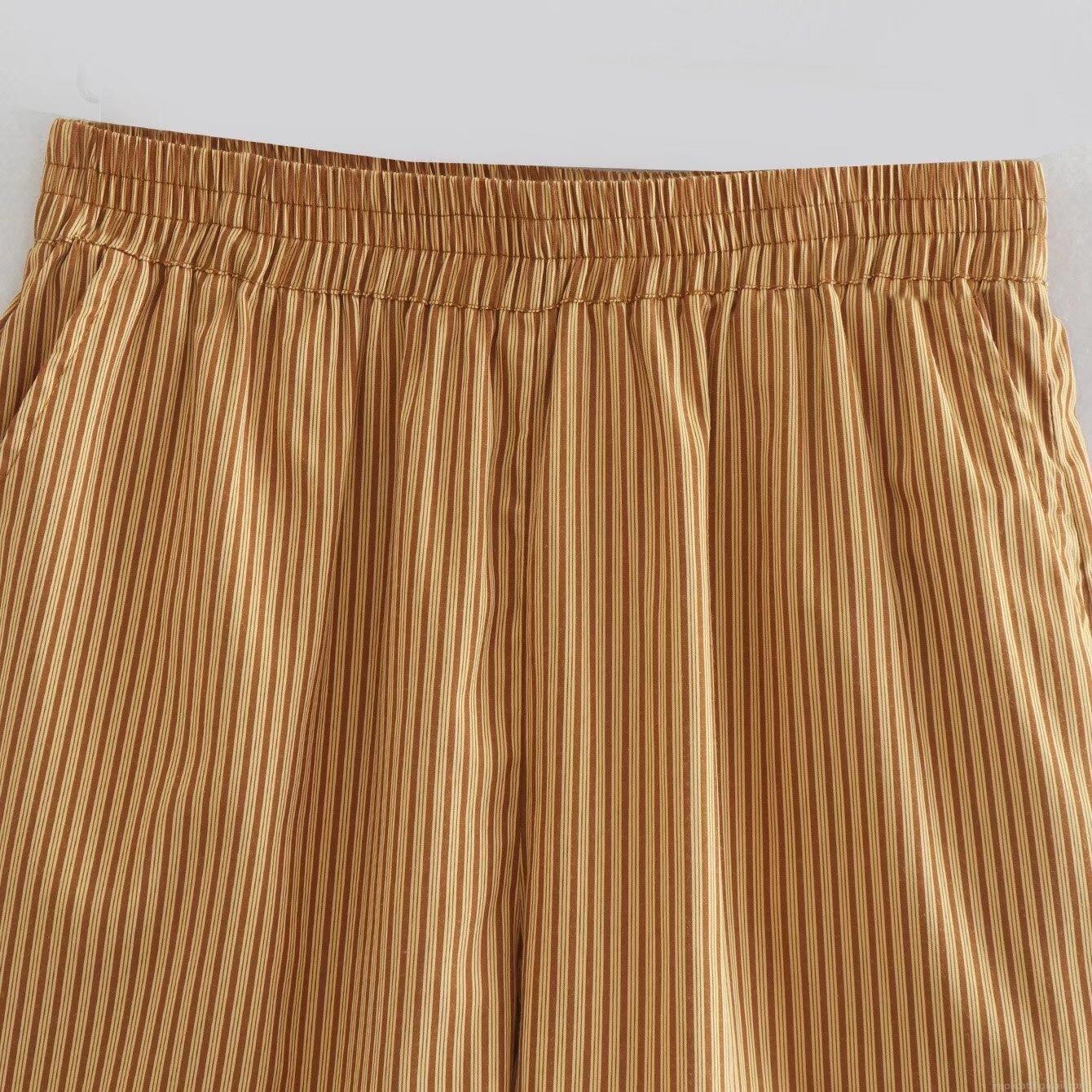 • Women's Striped Two Piece Casual Set Long Sleeve Button Up Shirt With Pocket And Elastic Waist Wide Leg Shorts Outfit Loose Polyester Streetwear Summer Lounge Set