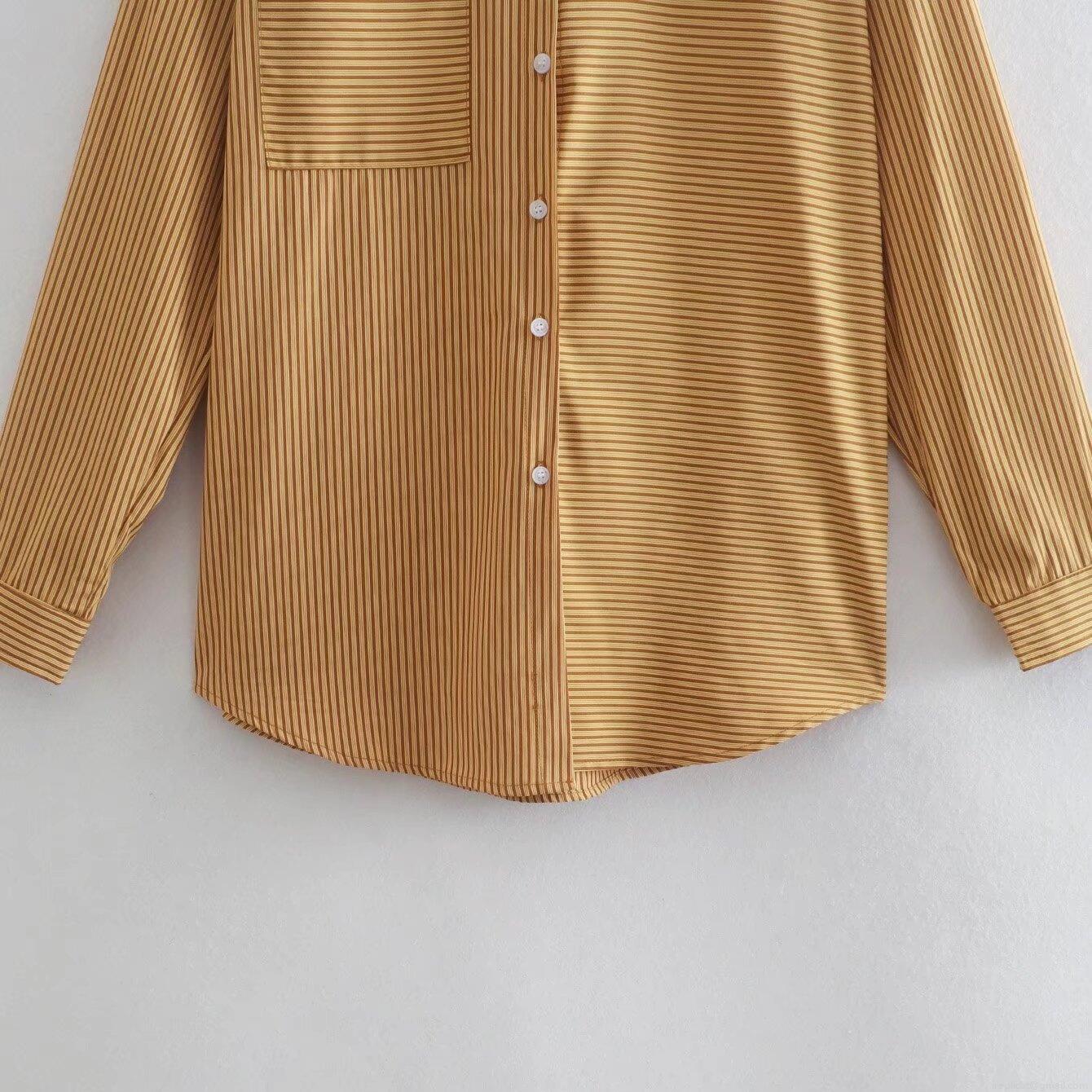 Women's Striped Two Piece Casual Set Long Sleeve Button Up Shirt With Pocket And Elastic Waist Wide Leg Shorts Outfit Loose Polyester Streetwear Summer Lounge Set