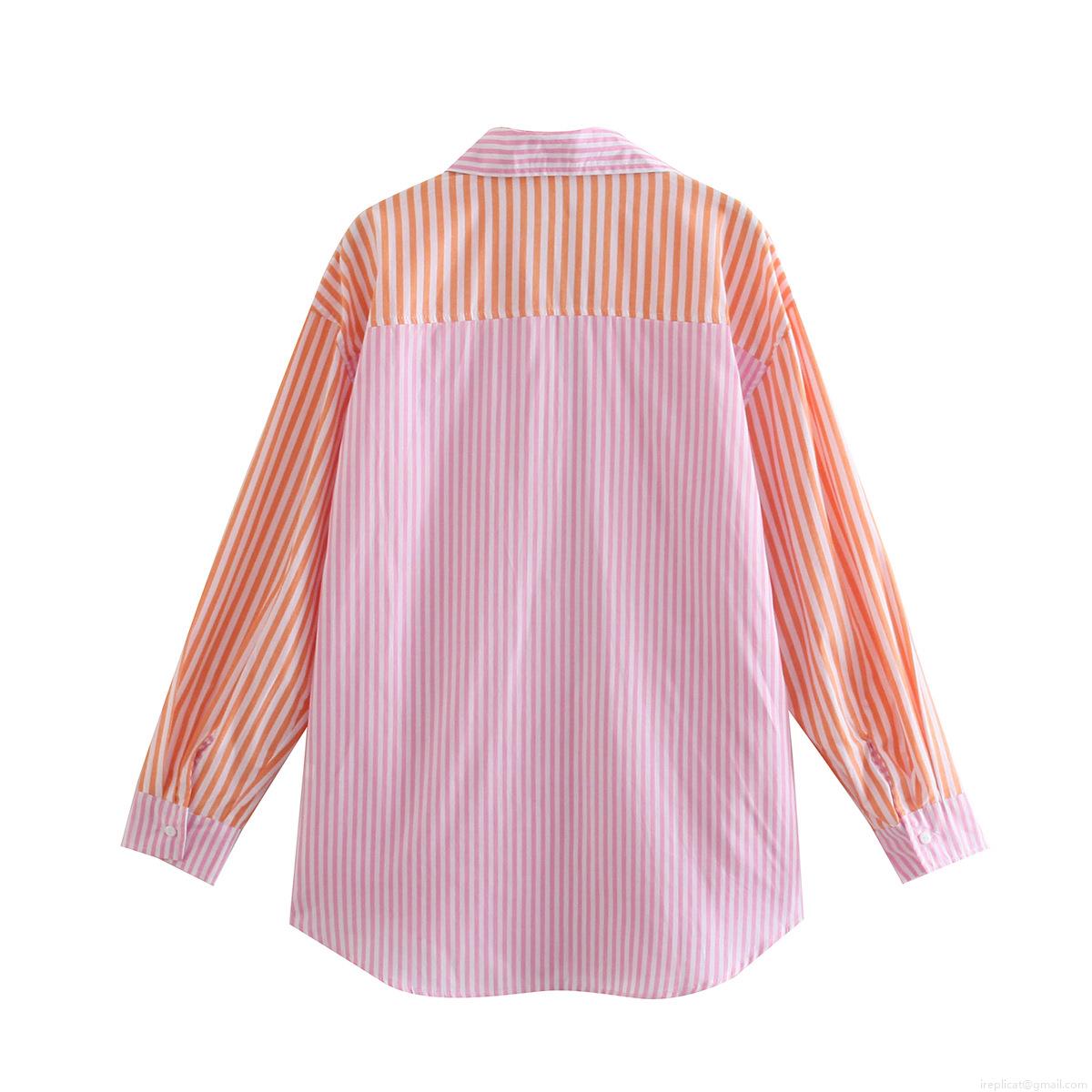 • Women's Striped Two Piece Set 100% Cotton Color Block Button Up Long Sleeve Shirt And Drawstring Shorts Loungewear Suit For Summer Vacation Casual Outfit