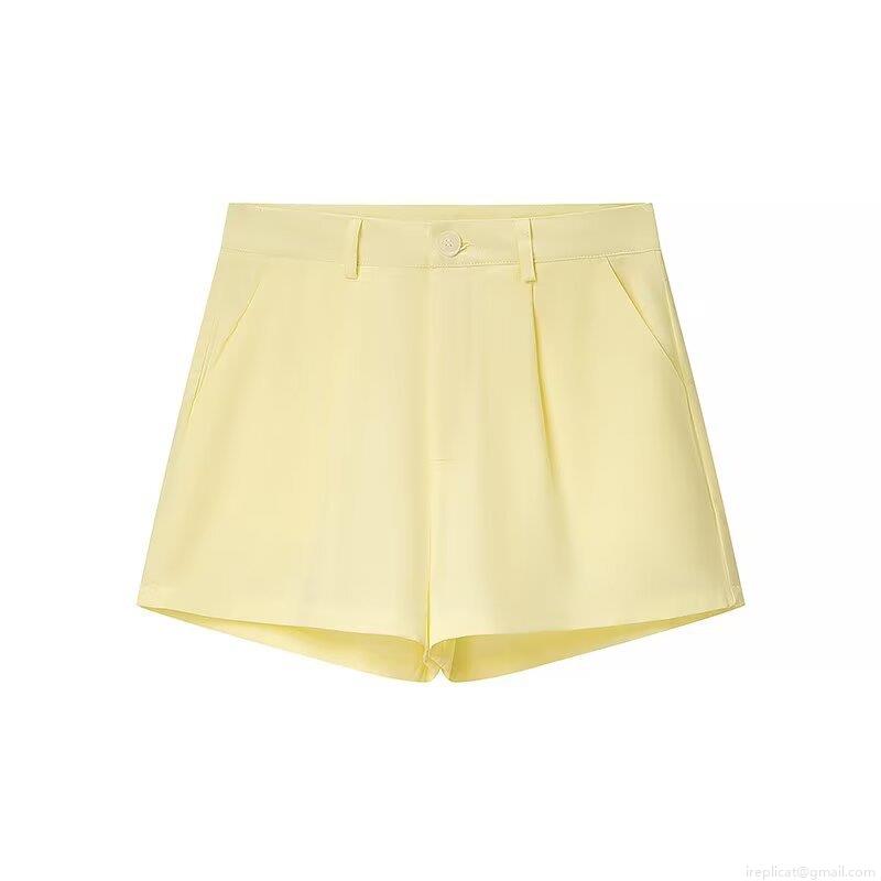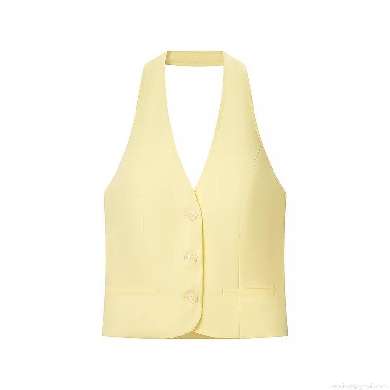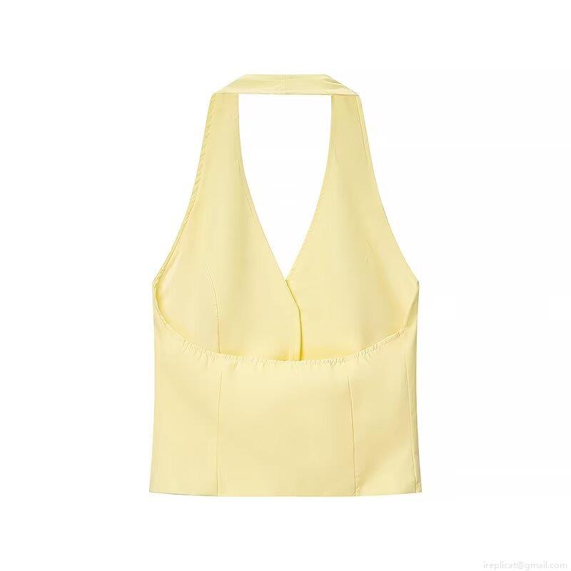 • Women's Summer 2 Piece Set 100% Polyester Halter Backless Vest And High Waist Shorts Chic Streetwear Solid Pale Yellow Outfit