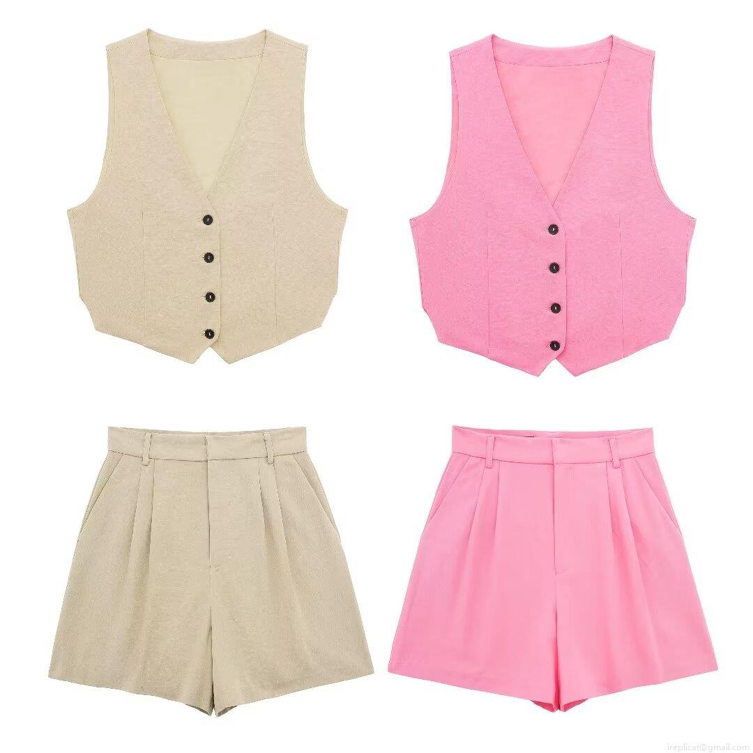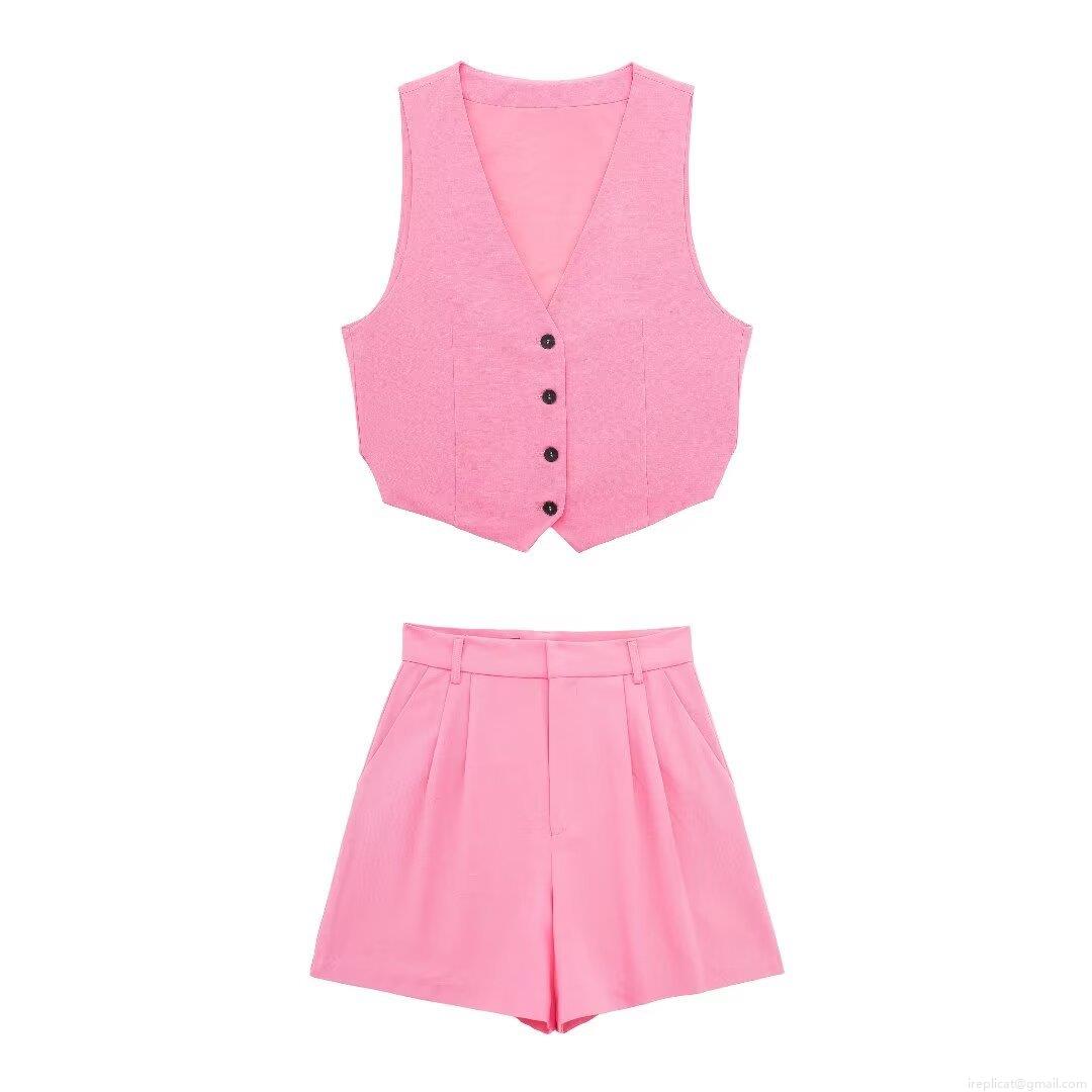 • Women's Summer 2-Piece Outfit Set Polyester V-Neck Single-Breasted Vest and High Waist Wide Leg Pleated Shorts Streetwear Casual Matching Set for Women