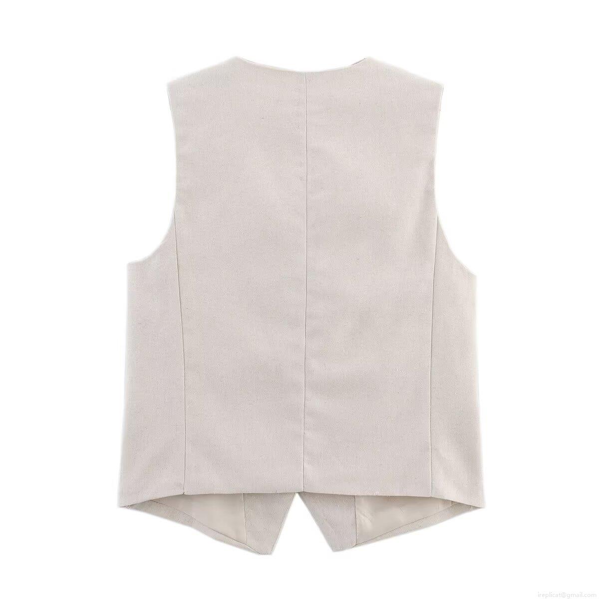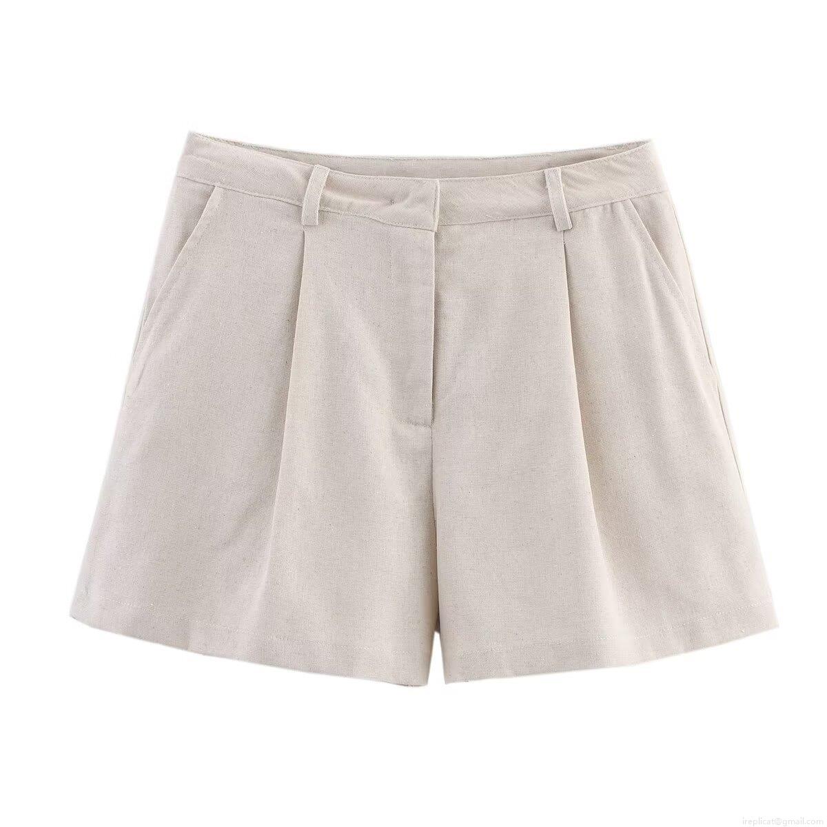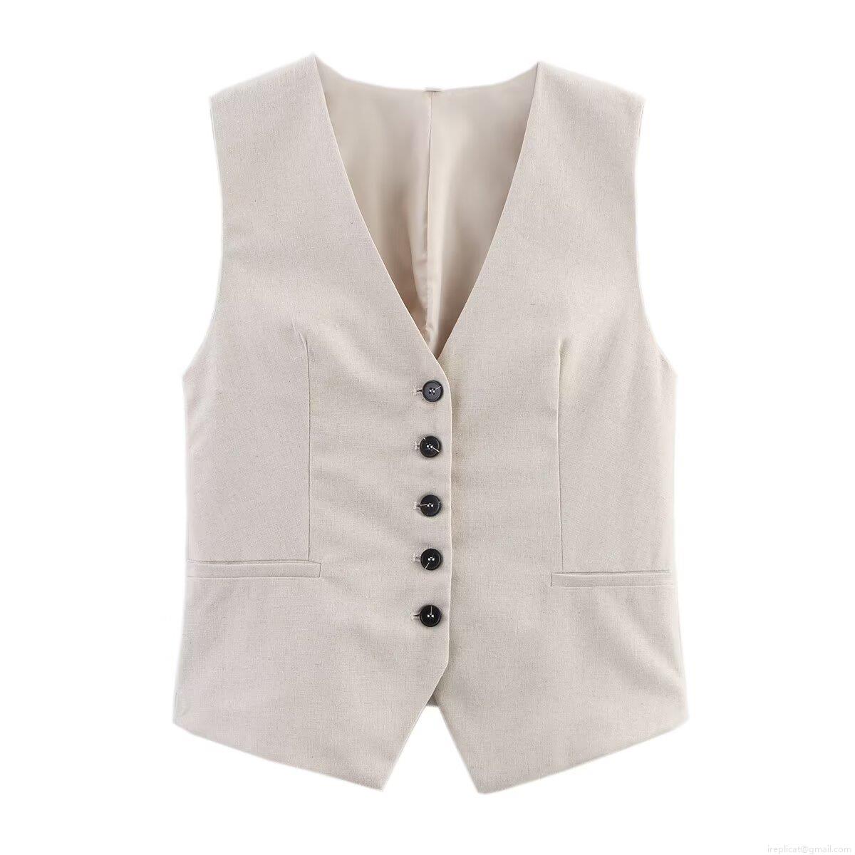• Women's Summer Casual Two Piece Outfits Linen Look Polyester V Neck Single Breasted Vest And High Waist Wide Leg Shorts Set Solid Color Sleeveless Top Suits