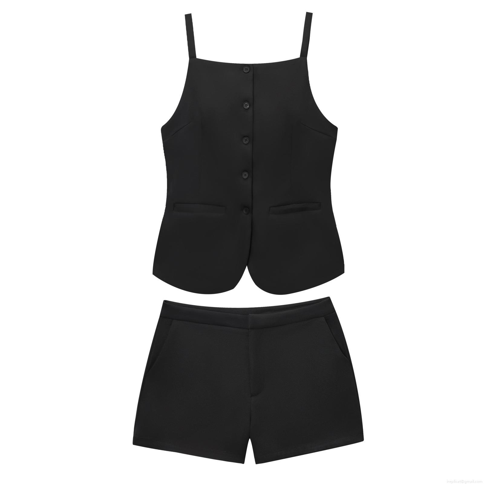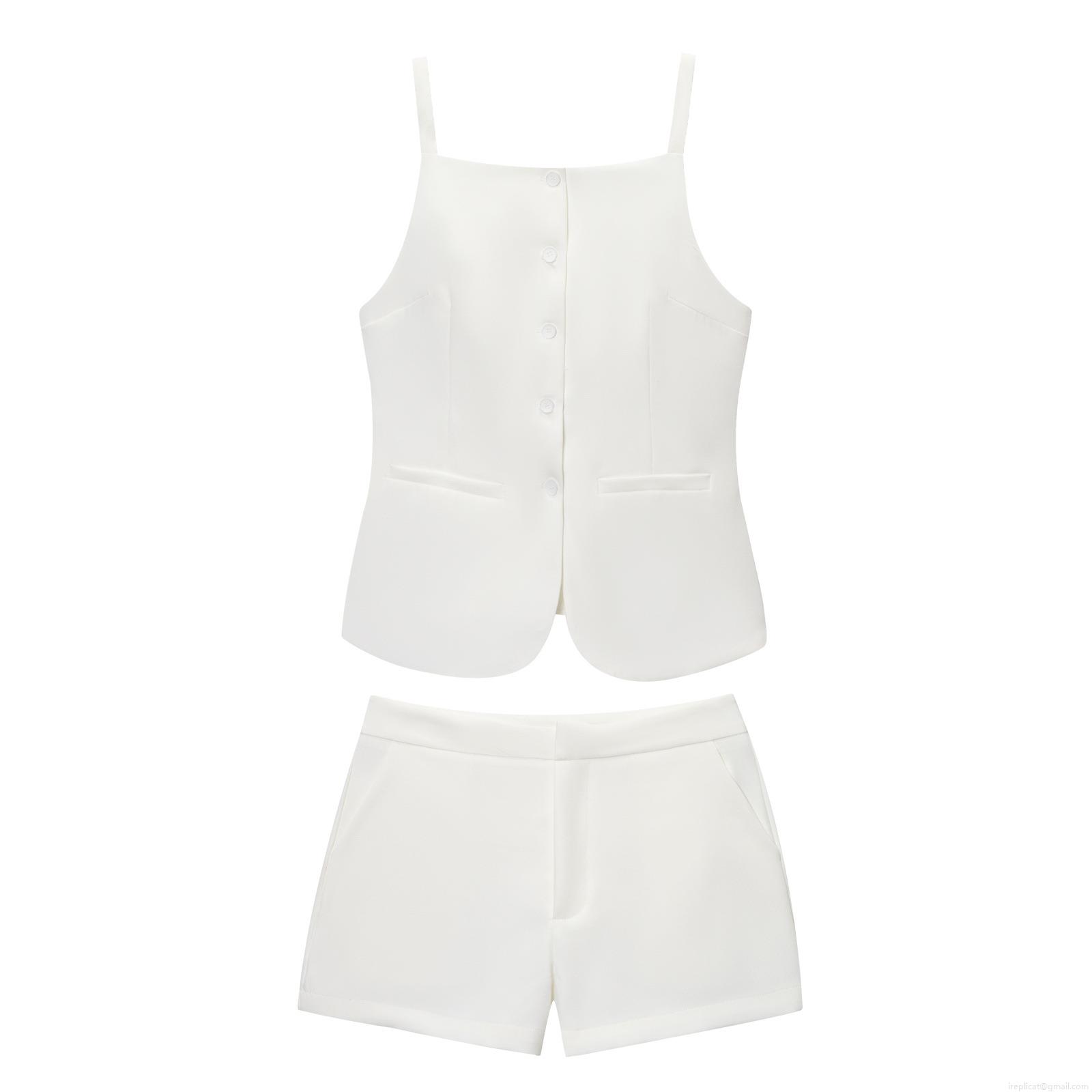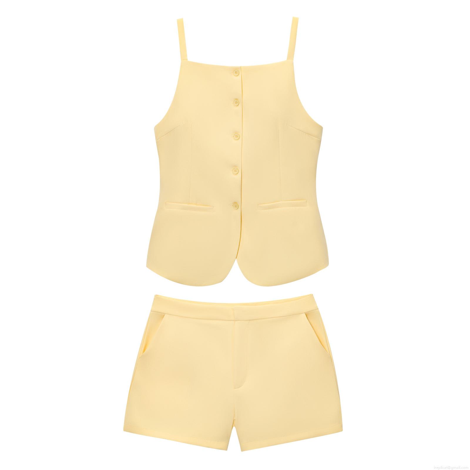 • Women's Summer Casual Two Piece Shorts Set Button Down Sleeveless Vest Top and High Waist Shorts Polyester Streetwear Solid Color Outfit