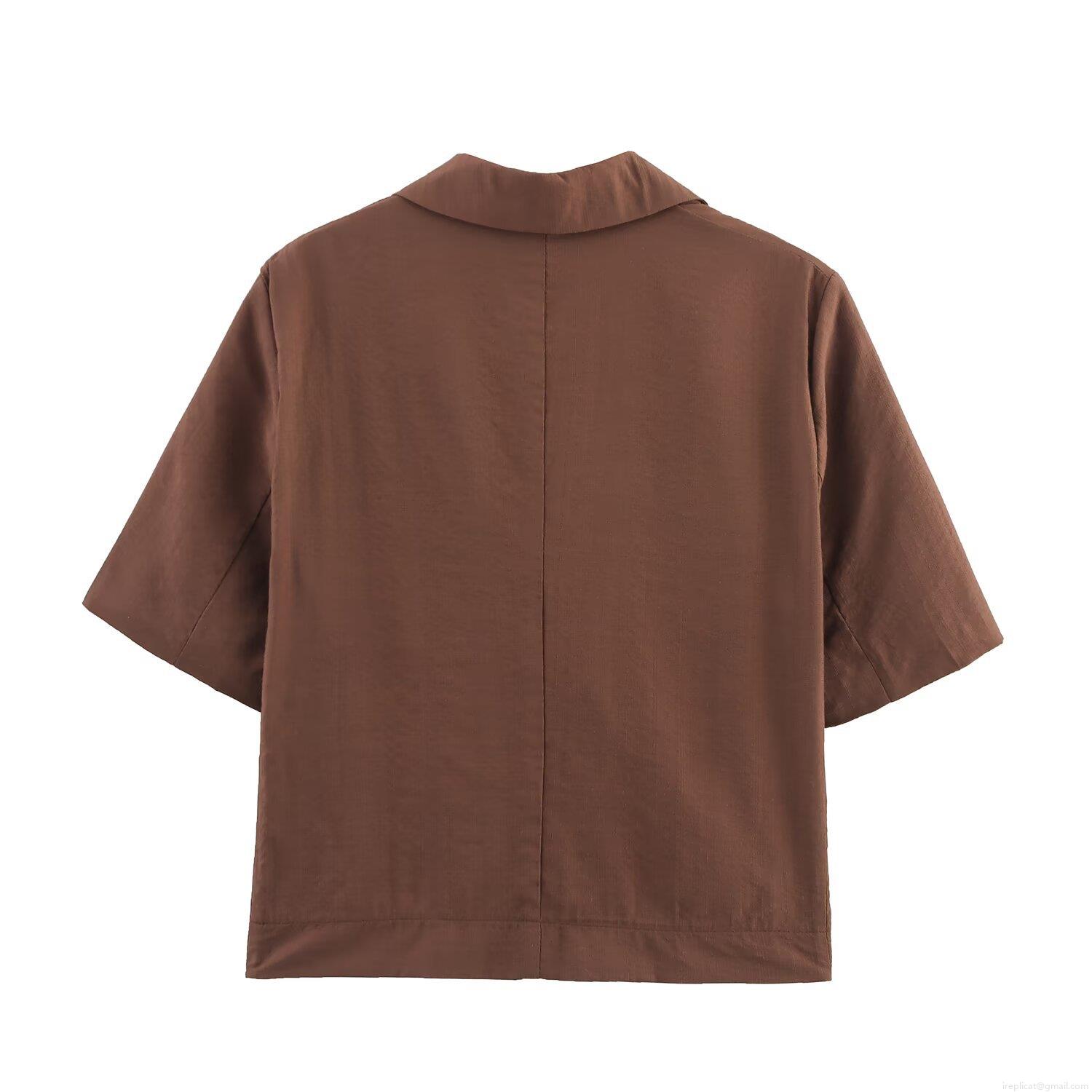 • Women's Summer Casual Two-Piece Set Short Sleeve Notch Lapel Button Up Shirt And Beaded Drawstring Waist Shorts Cotton Linen Blend Streetwear Outfit