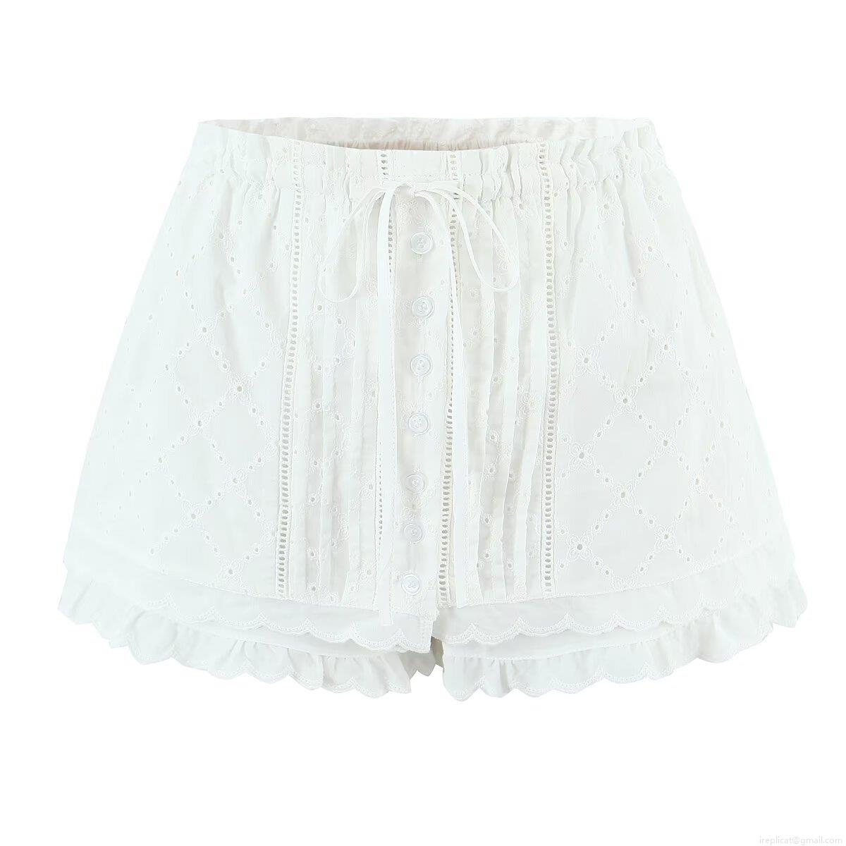 • Women's Summer Eyelet Embroidery Cotton 2-Piece Set European Hollow Out Ruffle Camisole Cropped Top and Drawstring Shorts Casual White Beach Outfit