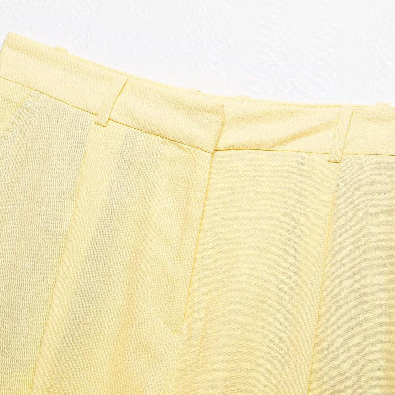 Solid Color, Pleats, Buttons, Single-breasted, High-waisted