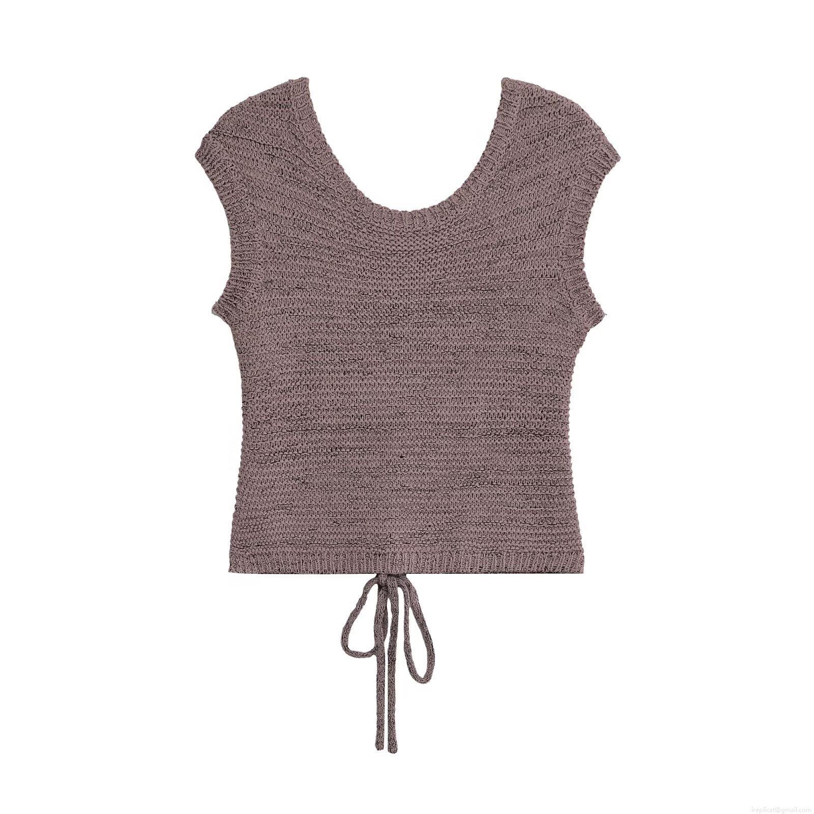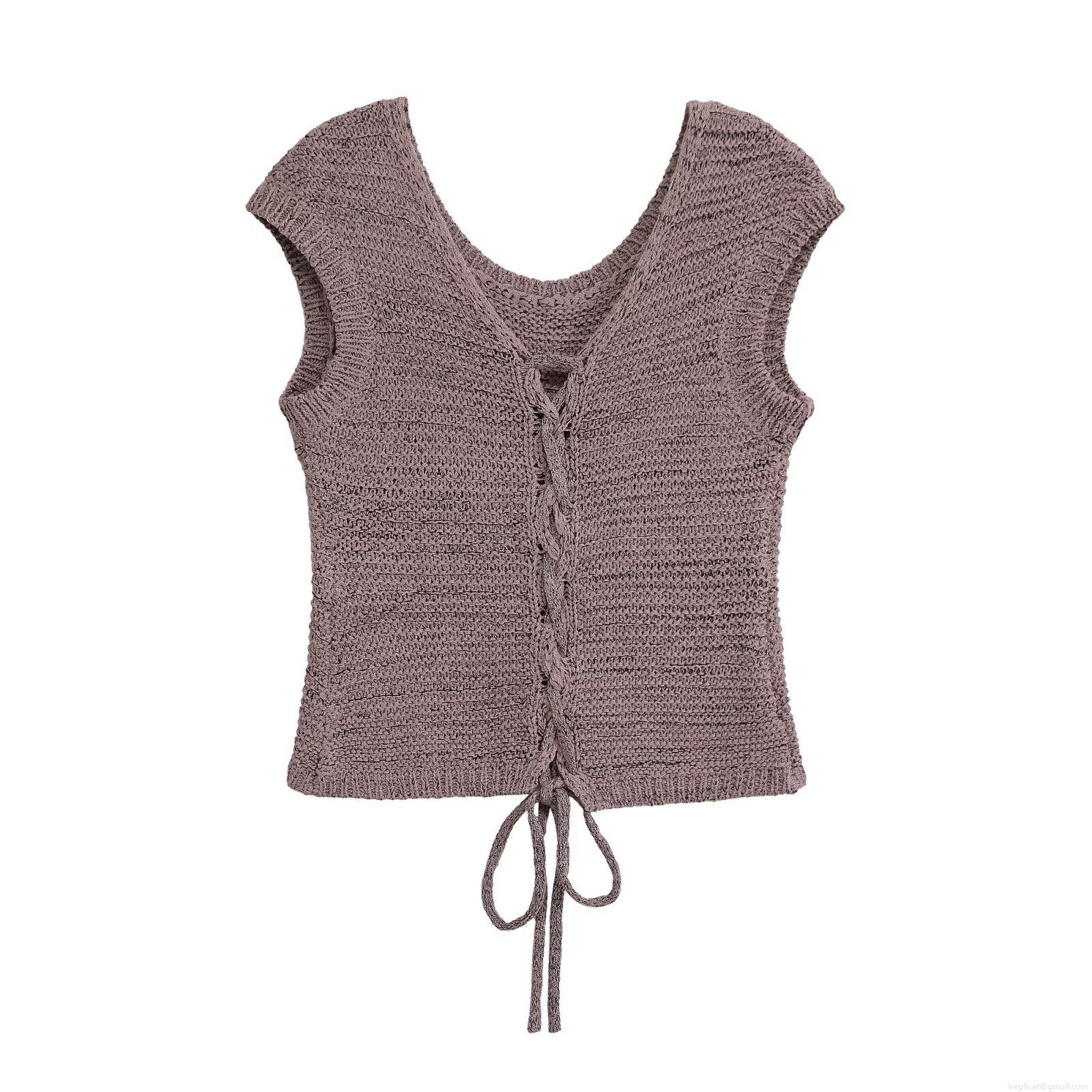 Solid Color, Knitting, Straps, Backless, Crochet Texture