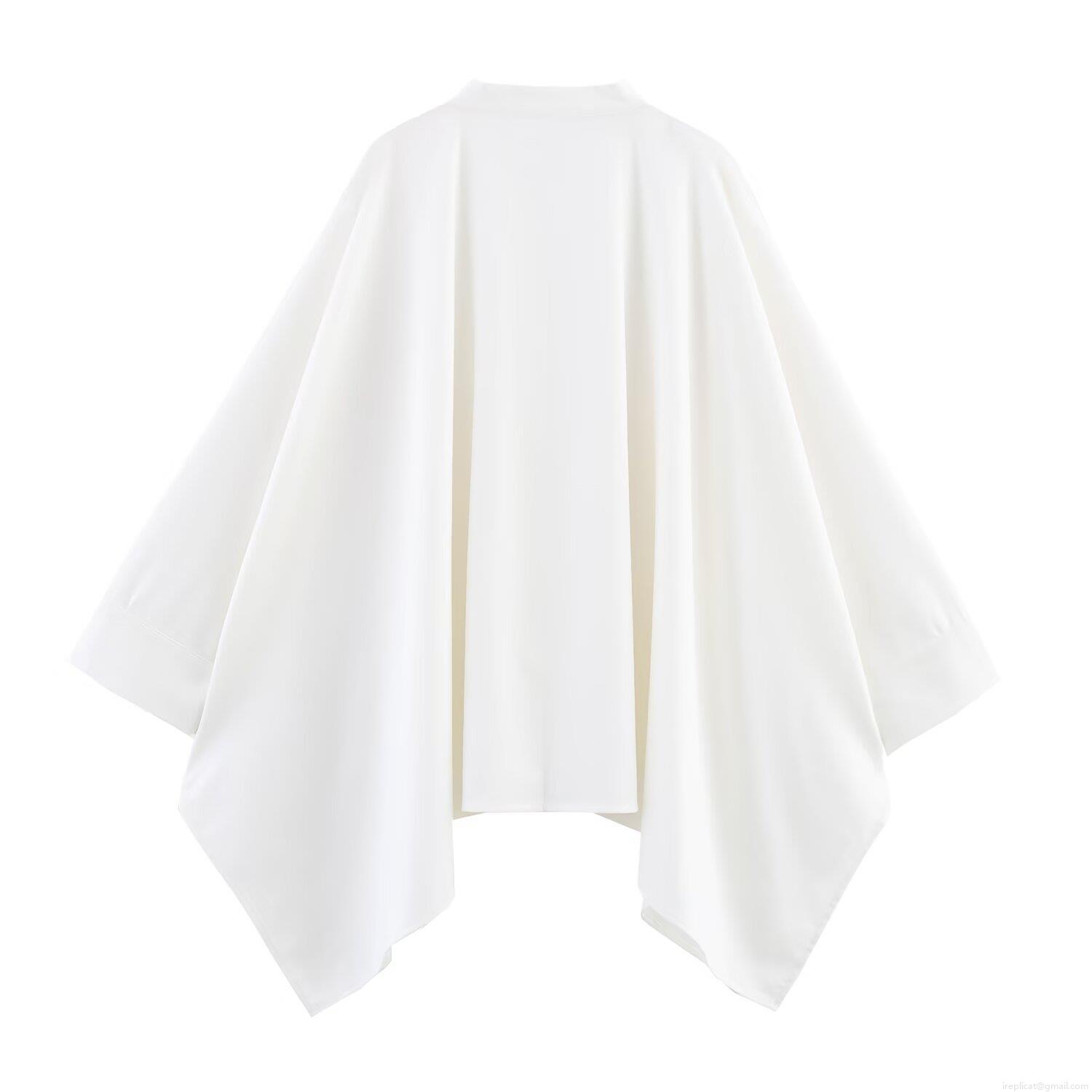 Solid Color, Buttons, Drawstring, Irregular Hem, Batwing Sleeves, Cloak Style