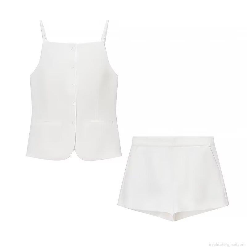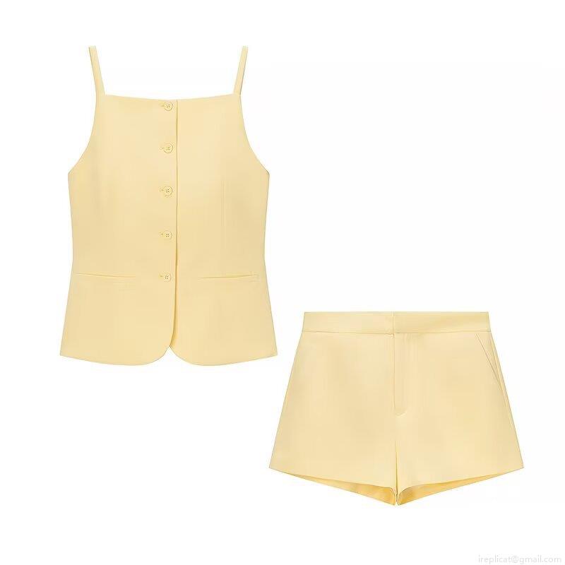 • Women's Summer Two Piece Set Square Neck Sleeveless Button Front Vest And High Waist Shorts Solid Color Polyester Suit Casual Streetwear Outfit For Women