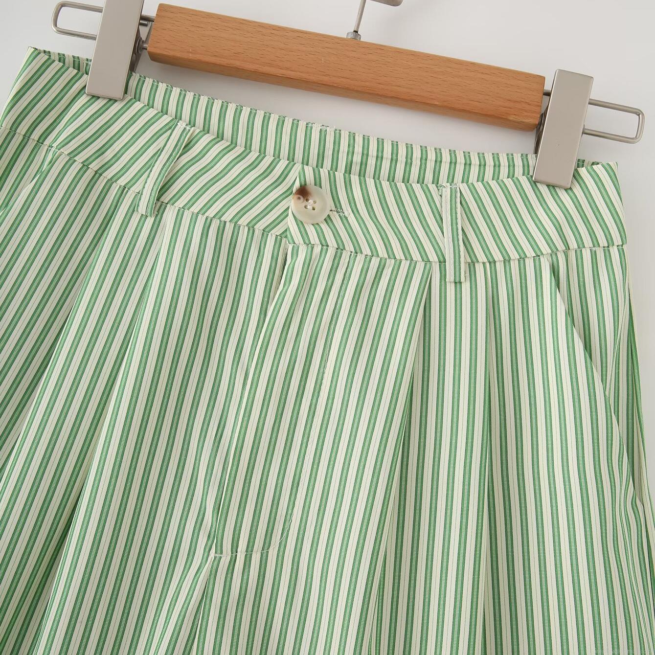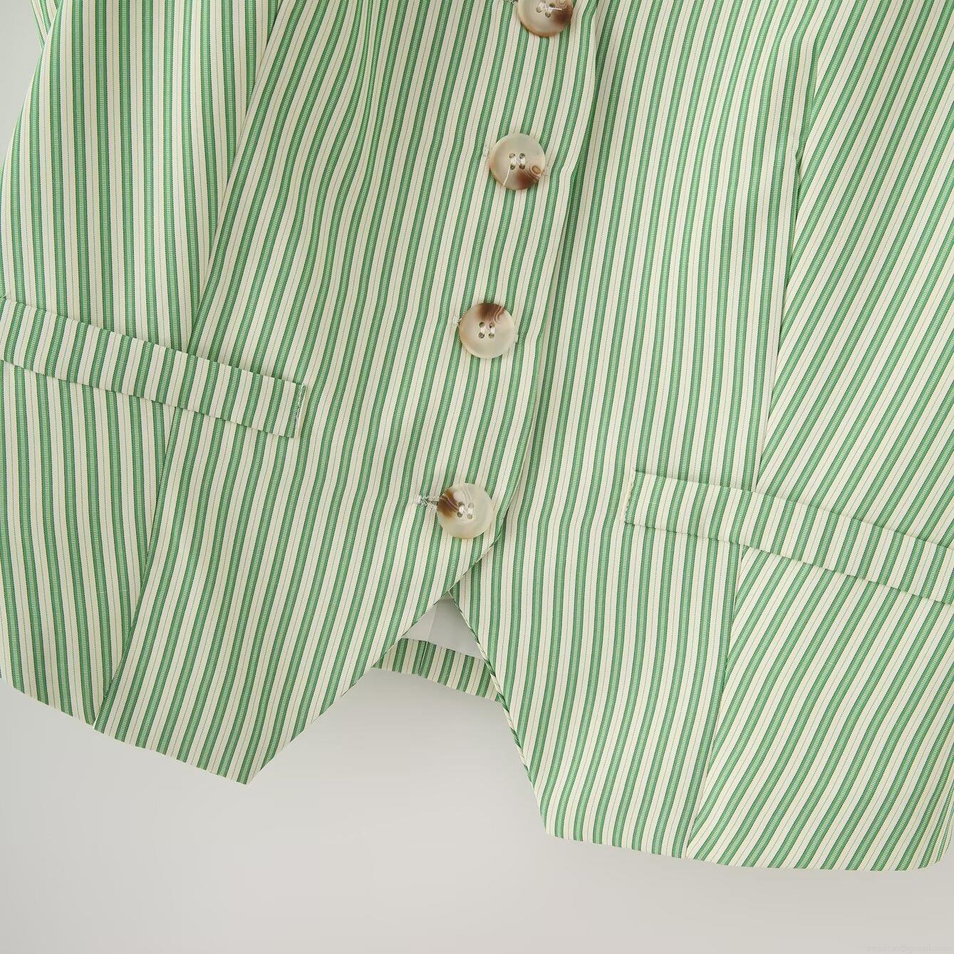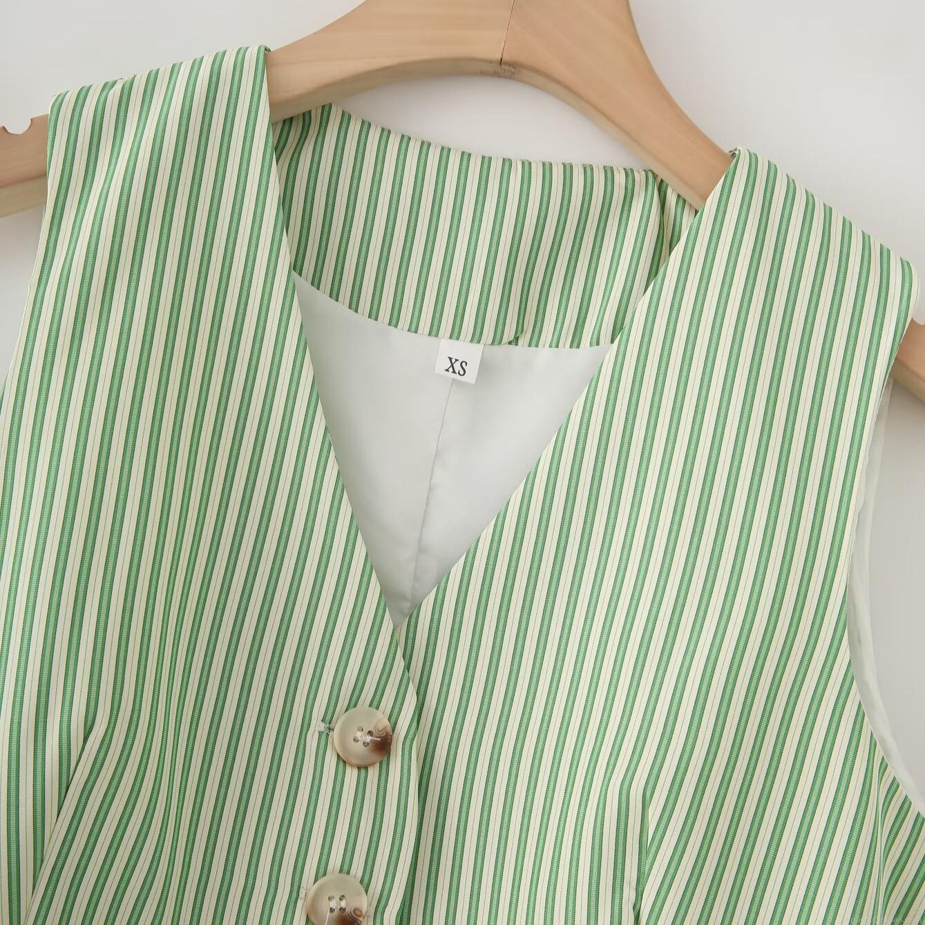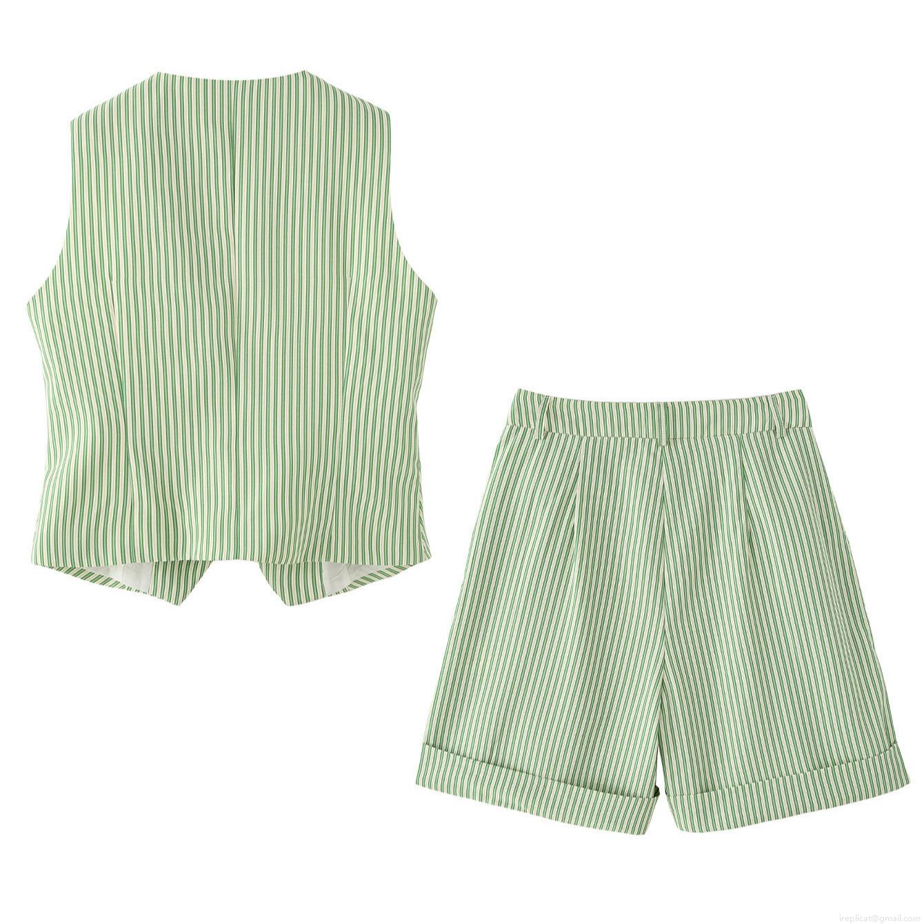 • Women's Summer Vertical Stripe Vest And Shorts Set Casual Sleeveless V-Neck Button Down Waistcoat With Rolled Hem Shorts Two Piece Outfit For Vacation