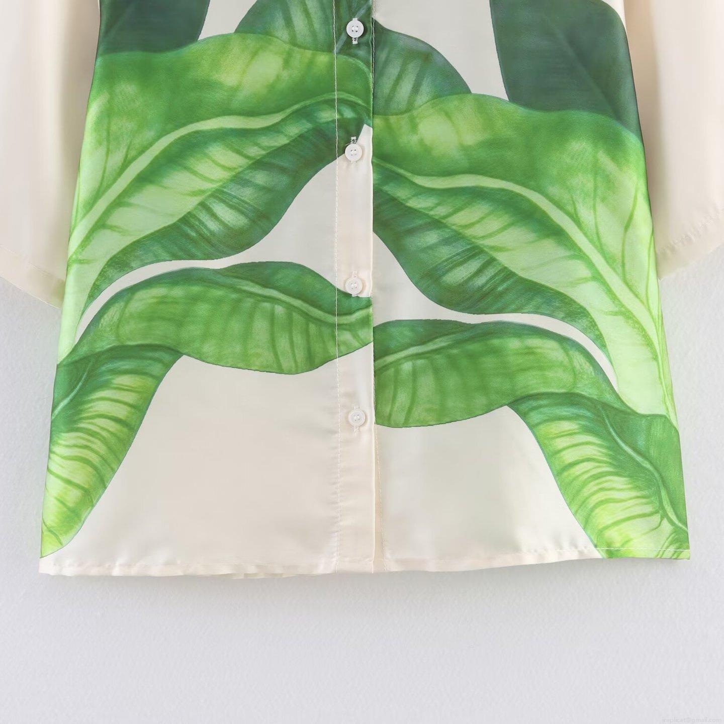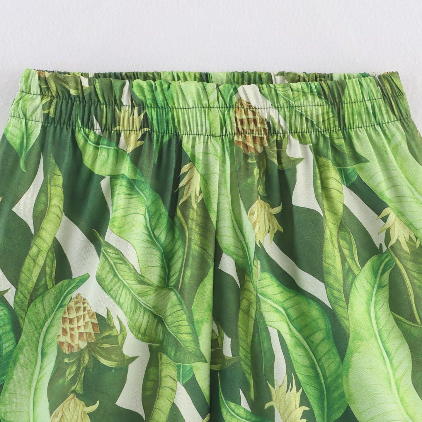 Pineapple, Tropical Plants, Banana Leaves, Printing, Elastic Waistband, Button Decoration
