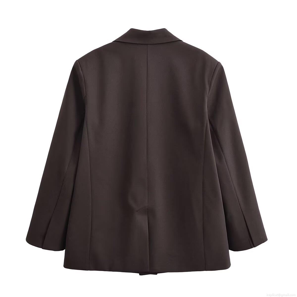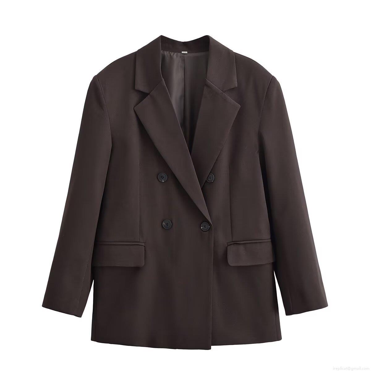 • Women's Two Piece Blazer Set Double Breasted Lapel Long Sleeve Jacket With Belted Shorts Elegant Solid Color Dark Brown Office Lady Autumn Outfit