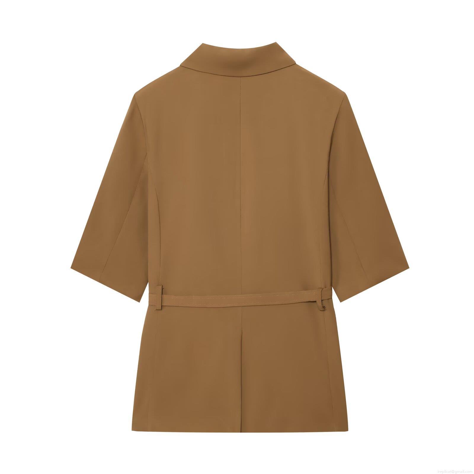 • Women's Two Piece Blazer Set Short Sleeve Belted Notched Lapel Blazer And Wide Leg Shorts Solid Color Loose Casual Streetwear Office Lady Suit