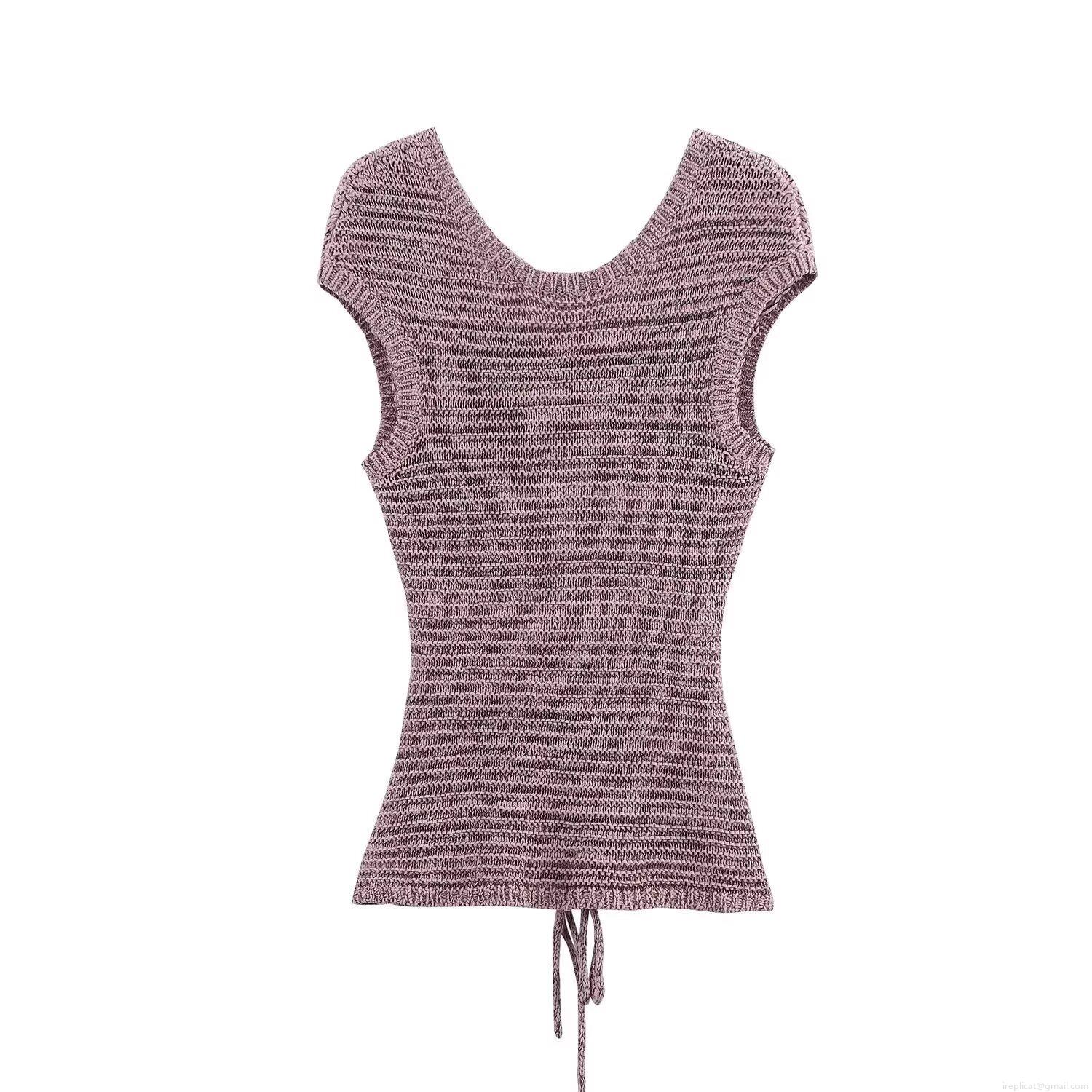 • Women's Two Piece Knit Shorts Set Summer Sexy Lace Up Short Sleeve Top And High Waist Ribbed Knit Shorts Set Casual Streetwear Co-ords
