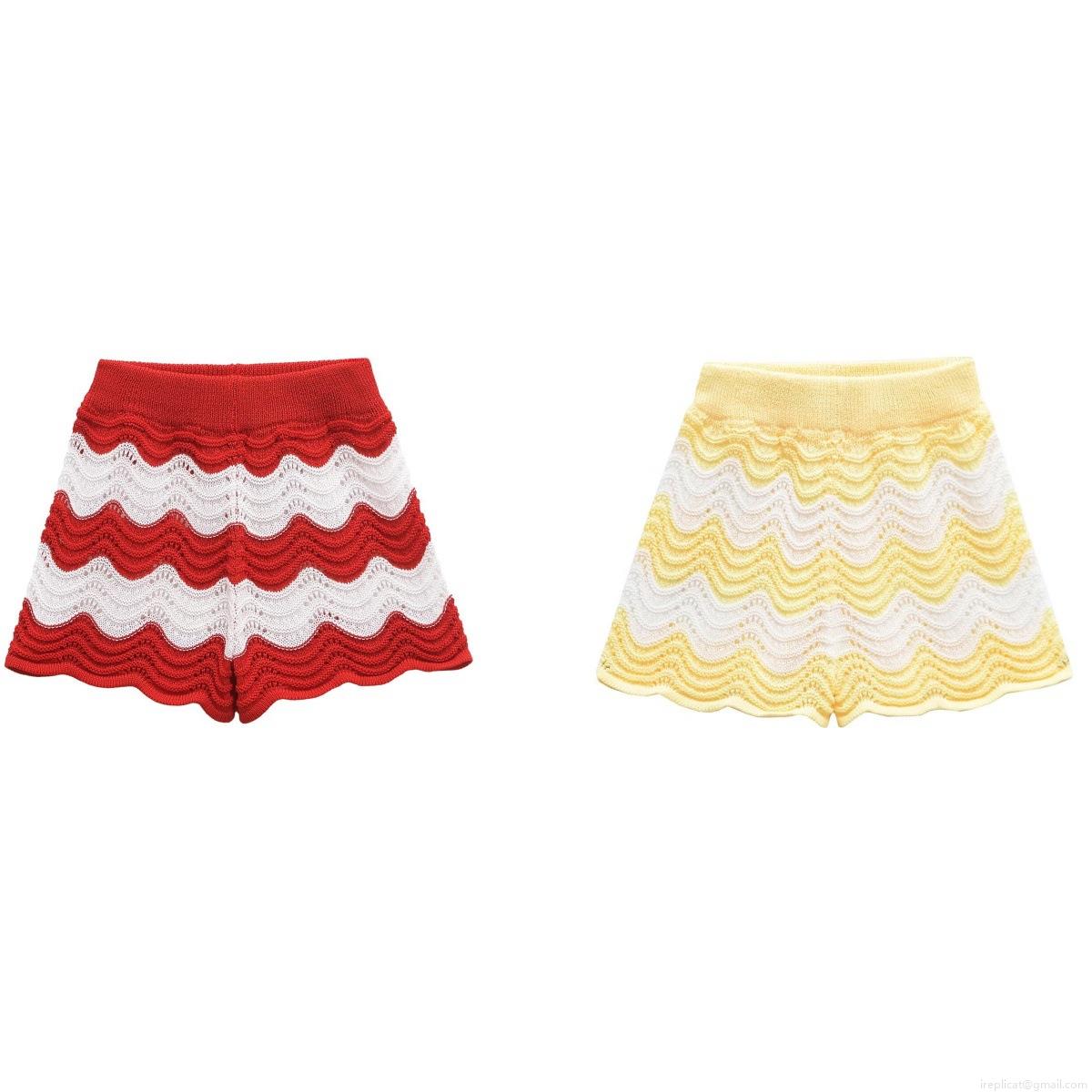 • Women's Two Piece Knit Shorts Set Wave Pattern Hollow Out Polo Neck Short Sleeve Button Up Cardigan And Matching Elastic Waist Shorts Summer Streetwear Outfit