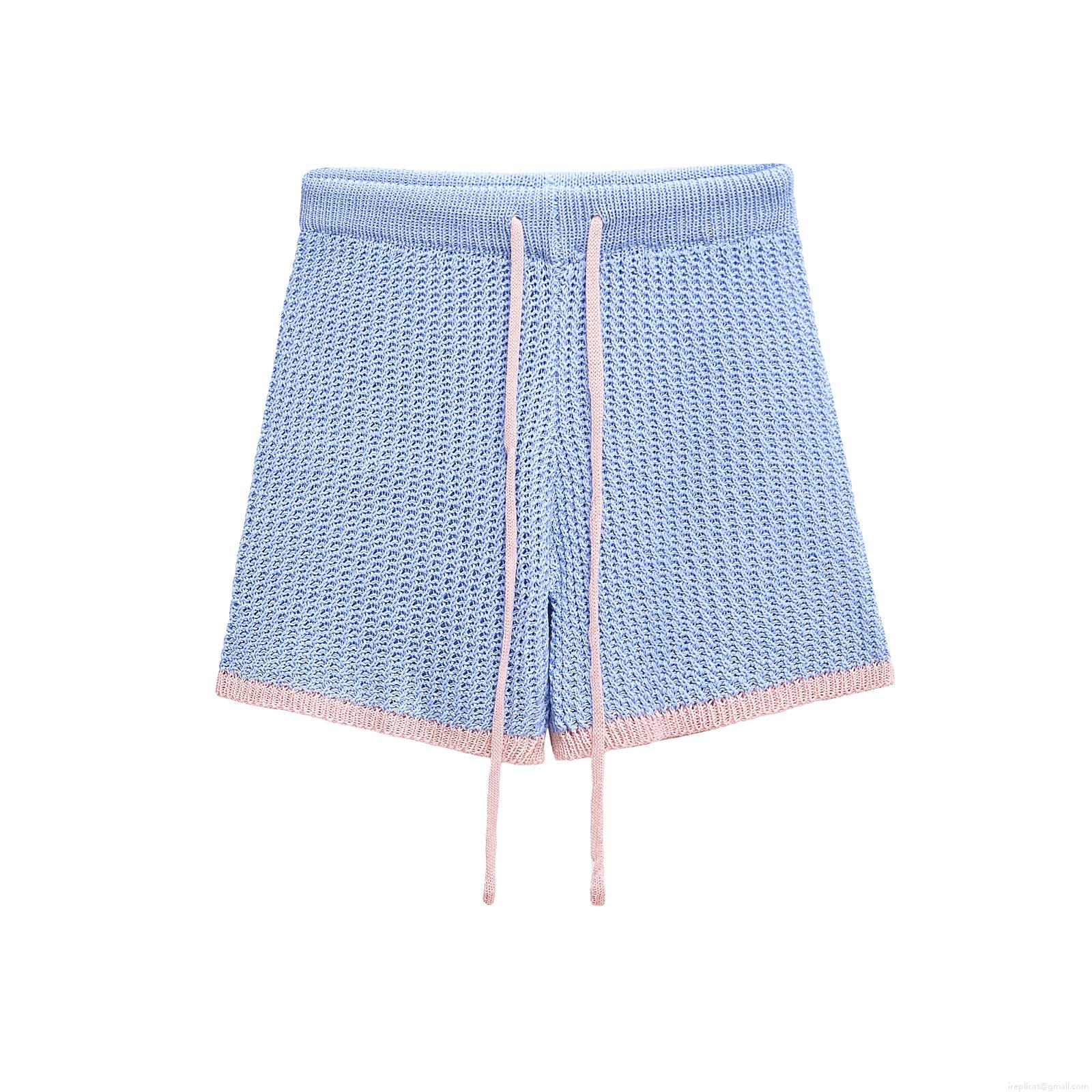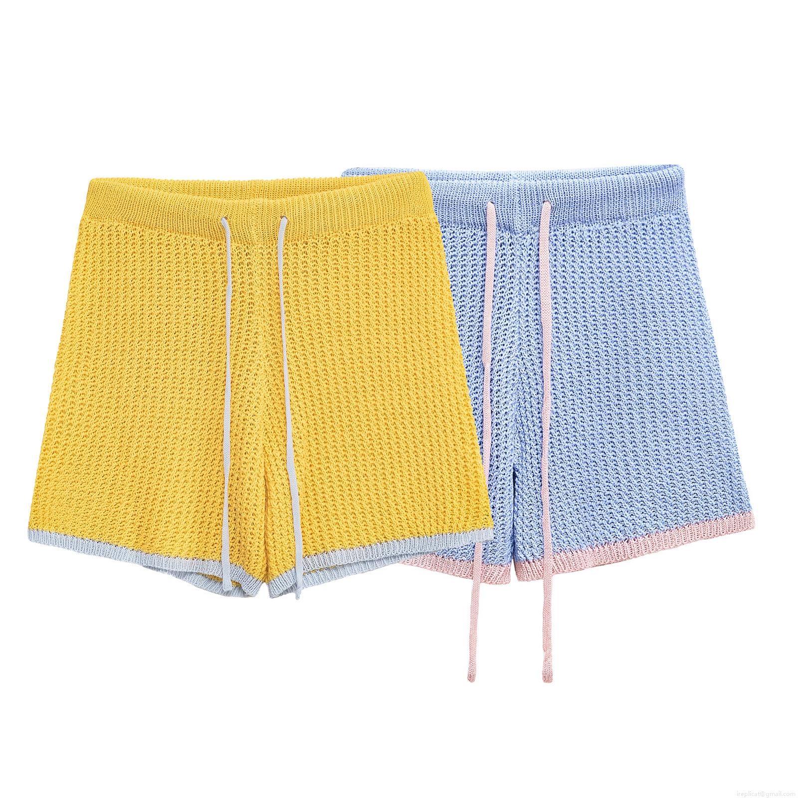 • Women's Two Piece Knitted Set Contrast Trim Short Sleeve Polo Shirt Top and Drawstring Shorts Summer Casual Streetwear Co-ord Set Soft Breathable Knitwear