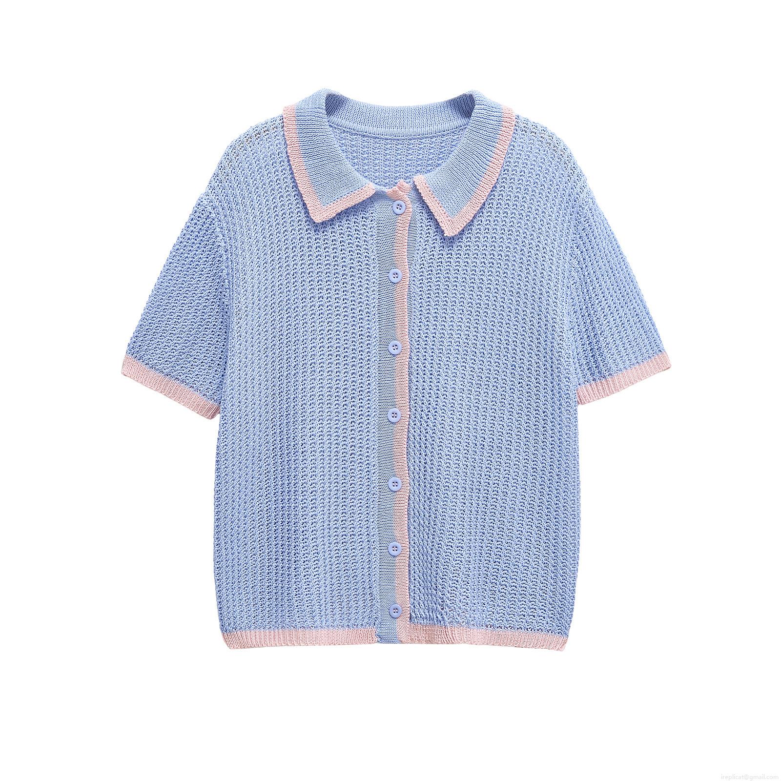 Solid Color, Drawstring, Single-breasted, Polo Collar, Contrasting Edging, Contrasting Edges, Openwork Knit